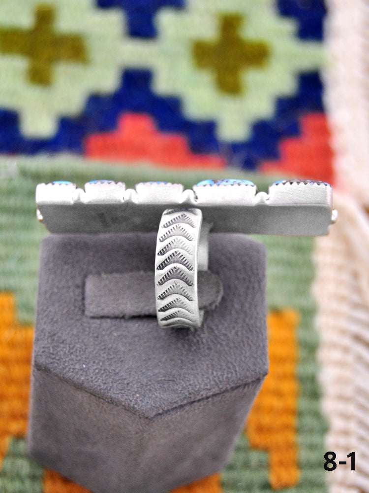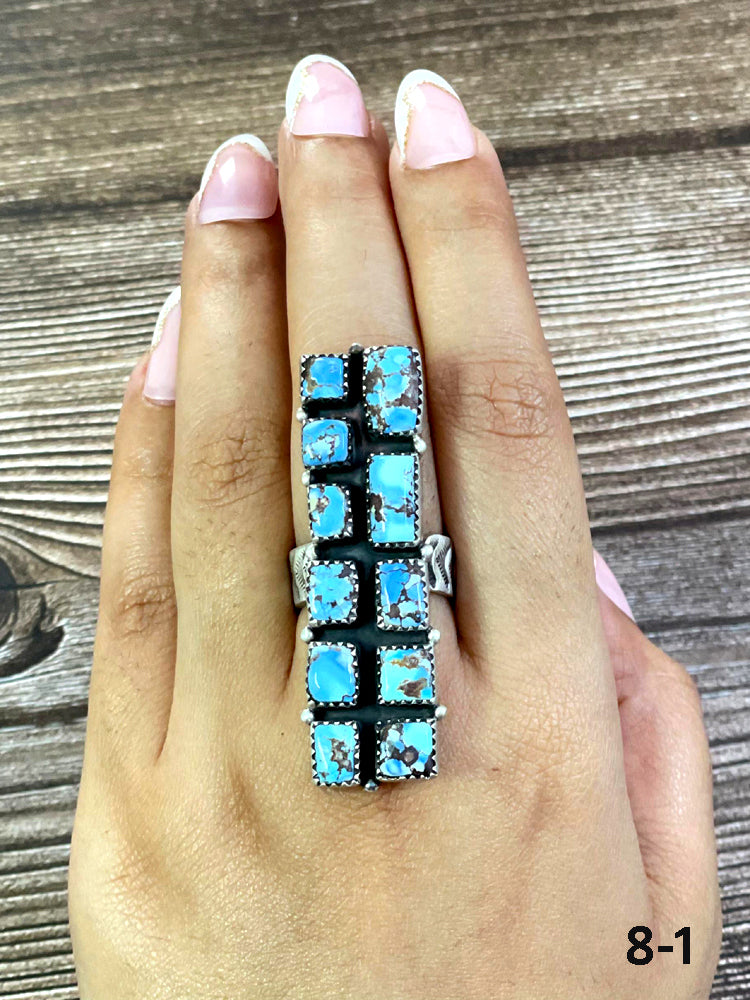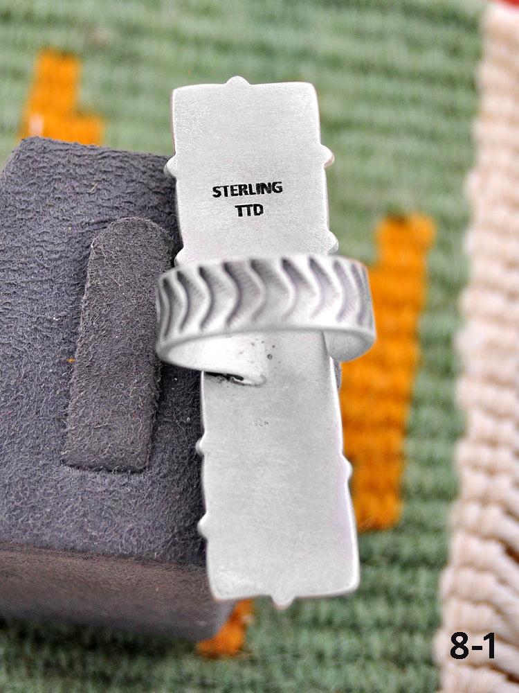 Southwest Made Golden Hills & Sterling Sliver Adjustable Ring. It measures 2 1/4 inch long and 5/8 inch wide.