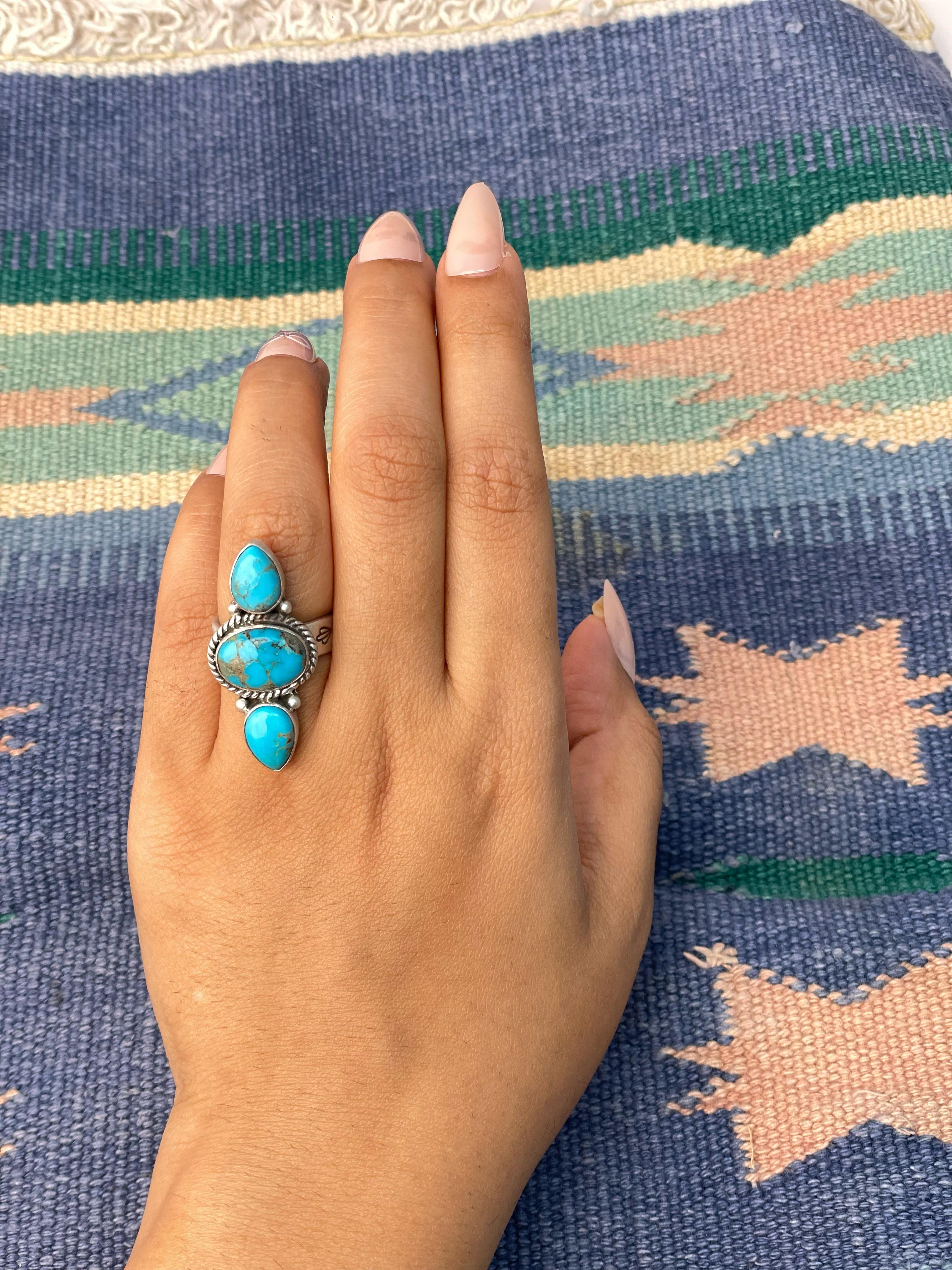 Southwest Made Kingman Turquoise & Sterling Silver Adjustable Ring