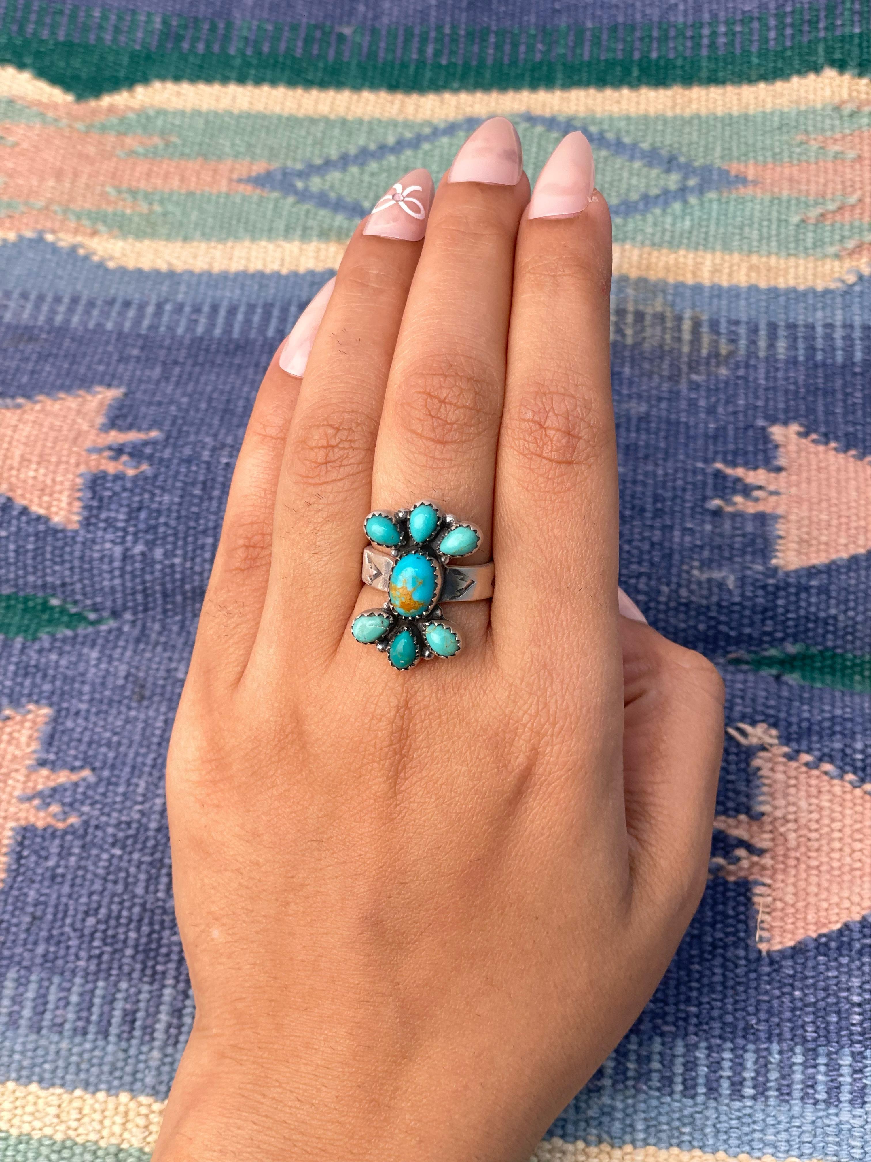 Southwest Made Kingman Turquoise & Sterling Silver Adjustable Ring