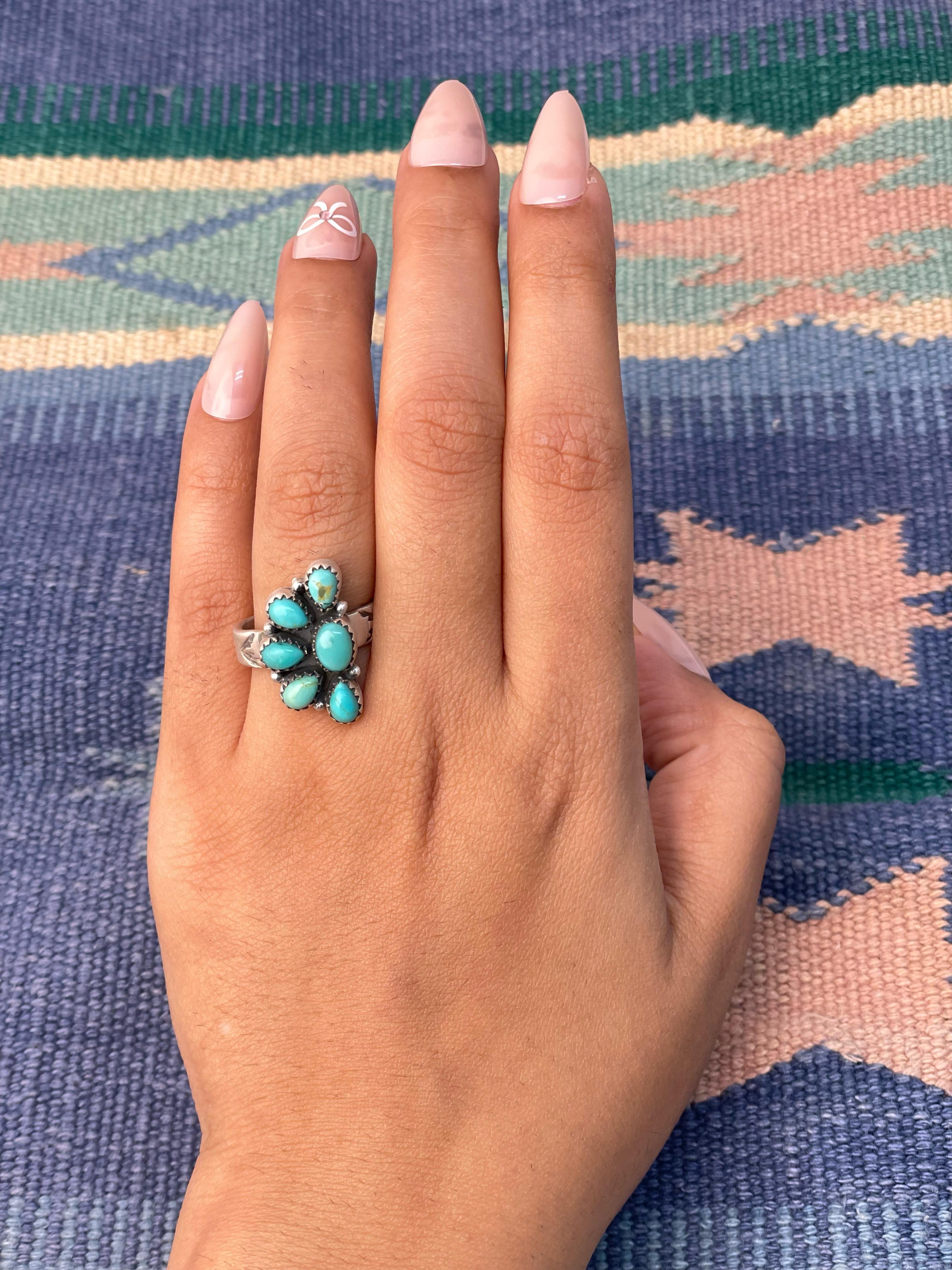 Southwest Made Kingman Turquoise & Sterling Silver Adjustable Ring