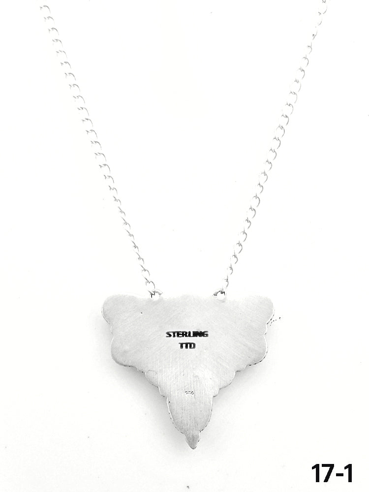 Southwest Made Kingman Turquoise & Sterling Silver Necklace. It measures 21 inches long with hang while the chain measures 18 inches long. Signed by the artist and stamped sterling silver.