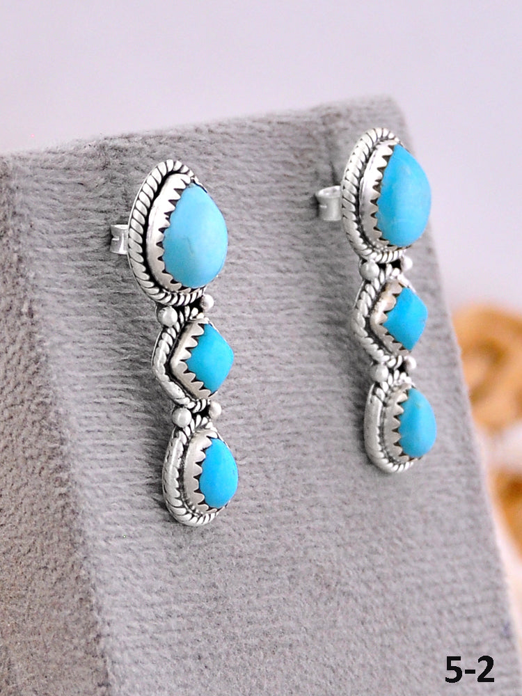 Southwest Made Kingman Turquoise & Sterling Silver Post Earrings