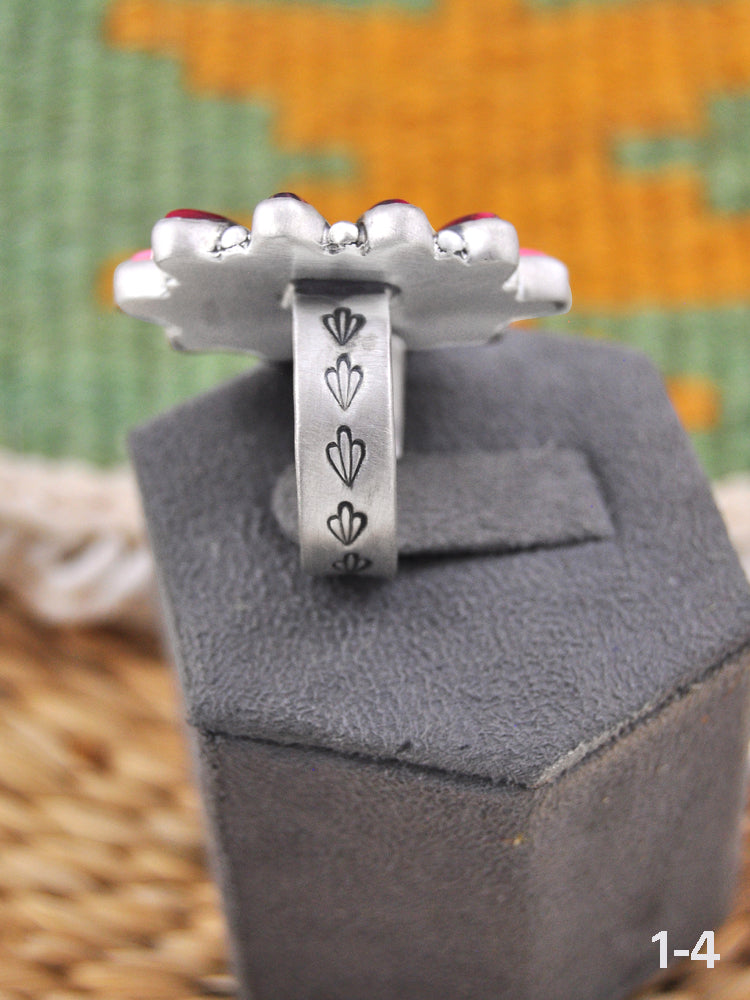 Southwest Made Multistone & Sterling Sliver Adjustable Ring. It measures 1 3/8 inches long and 1 1/4 inches wide.