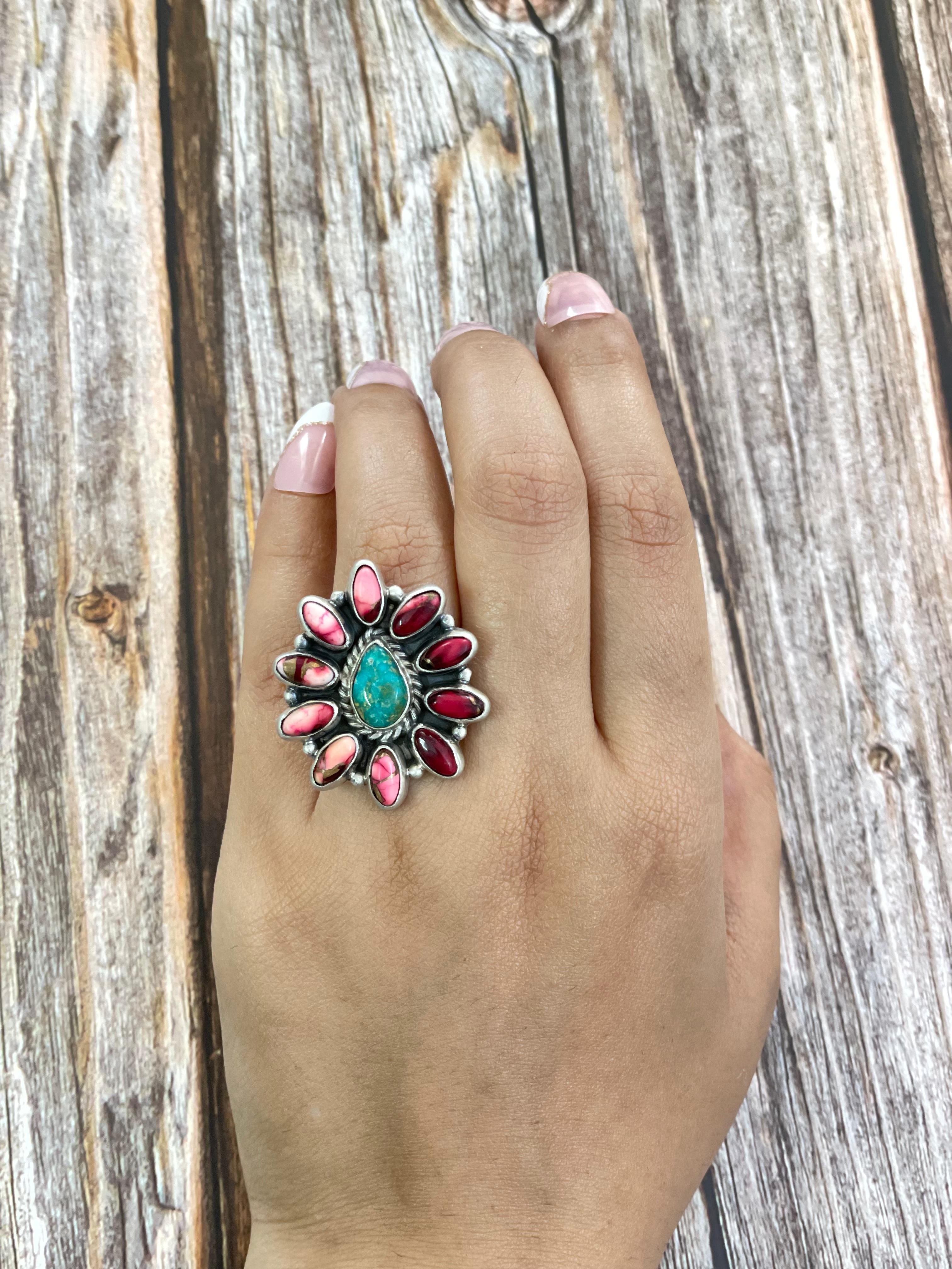 Southwest Made Multi Stone & Sterling Silver Adjustable Ring