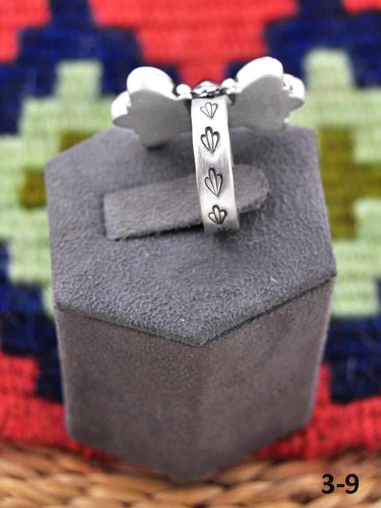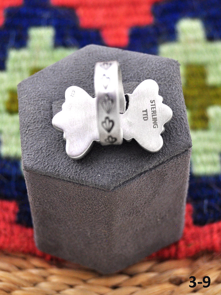 Southwest Made Multi Stone & Sterling Sliver Adjustable Ring. It measures 1 1/4 inches long and 3/4 of an inch wide.