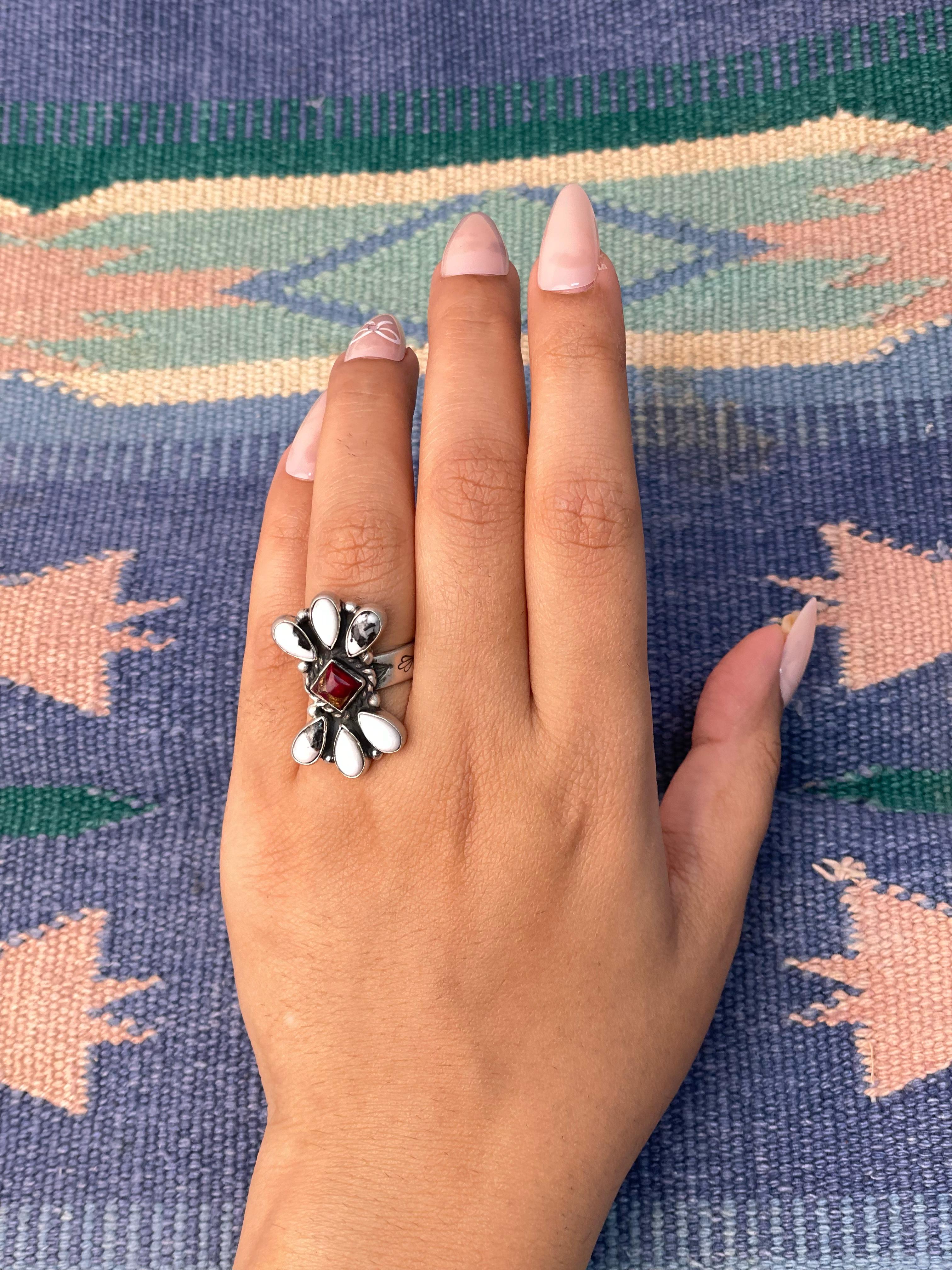 Southwest Made Multi Stone & Sterling Silver Adjustable Ring