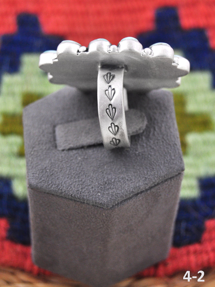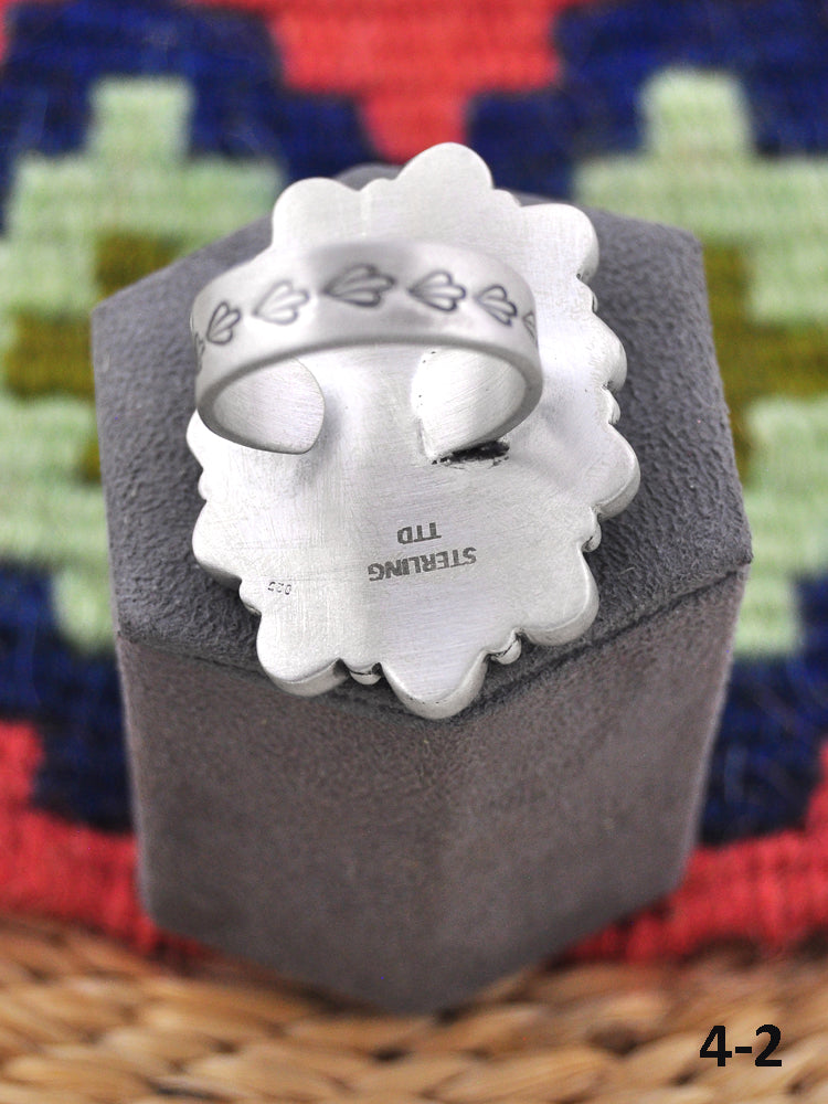 Southwest Made Multi Stone & Sterling Sliver Adjustable Ring. It measures 1 3/4 inches long and 1 1/4 inches wide.