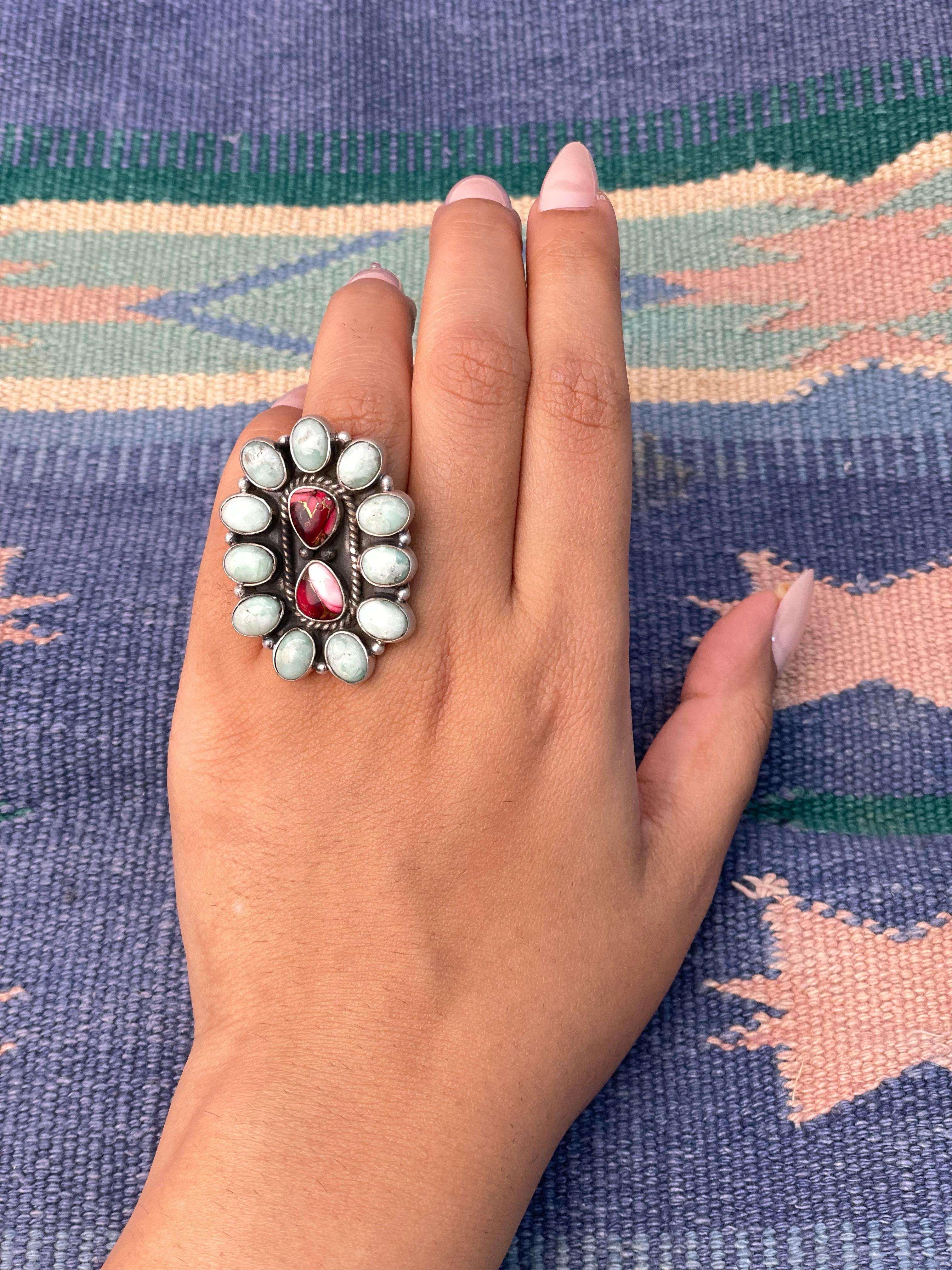 Southwest Made Multi Stone & Sterling Silver Adjustable Ring