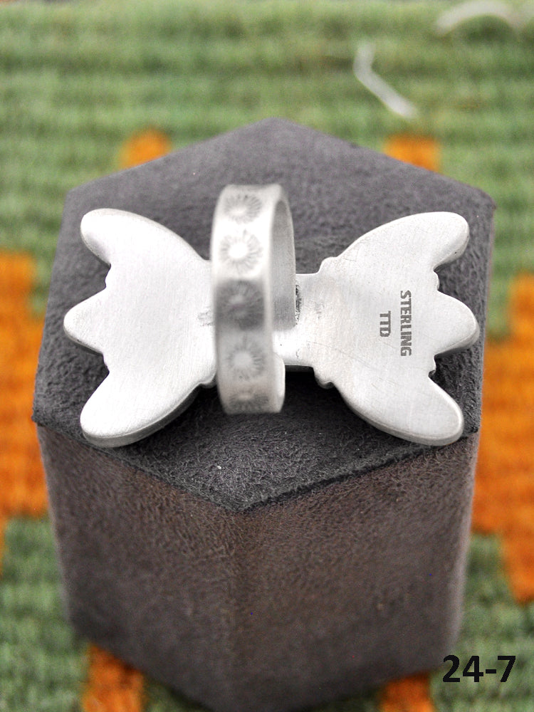 Southwest Made Multi Stone & Sterling Sliver Adjustable Ring. It measures 1 1/2 inches long and just over 7/8 of an inch wide.