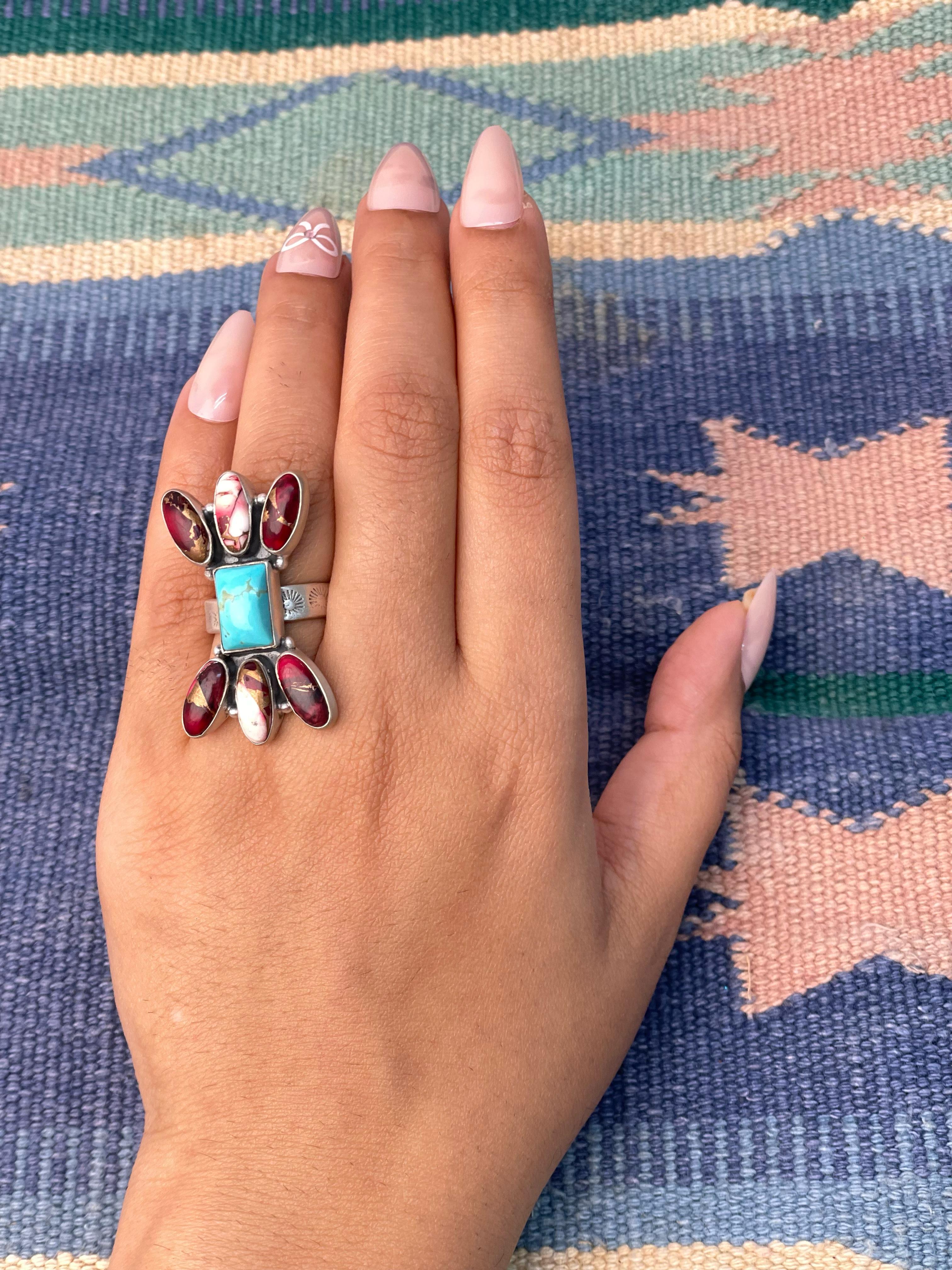 Southwest Made Multi Stone & Sterling Silver Adjustable Ring