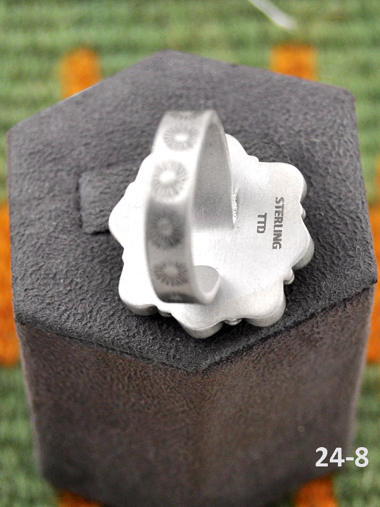 Southwest Made Multi Stone & Sterling Sliver Adjustable Ring. It measures 1 inch long and 1 inch wide.