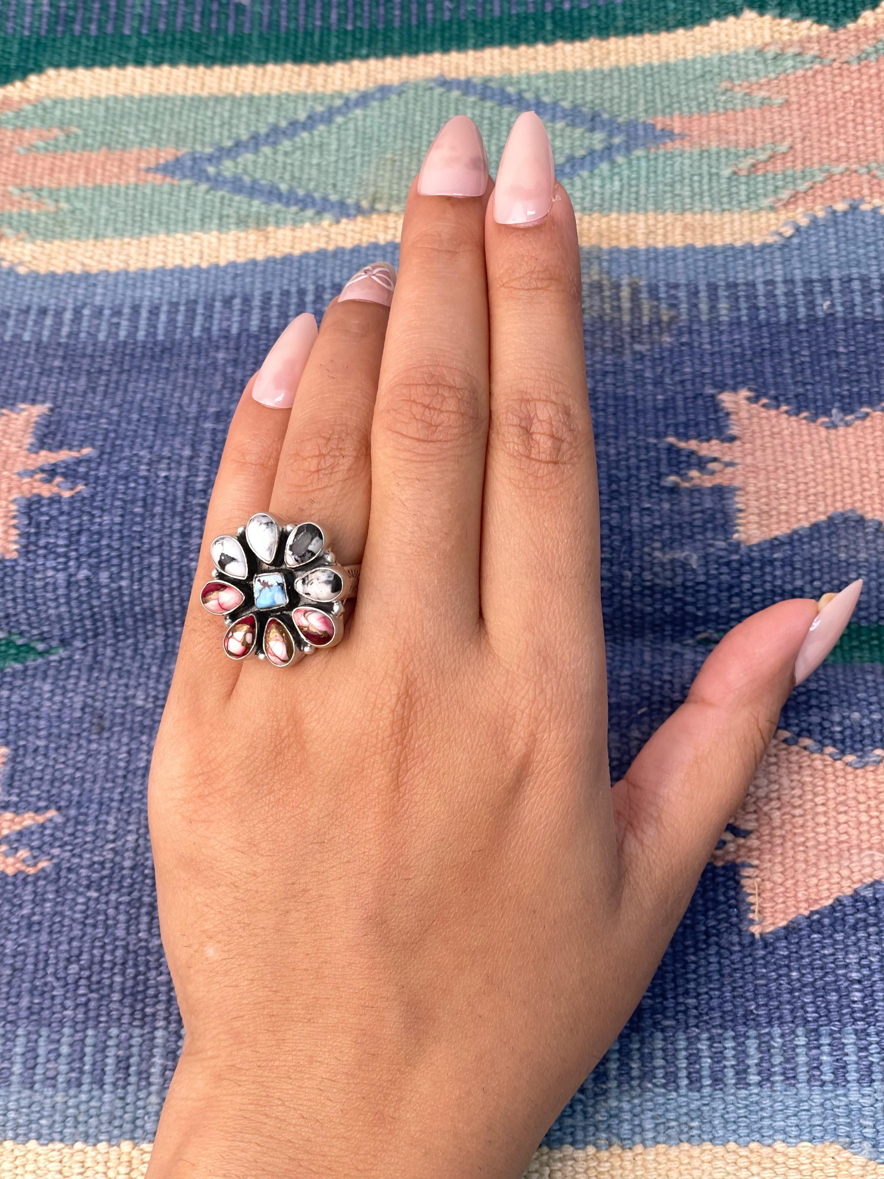 Southwest Made Multi Stone & Sterling Silver Adjustable Ring