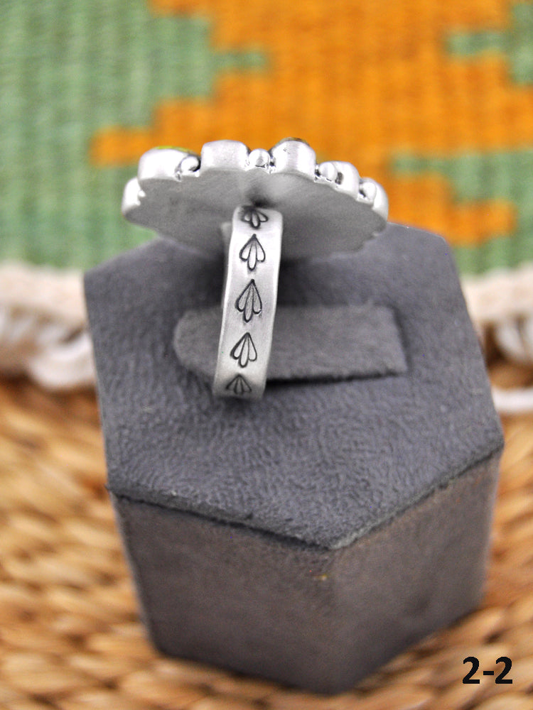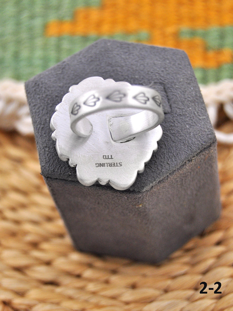 Southwest Made Multi Stone & Sterling Sliver Adjustable Ring. It measures just under 1 1/4 inches long and 1 1/8 inches wide.