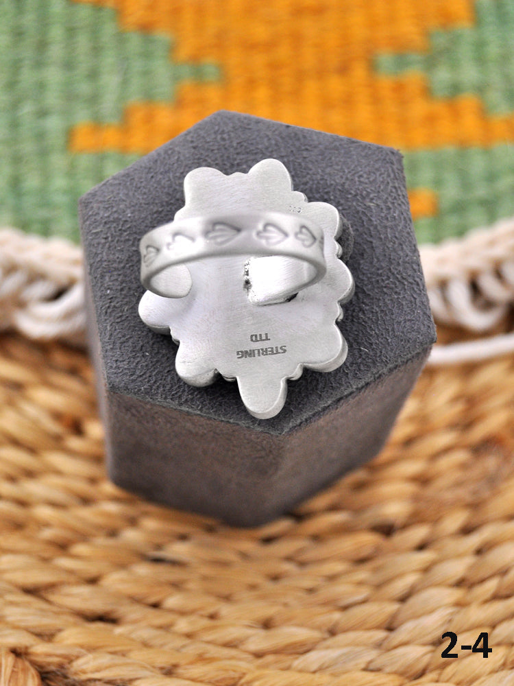 Southwest Made Multi Stone & Sterling Sliver Adjustable Ring. It measures 1 3/8 inches long and 1 1/8 inches wide.