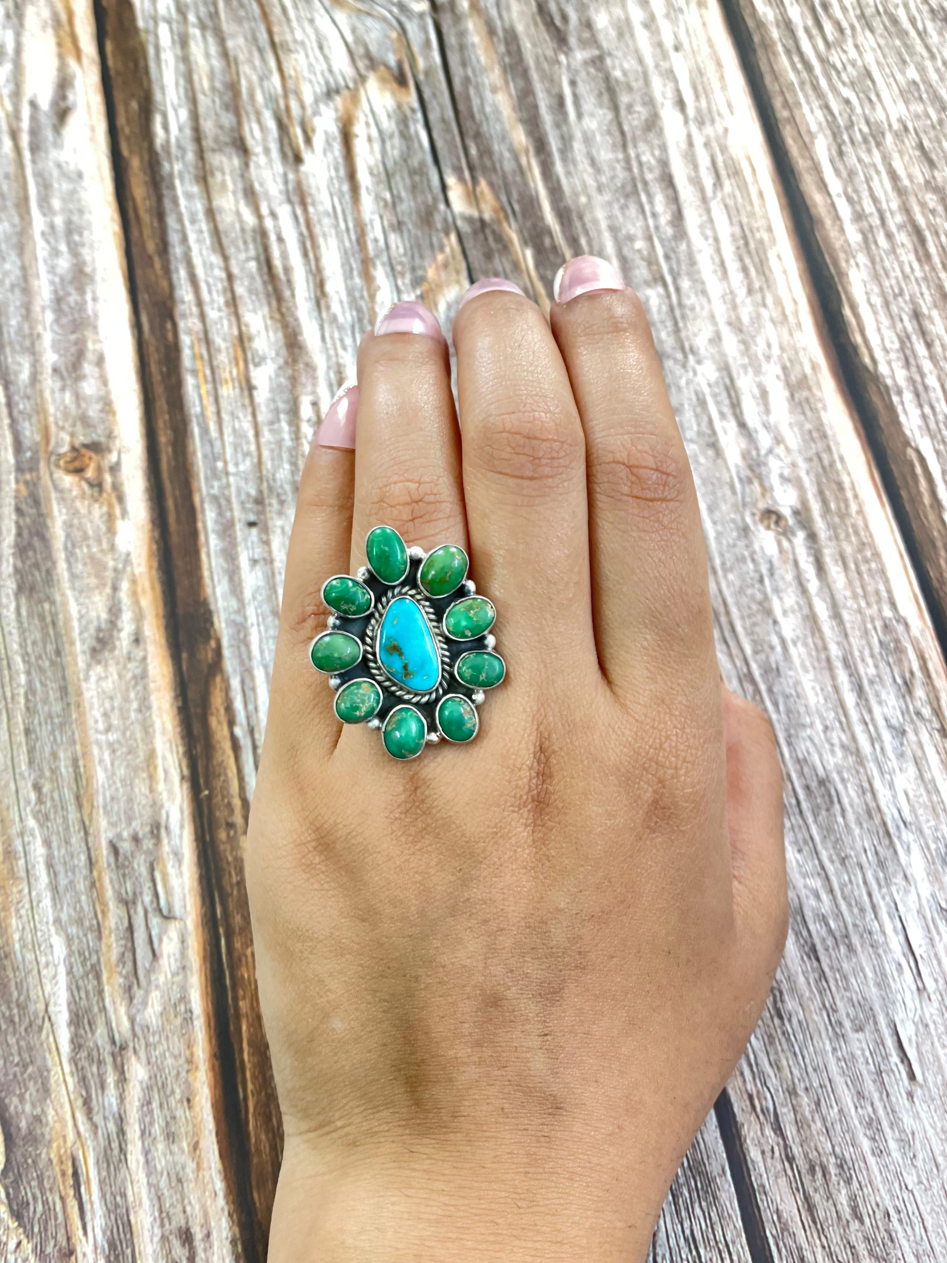 Southwest Made Multi Stone & Sterling Silver Adjustable Ring