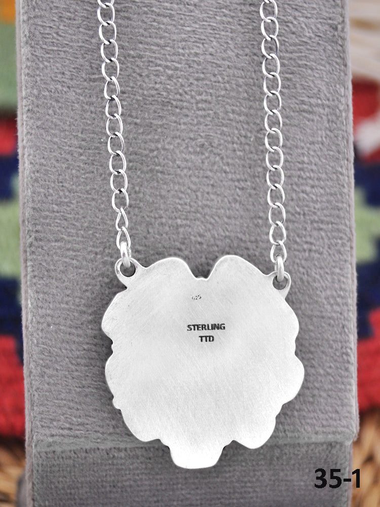 Southwest Made Multi Stone & Sterling Silver Necklace. It measures 21 inches long with hang while the chain measures just over 18 inches long. Signed by the artist and stamped sterling silver.