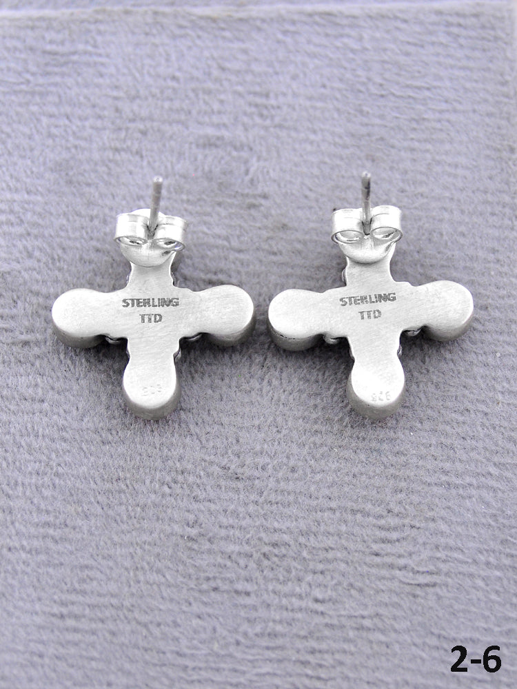 Southwest Made Multistone & Sterling Silver Post Earrings. It measures 7/8 of an inch long and 7/8 of an inch wide. Stamped and signed.