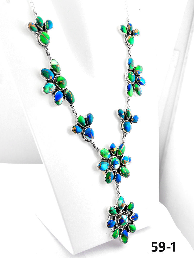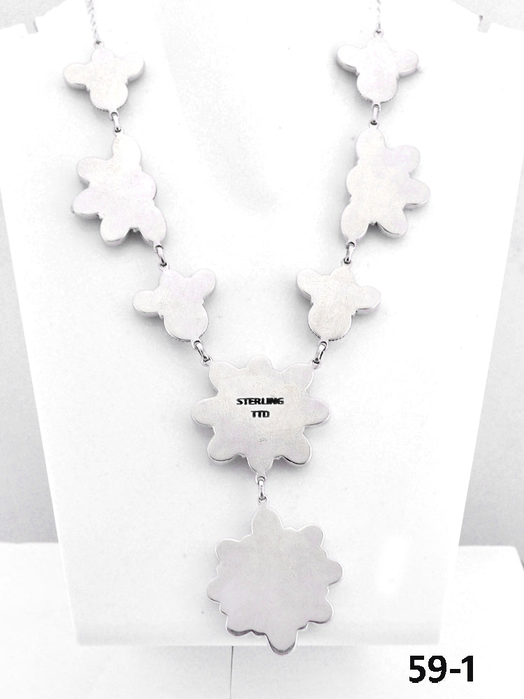 Southwest Made Peacock Dahlia & Sterling Silver Necklace