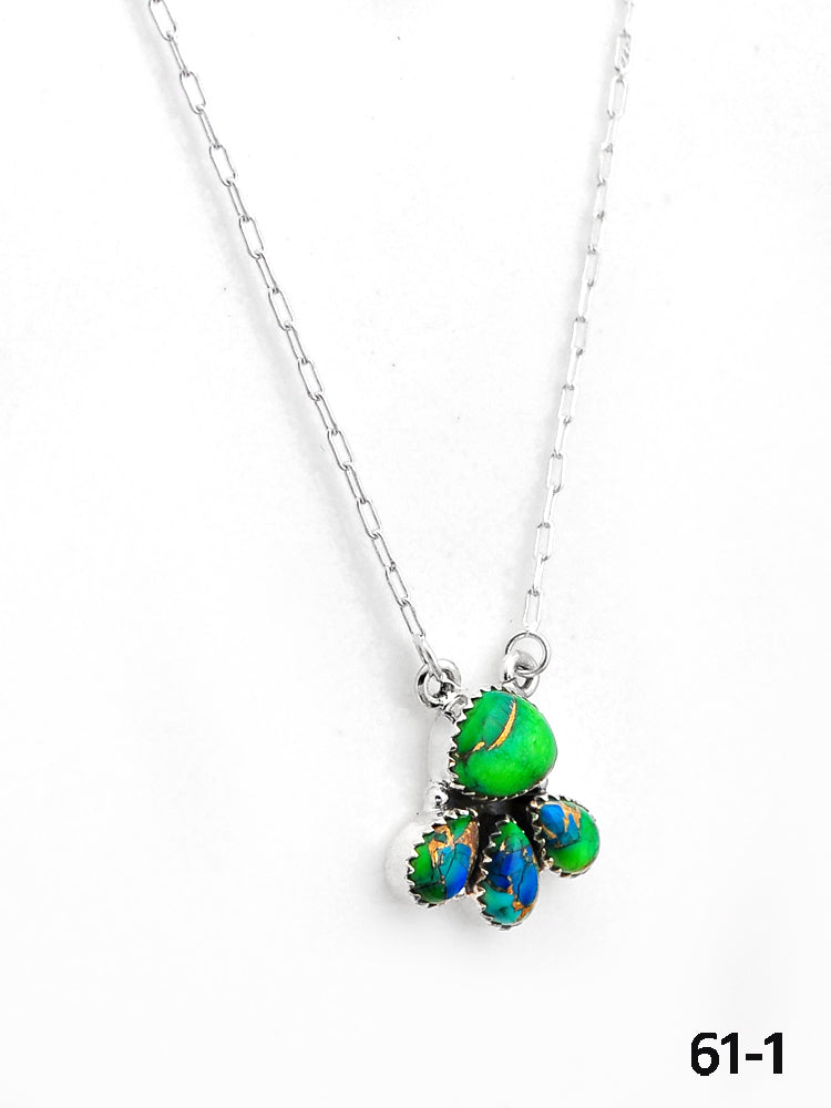 Southwest Made Peacock Dahlia & Sterling Silver Necklace