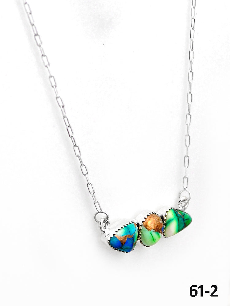 Southwest Made Peacock Dahlia & Sterling Silver Necklace