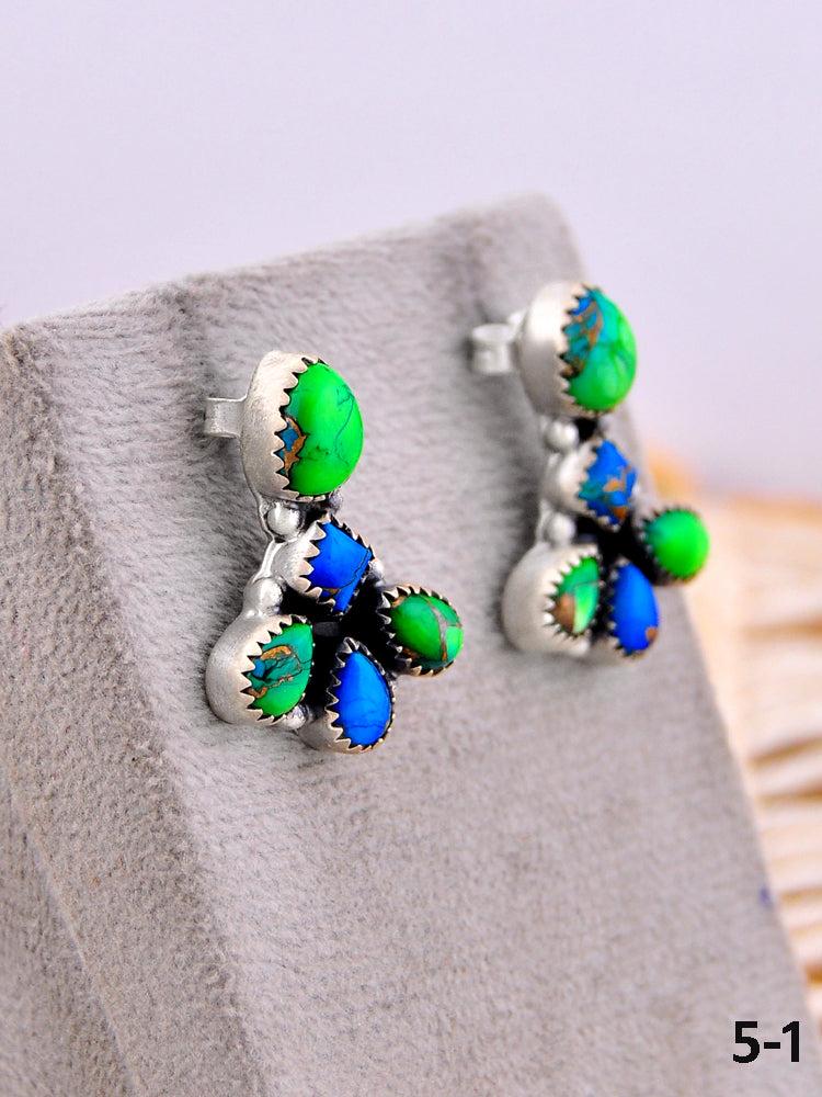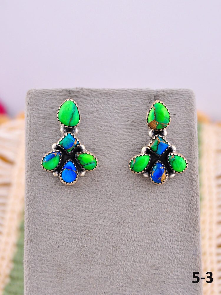 Southwest Made Peacock Dahlia & Sterling Silver Post Earrings