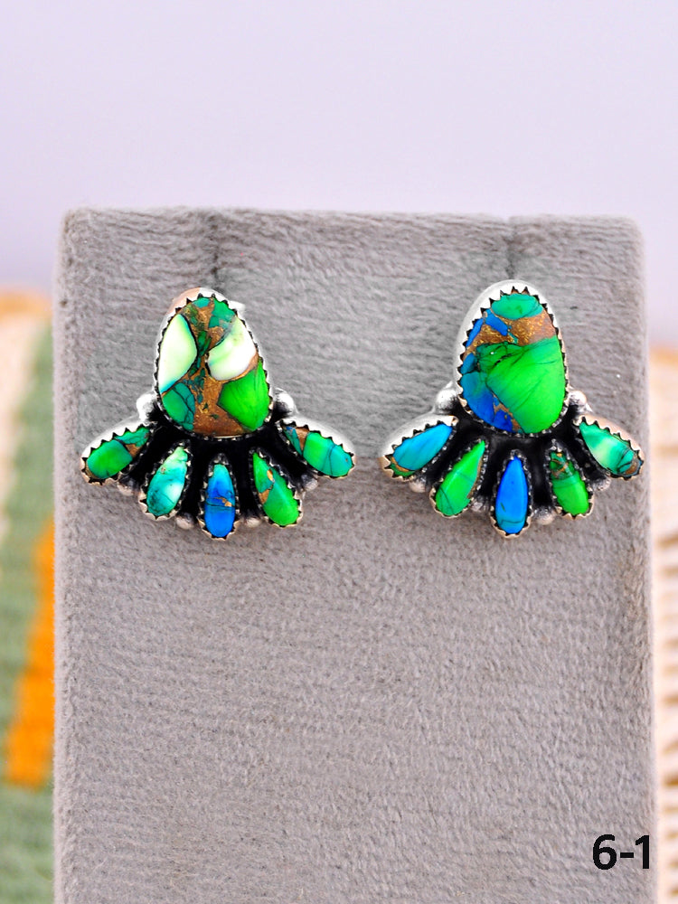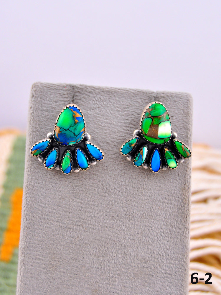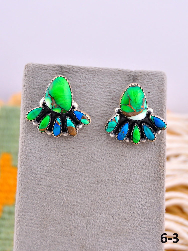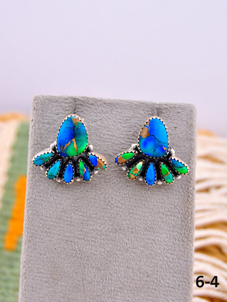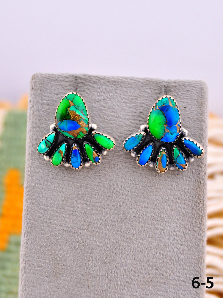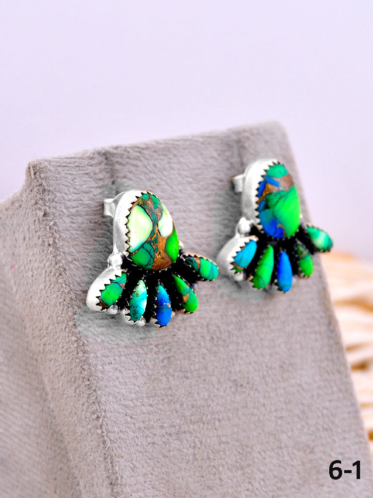 Southwest Made Peacock Dahlia & Sterling Silver Post Earrings