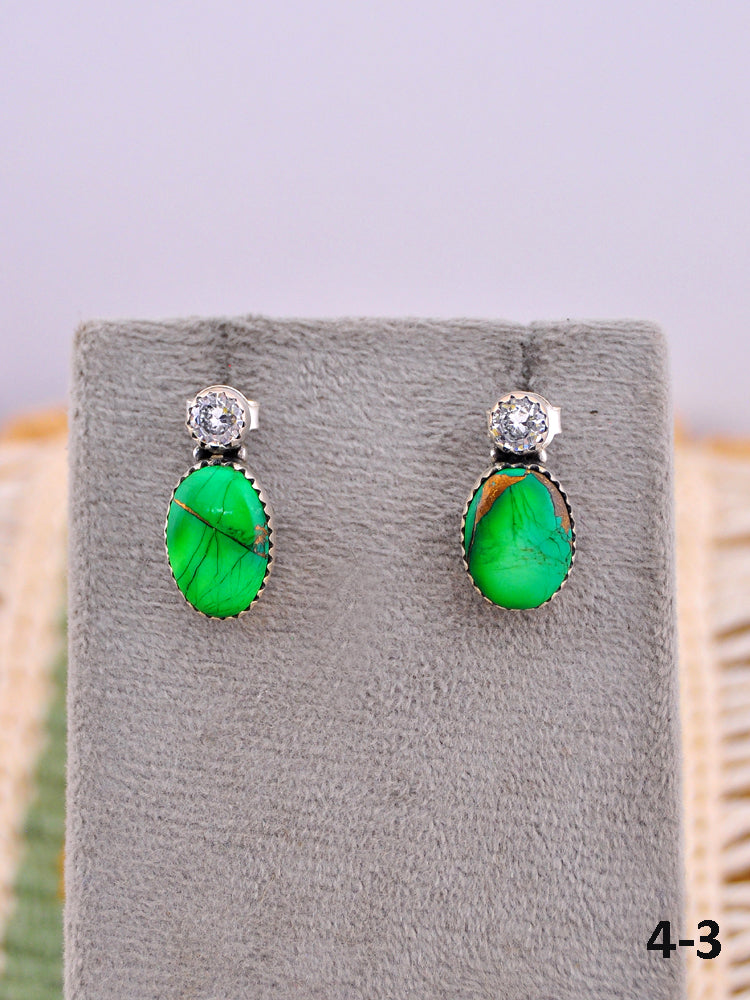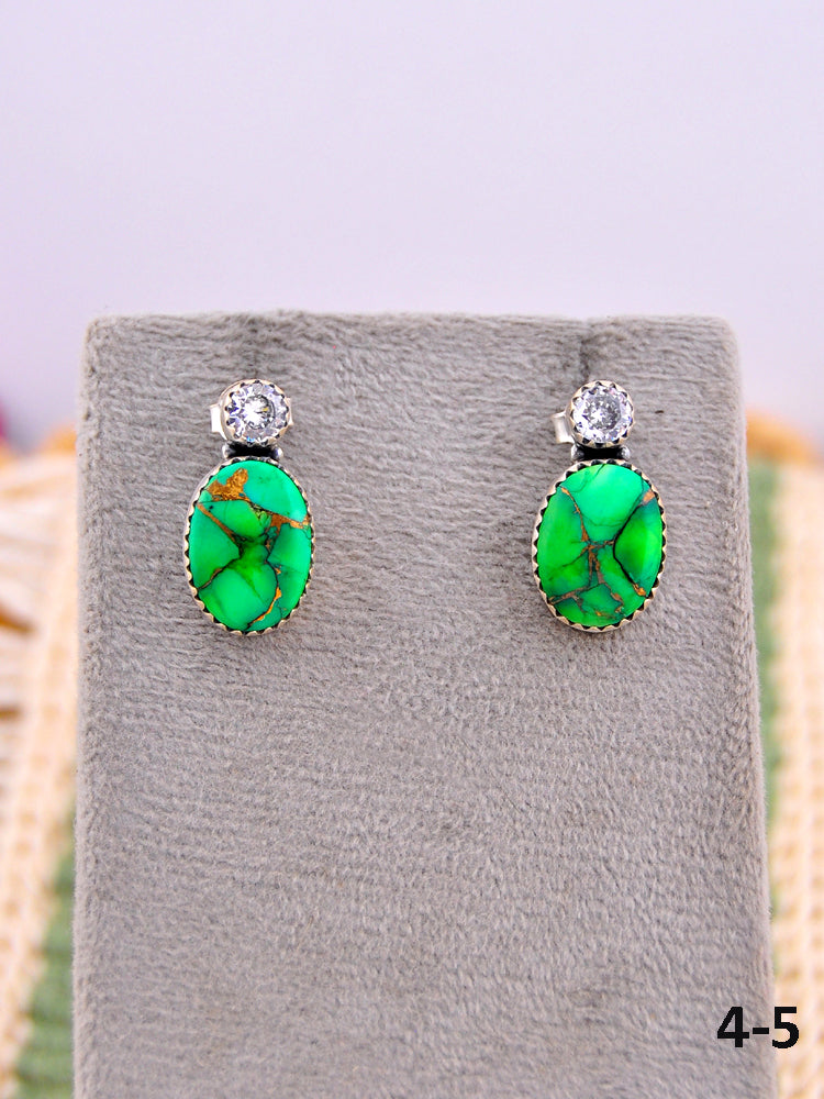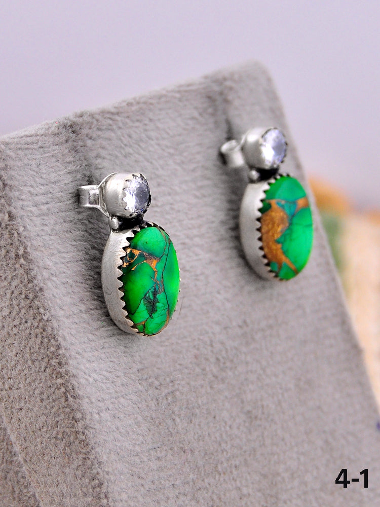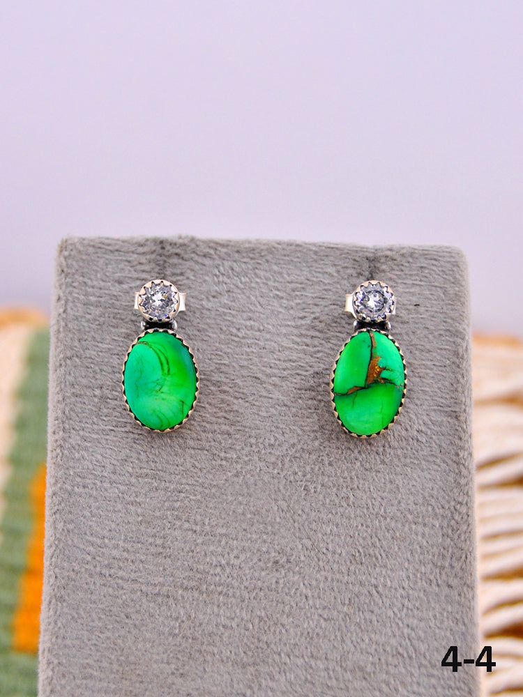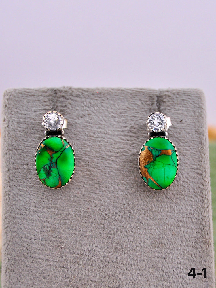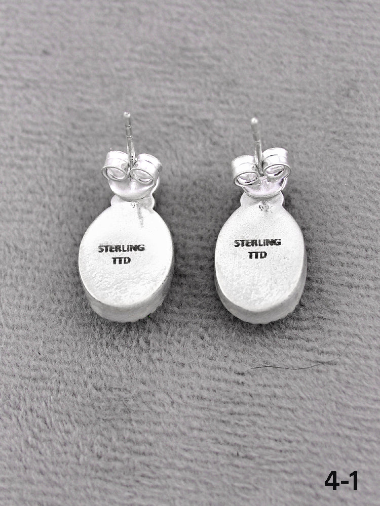 Southwest Made Peacock Dahlia & Sterling Silver Post Earrings. It measures 7/8 of an inch long and 1/2 of an inch wide. Stamped and signed.