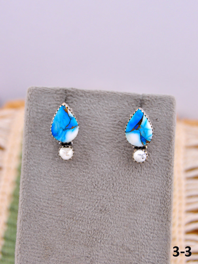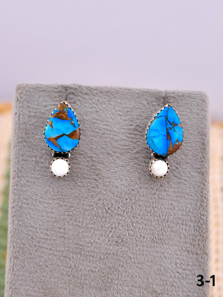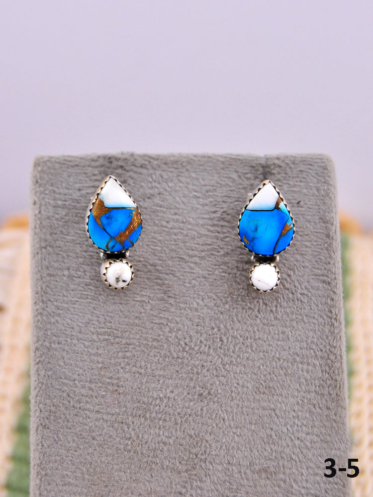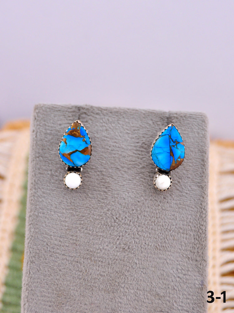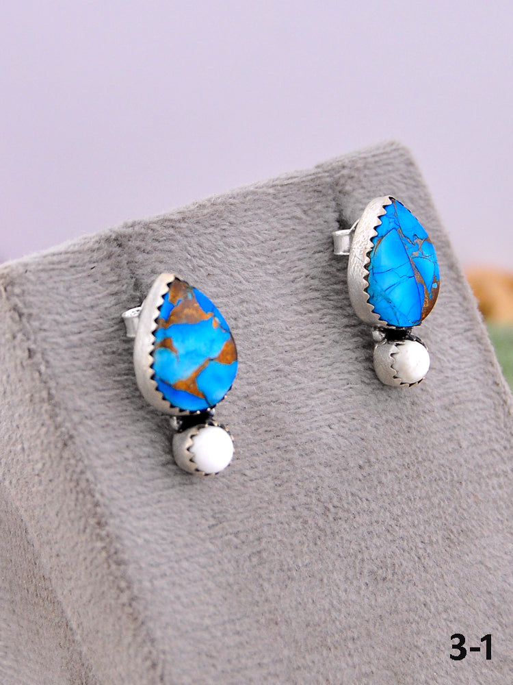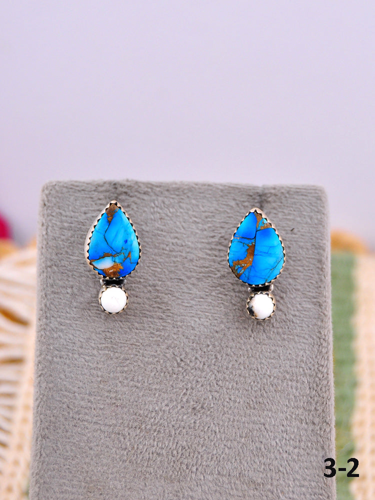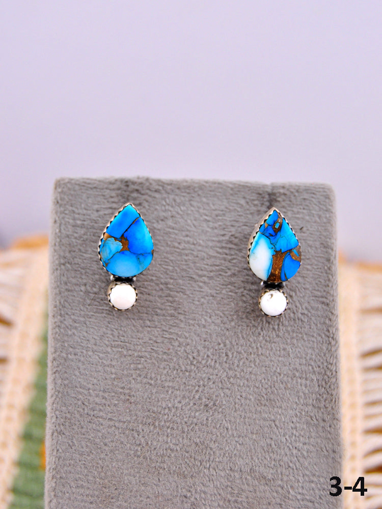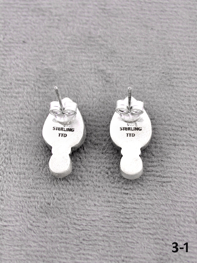 Southwest Made Purple Dahlia & Sterling Silver Post Earrings. It measures 7/8 of an inch long and 1/2 of an inch wide. Stamped and signed.