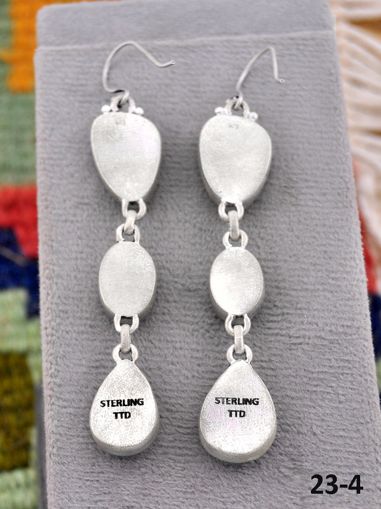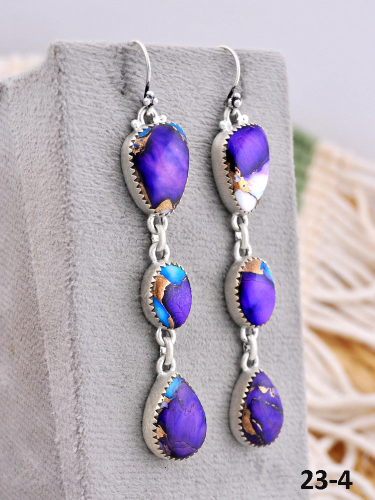 Southwest Made Purple Dahlia & Sterling Silver Hook Dangle Earrings. It measures 3 4/8 inches long and 1/2 of an inch wide. Stamped and signed.
