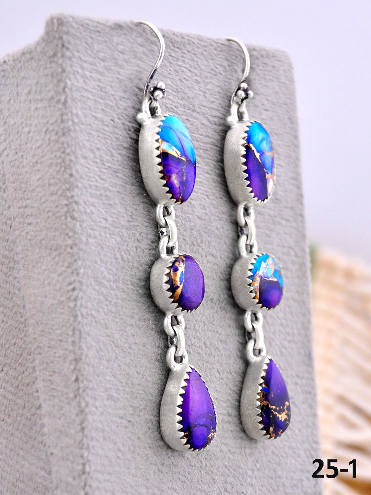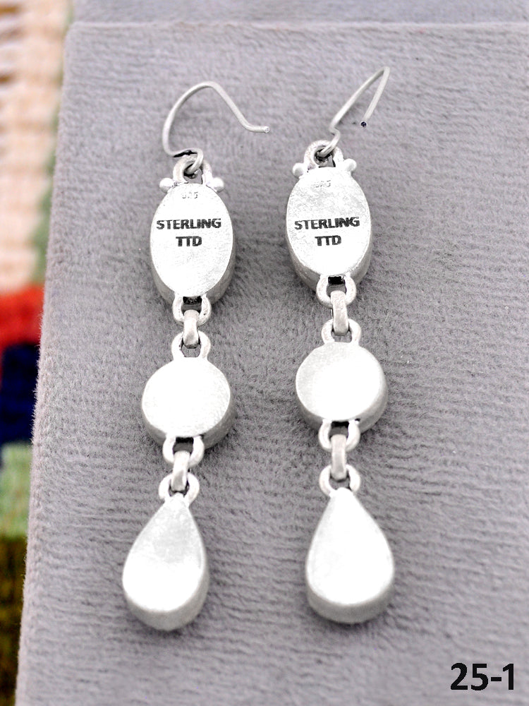 Southwest Made Purple Dahlia & Sterling Silver Hook Dangle Earrings. It measures 2 7/8 inches long and 3/8 of an inch wide. Stamped and signed.