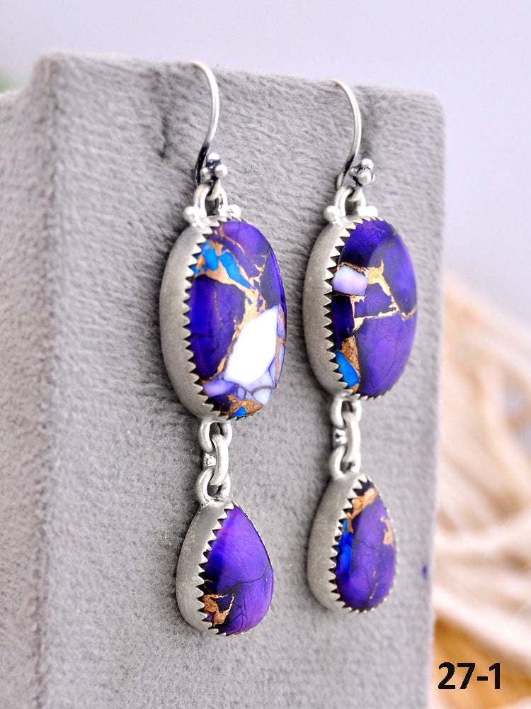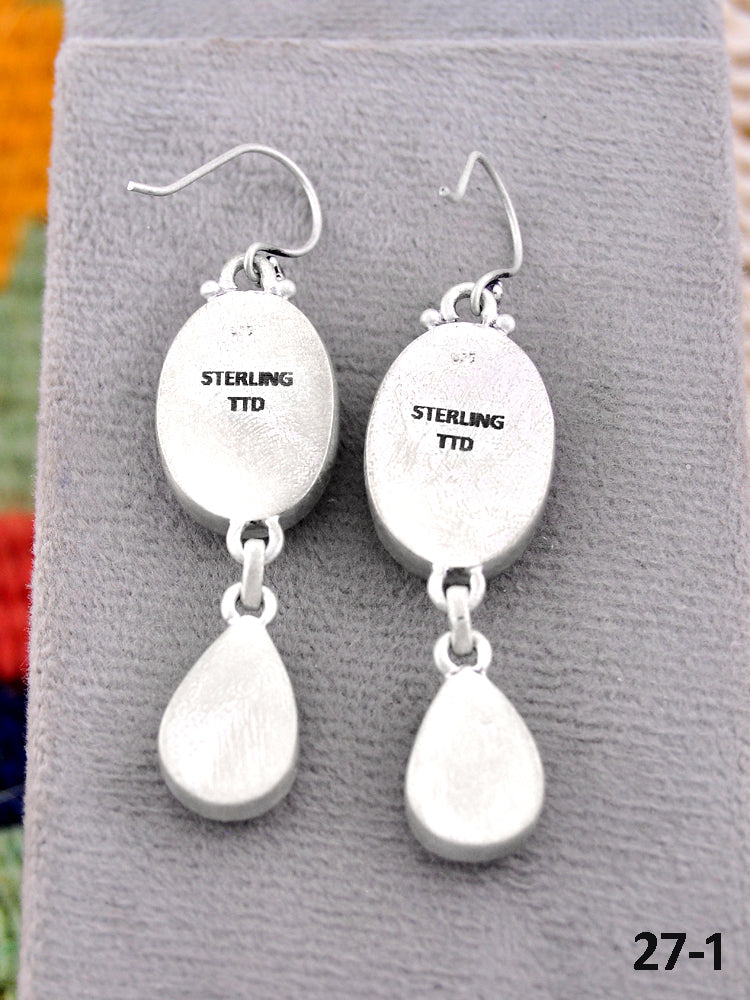 Southwest Made Purple Dahlia & Sterling Silver Hook Dangle Earrings. It measures 2 1/2 inches long and 5/8 of an inch wide. Stamped and signed.