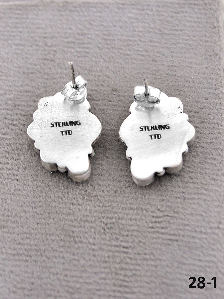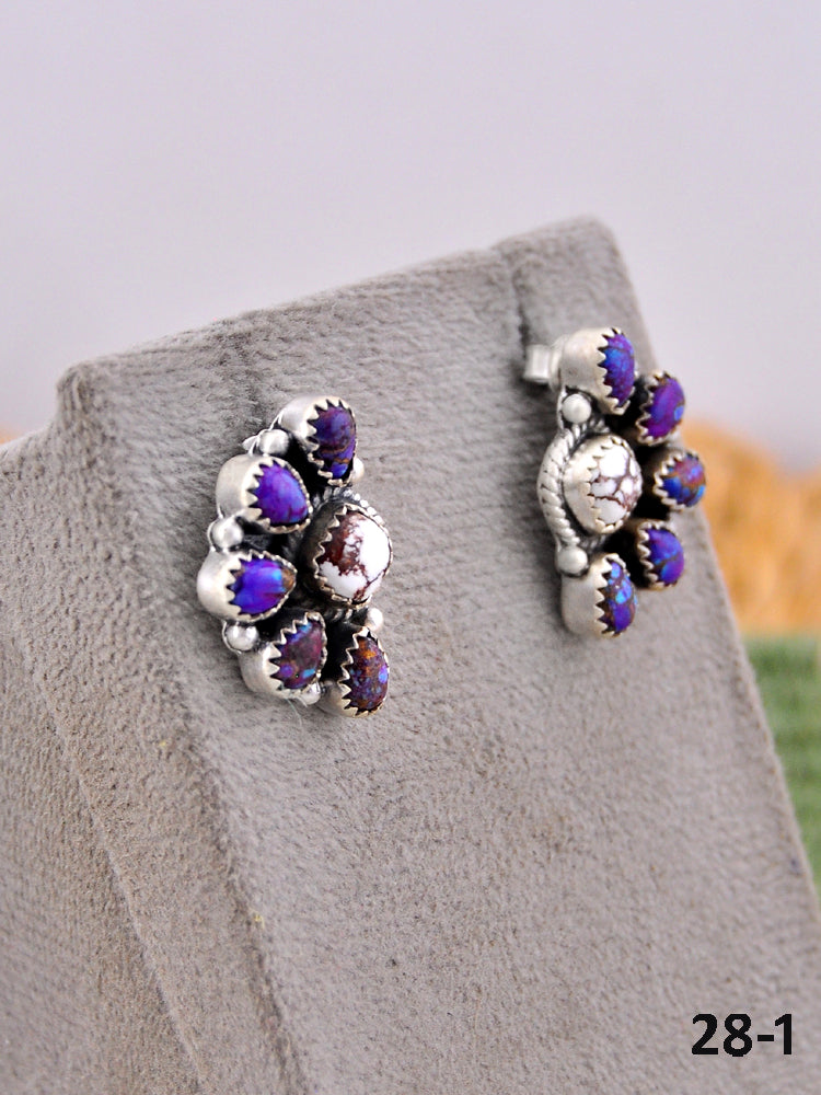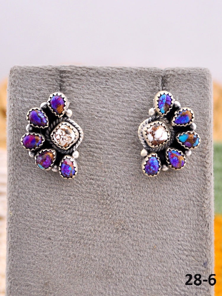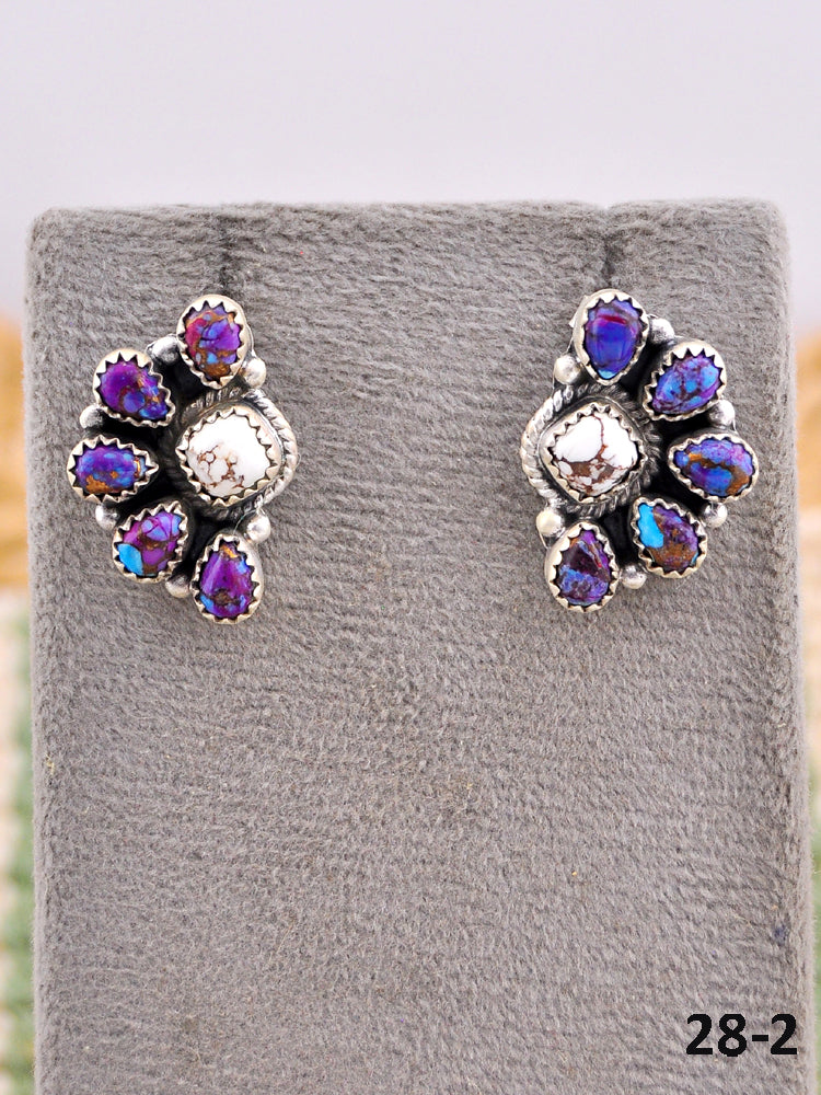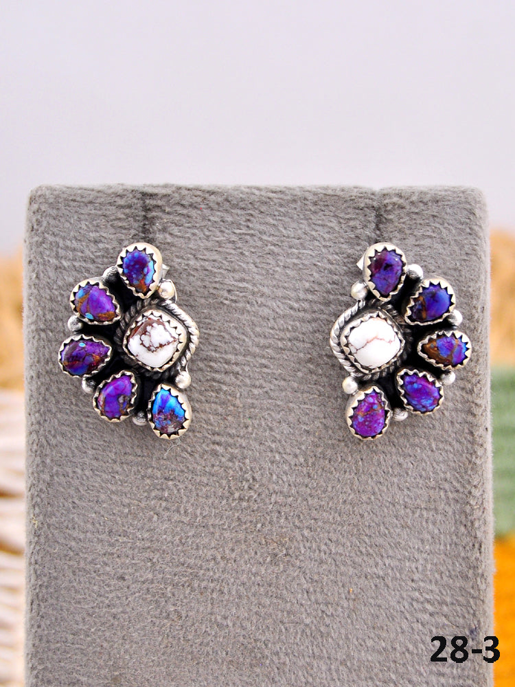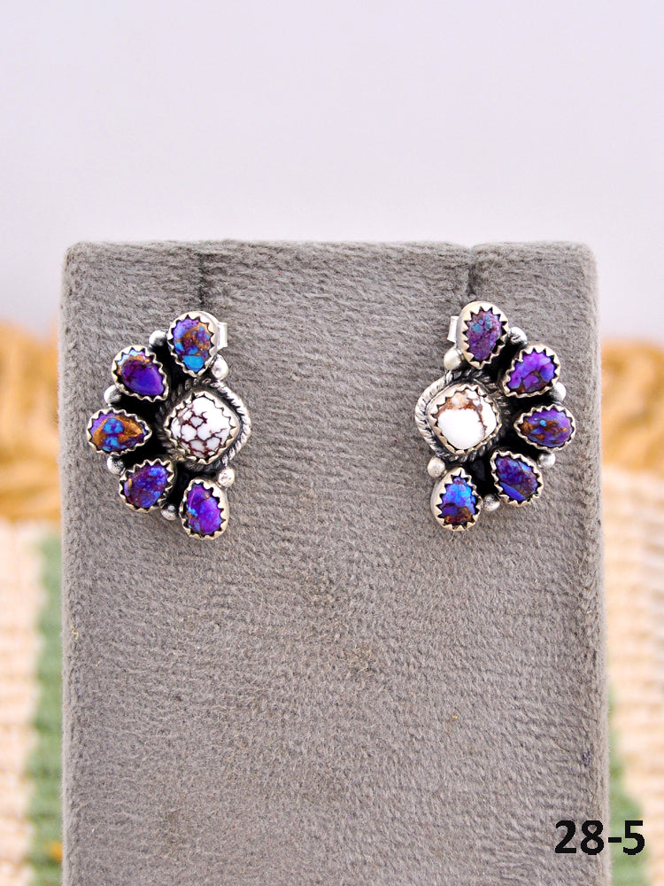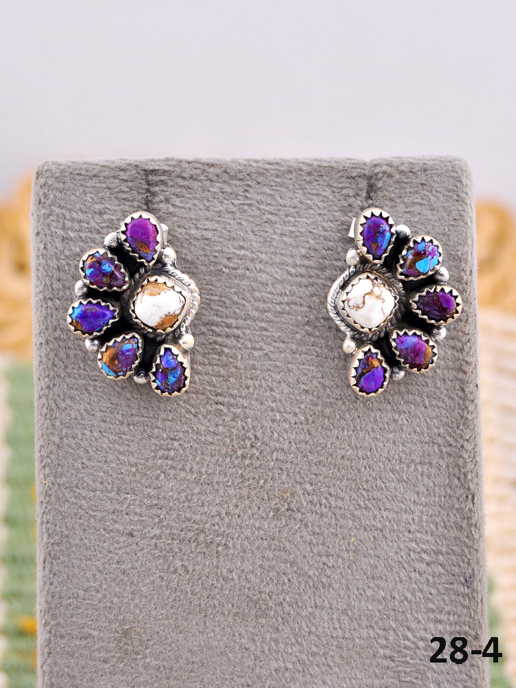 Southwest Made Purple Dahlia with Wild Horse Magnesite & Sterling Silver Post Earrings. It measures 7/8 of an inch long and 3/4 of an inch wide. Stamped and signed.