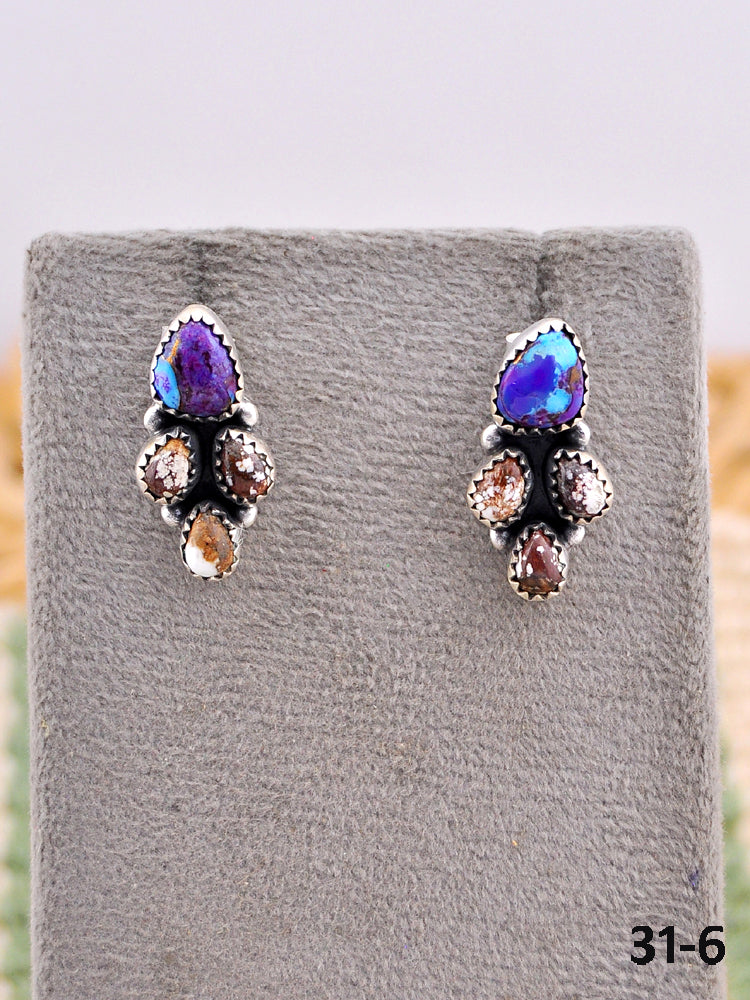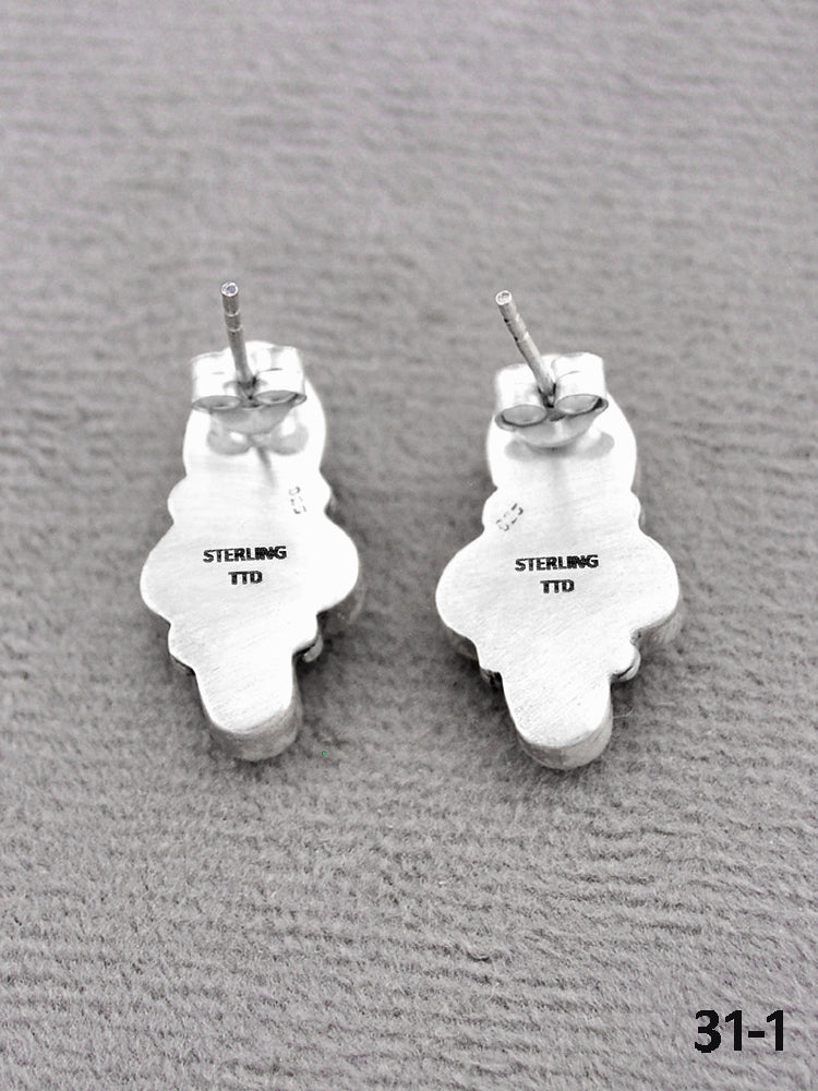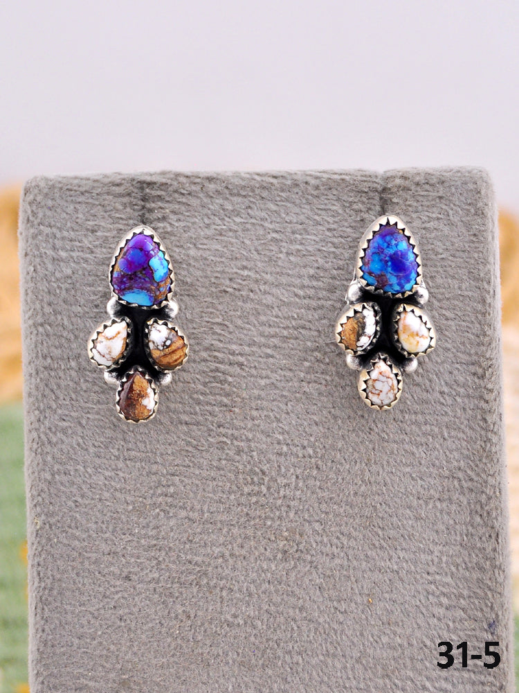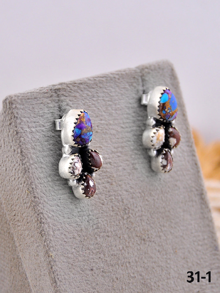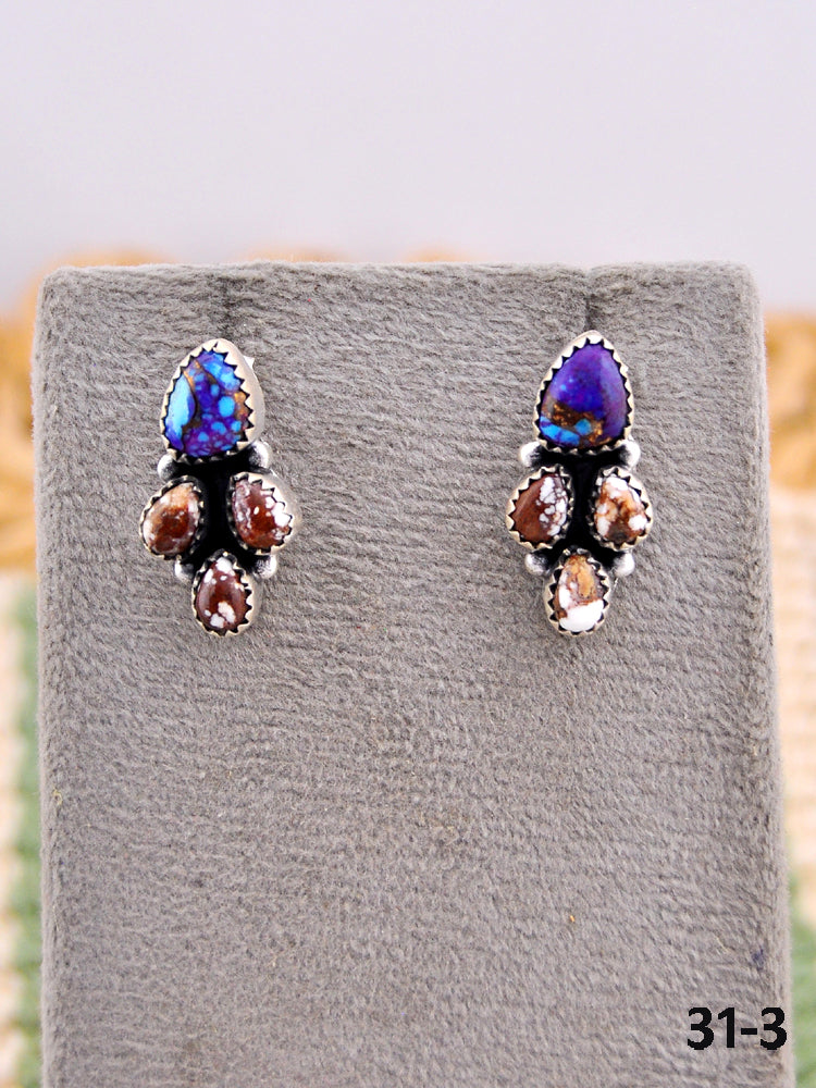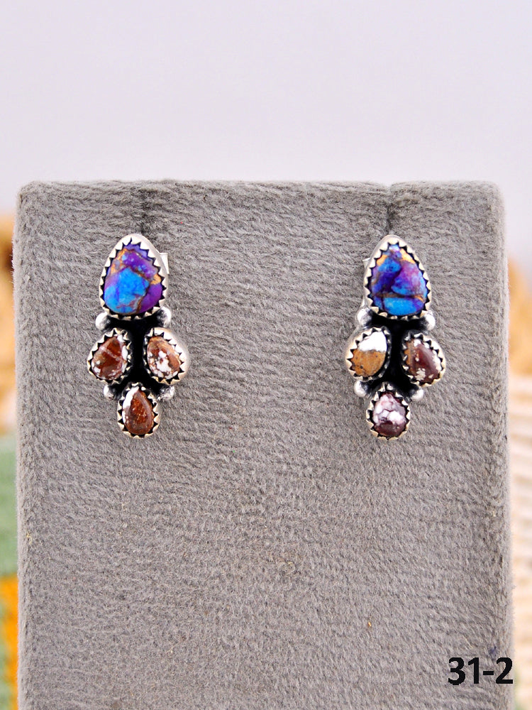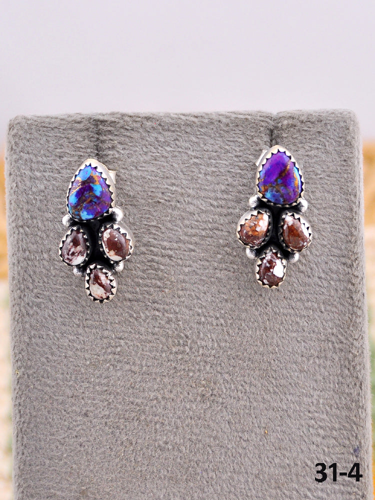 Southwest Made Purple Dahlia with Wild Horse Magnesite & Sterling Silver Post Earrings. It measures 1 inch long and 1/2 of an inch wide. Stamped and signed.