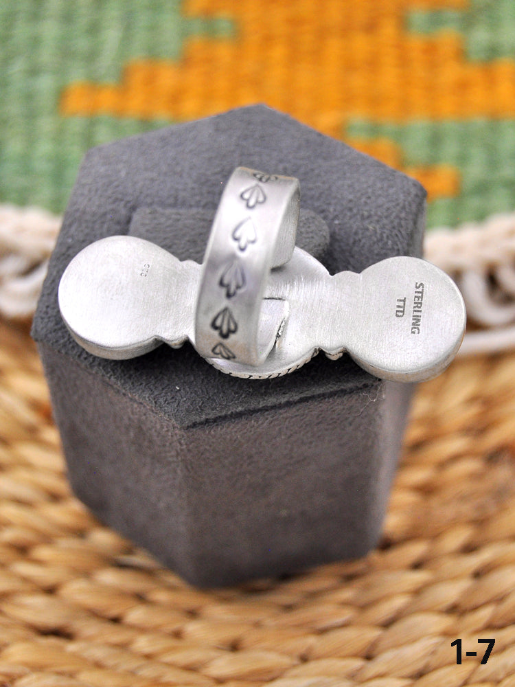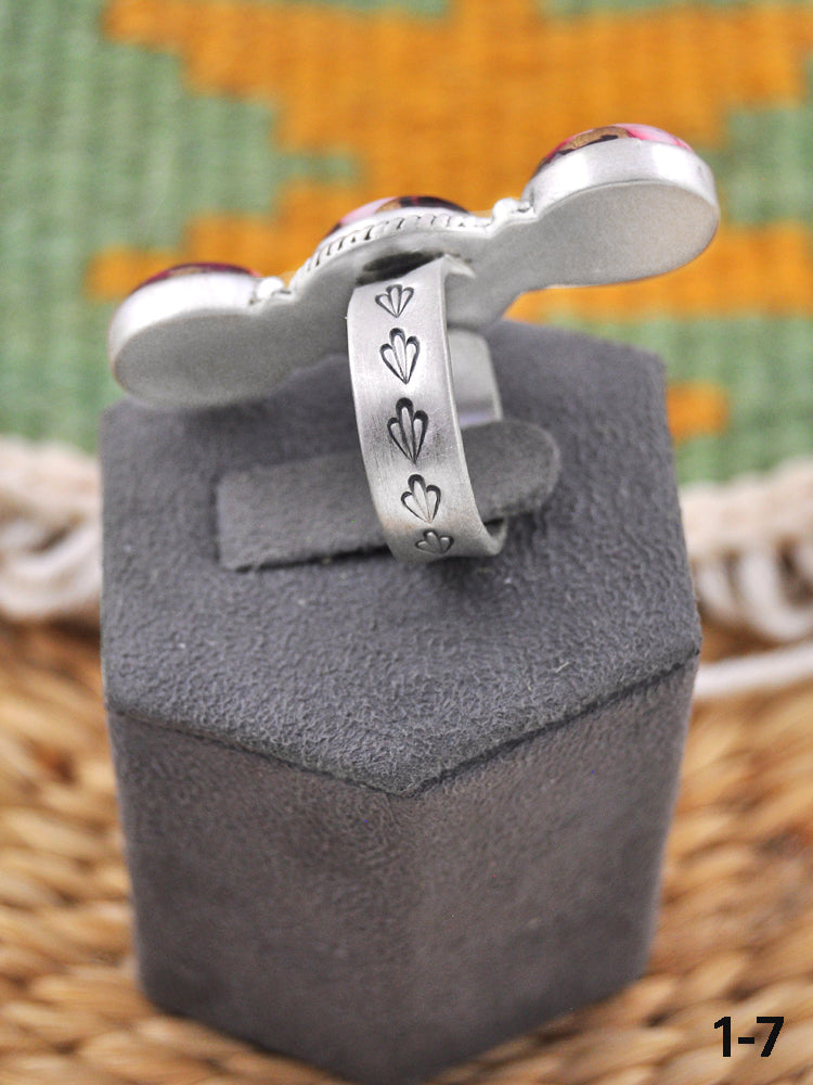 Southwest Made Rose Dahlia & Sterling Sliver Adjustable Ring. It measures 1 7/8 inch long and 3/4 of an inch wide.