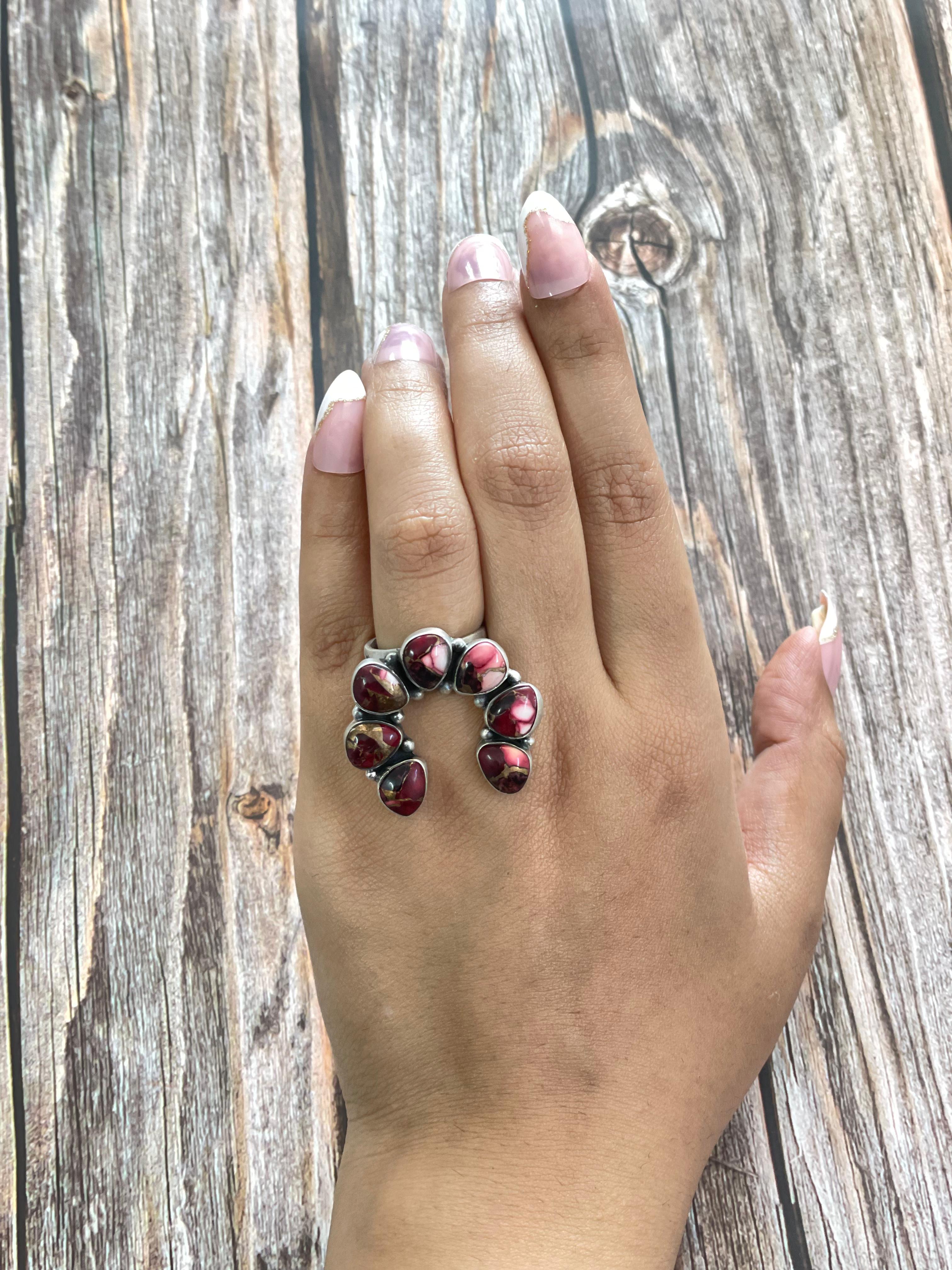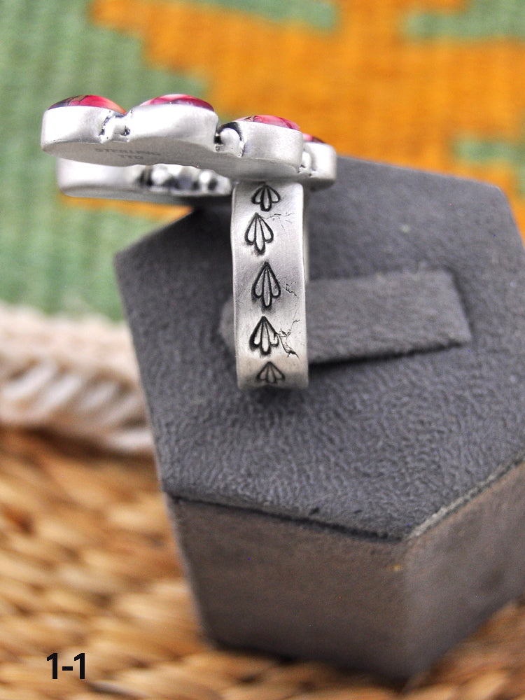 Southwest Made Rose Dahlia & Sterling Silver Naja Adjustable Ring
