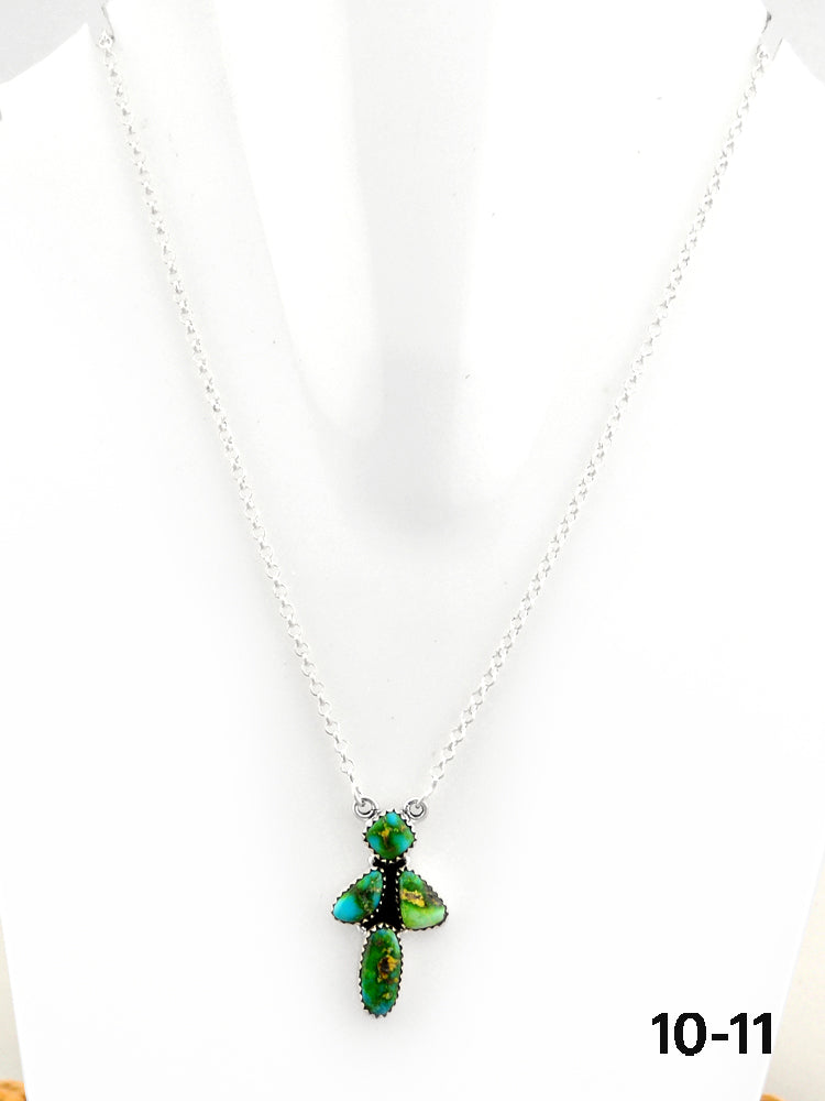 Southwest Made Sonoran Gold & Sterling Silver Necklace. It measures 20 inches long with hang while the chain measures 18 inches long. Signed by the artist and stamped sterling silver.