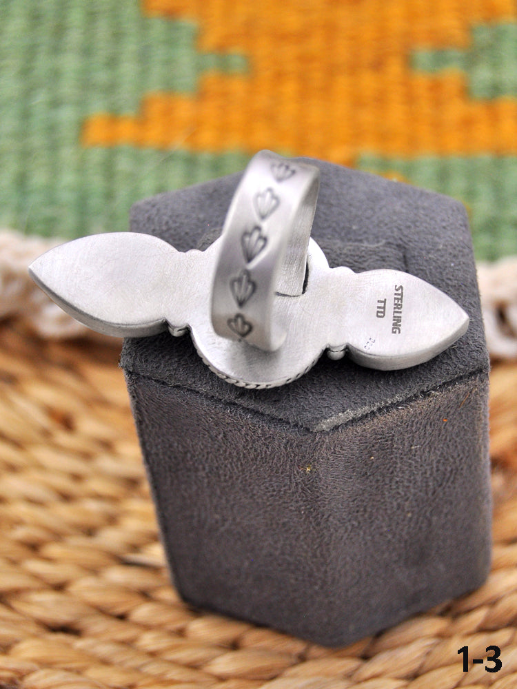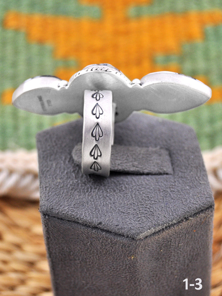 Southwest Made White Buffalo & Sterling Sliver Adjustable Ring. It measures 2 1/8 inches long and 7/8 of an inch wide.