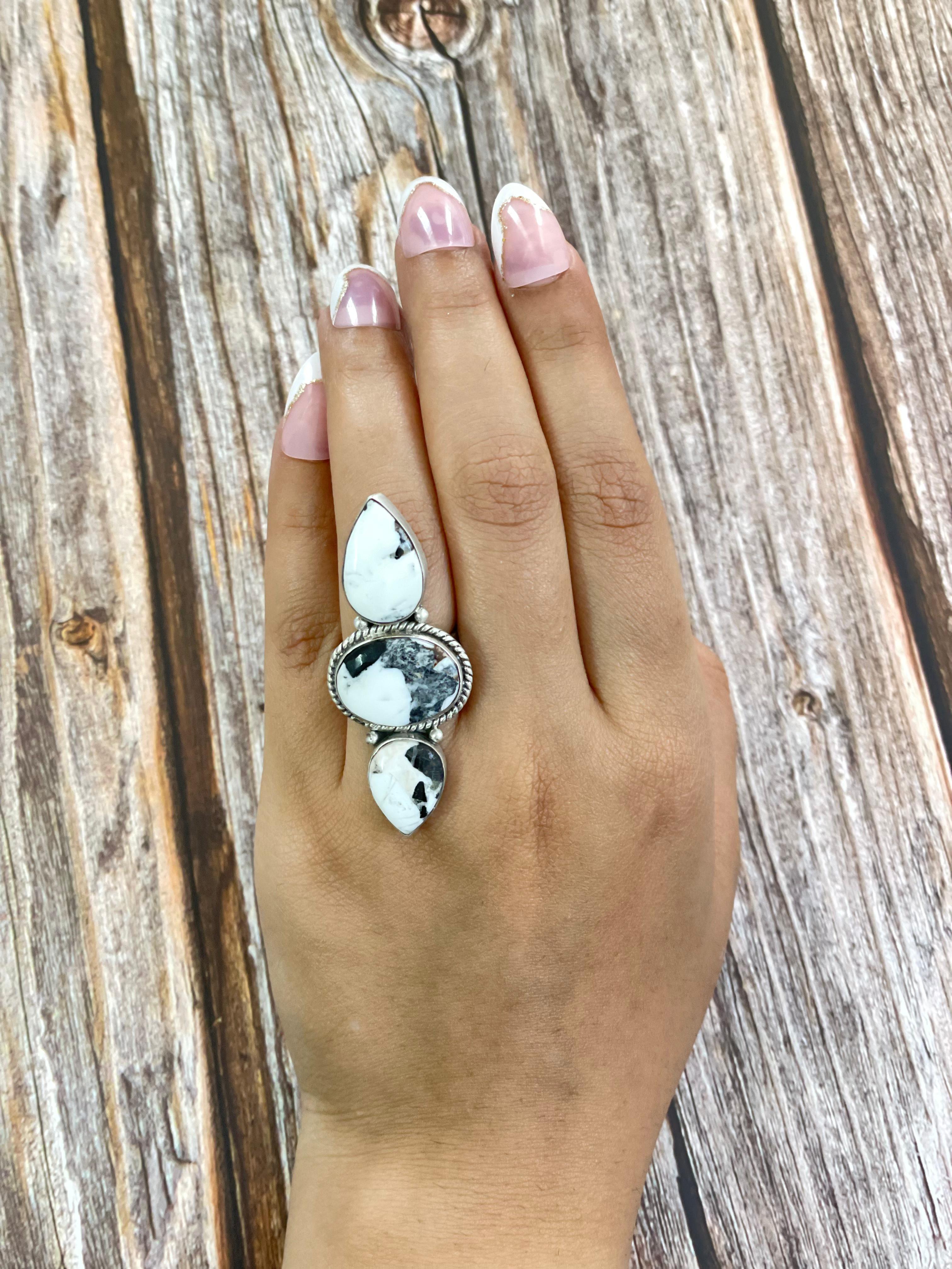 Southwest Made White Buffalo & Sterling Silver Adjustable Ring