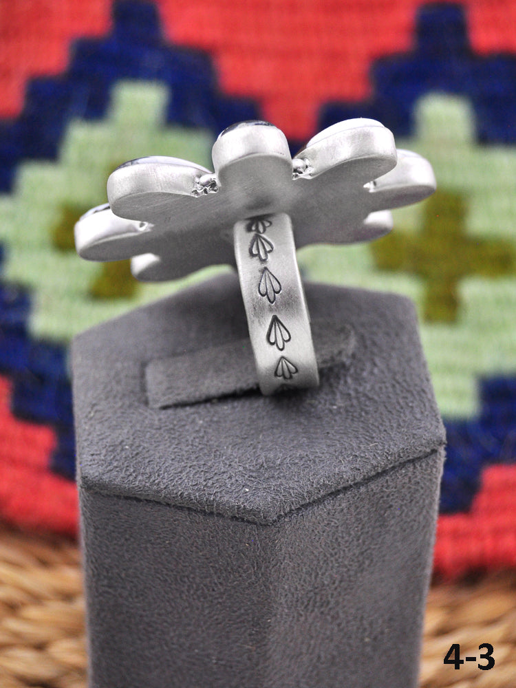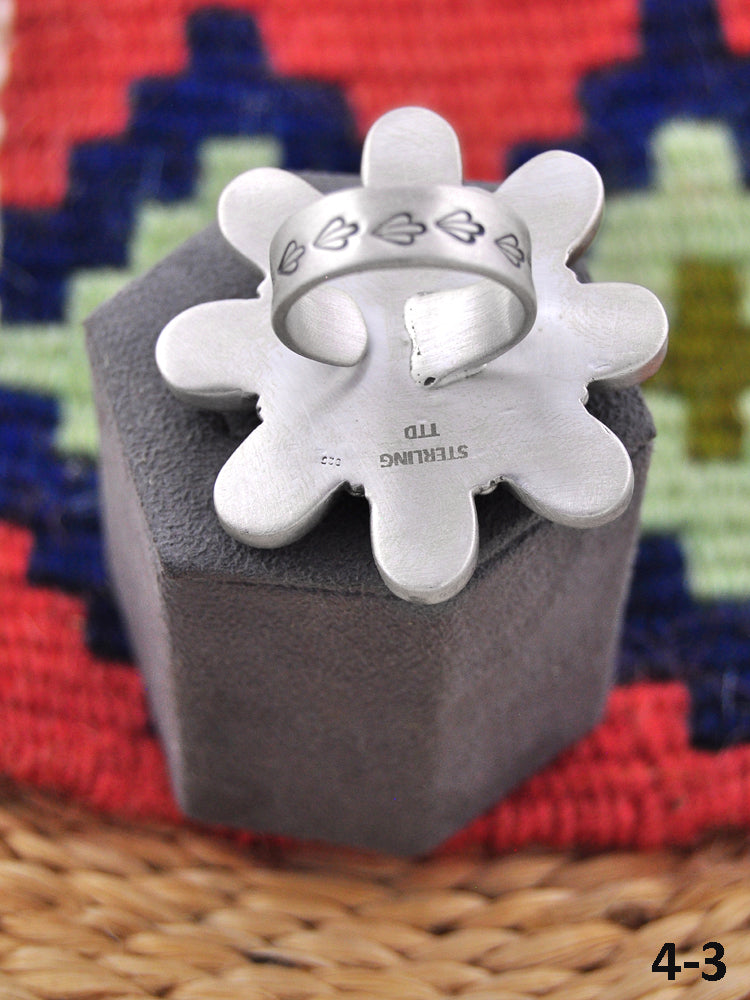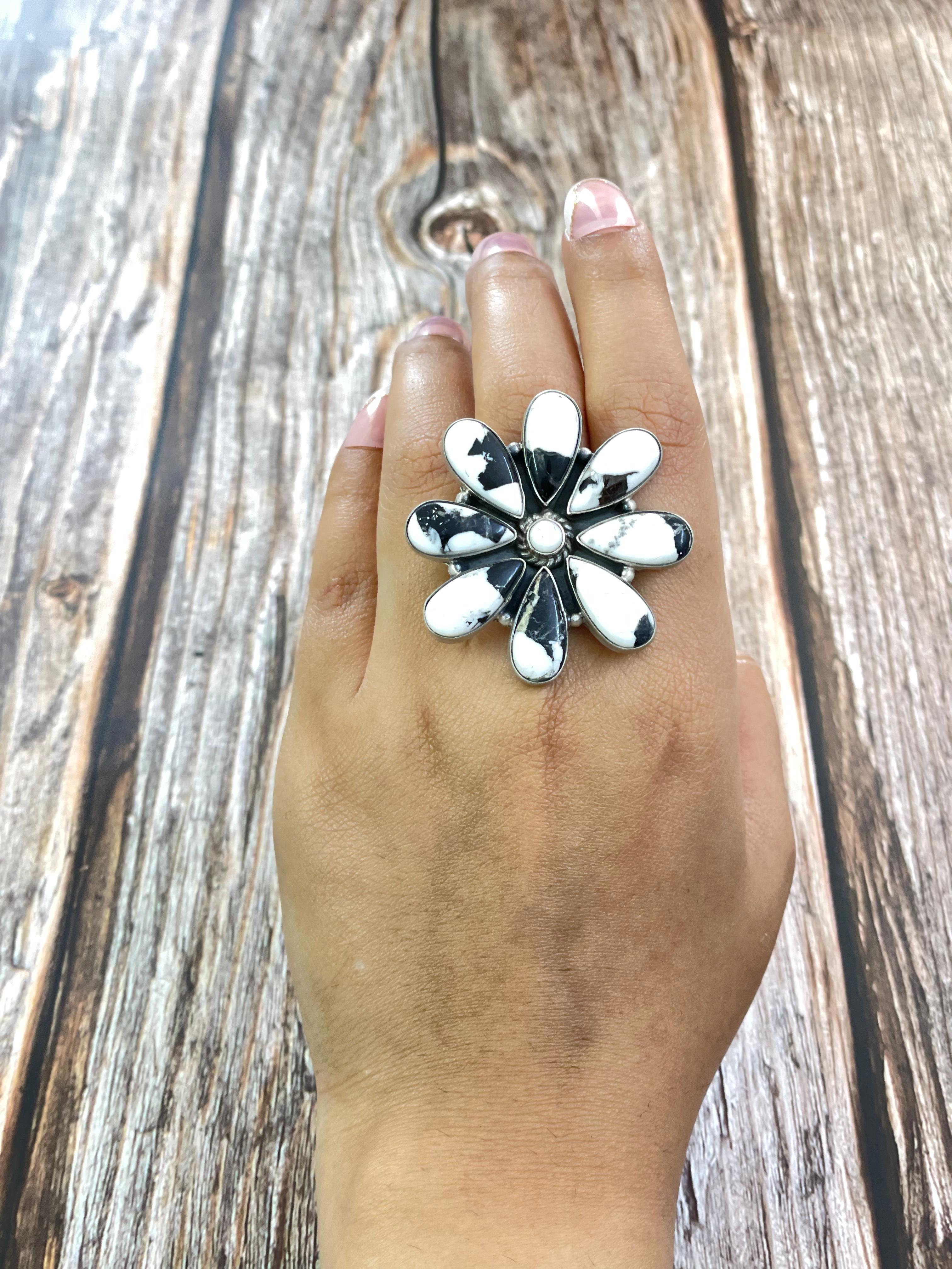 Southwest Made White Buffalo & Sterling Sliver Adjustable Ring. It measures 1 3/4 inches long and 1 3/4 inches wide.