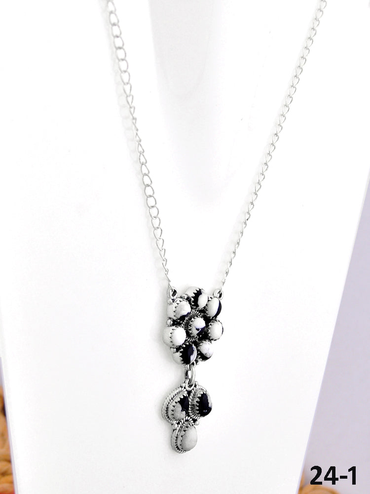Southwest Made White Buffalo Turquoise & Sterling Silver Necklace. It measures 19 inches long with hang while the chain measures 18 inches long, with drop 2 inches . Signed by the artist and stamped sterling silver.