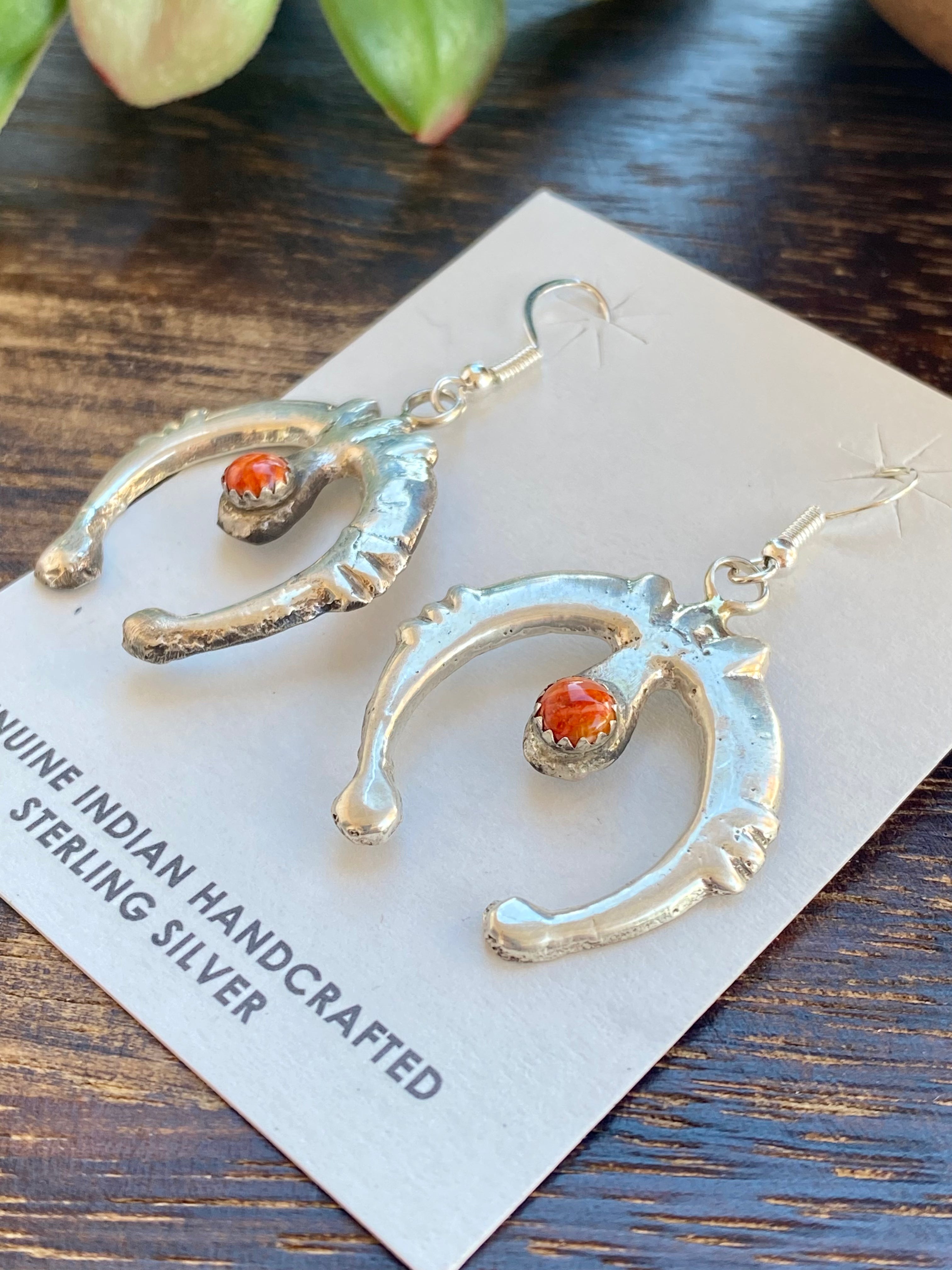 Tonya Yazzie Spiny Oys & Sterling Silver Naja Dangle Earrings