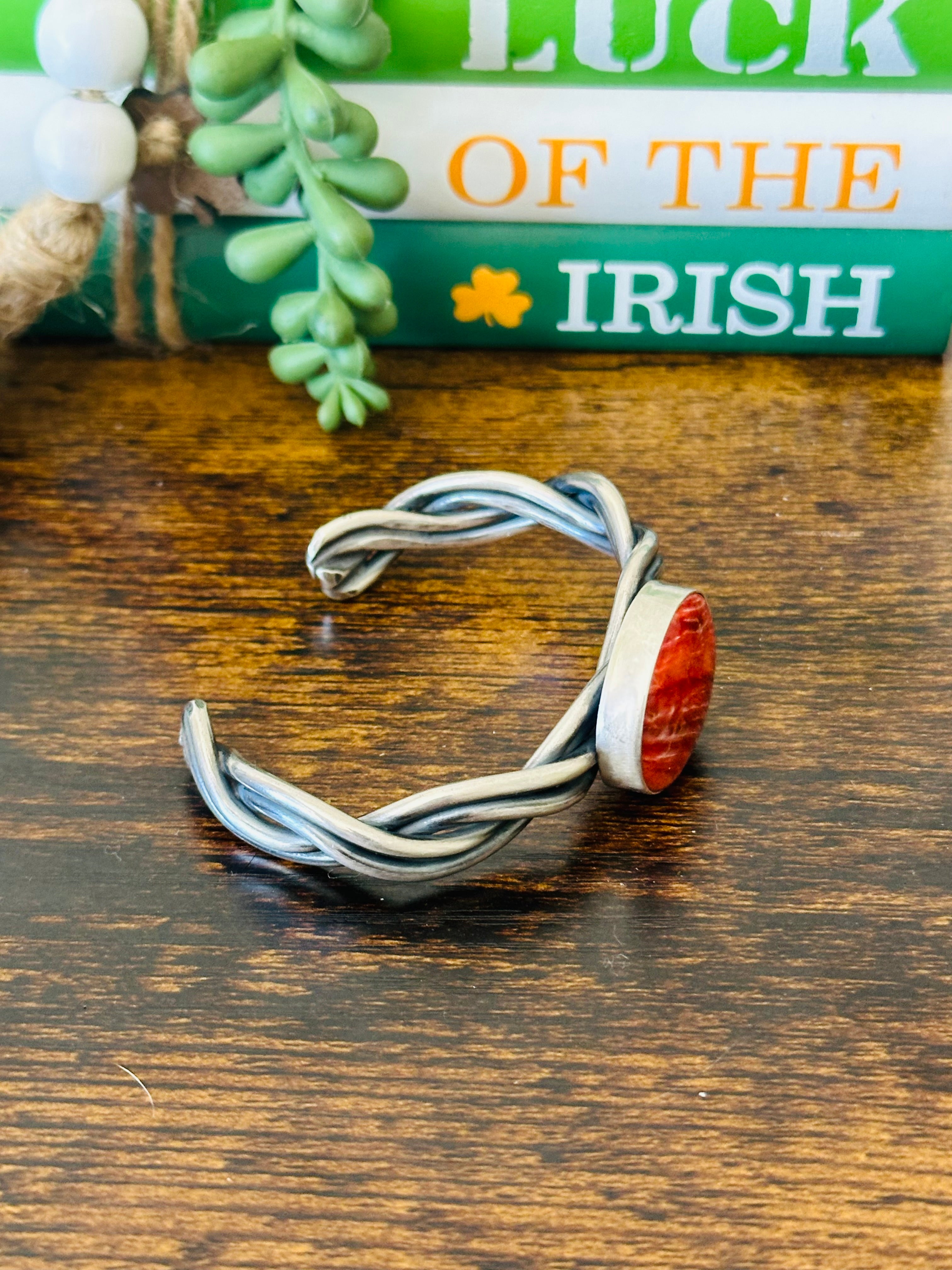 Navajo Made Red Spiny Oyster & Sterling Silver Cuff Bracelet