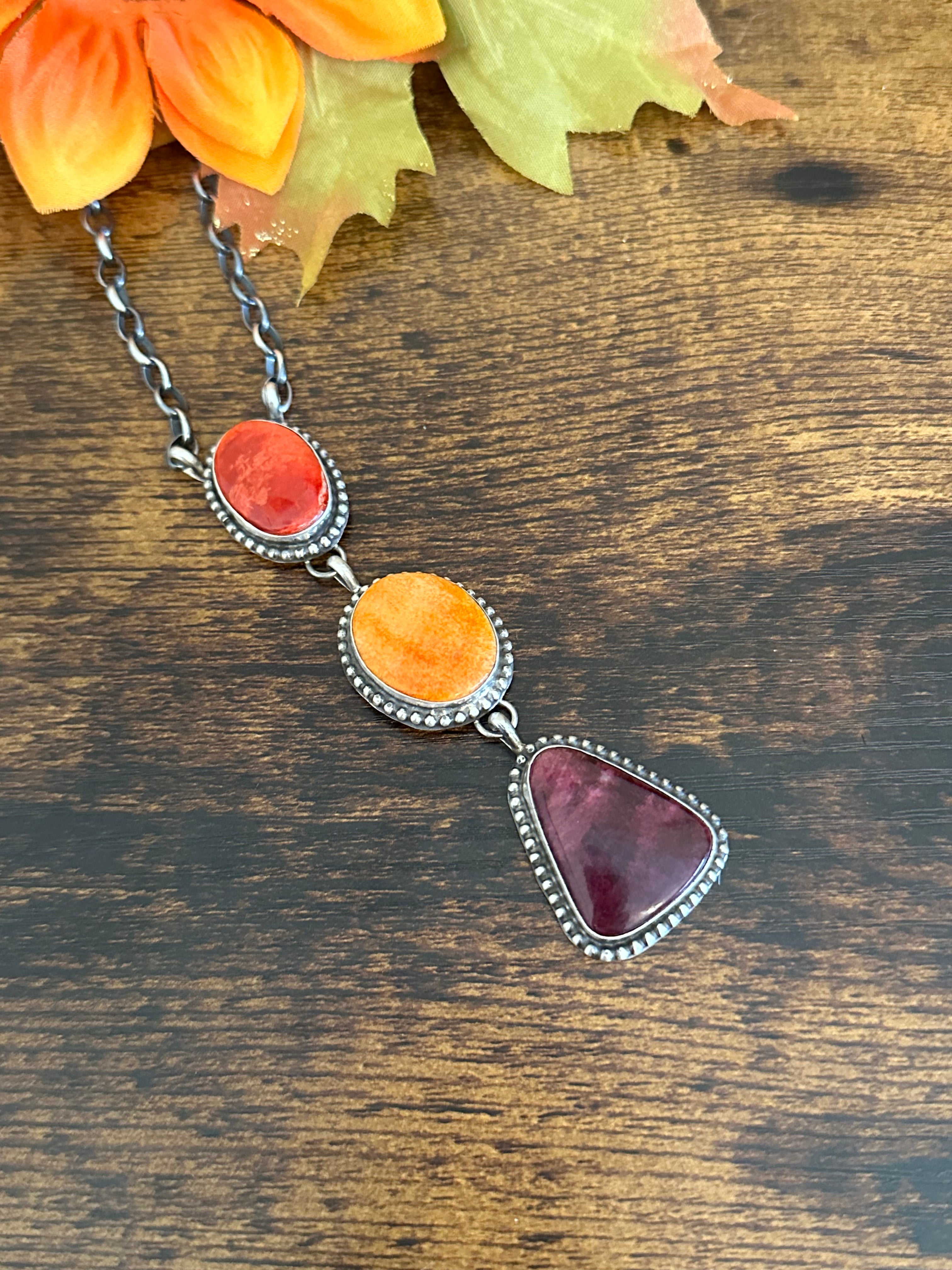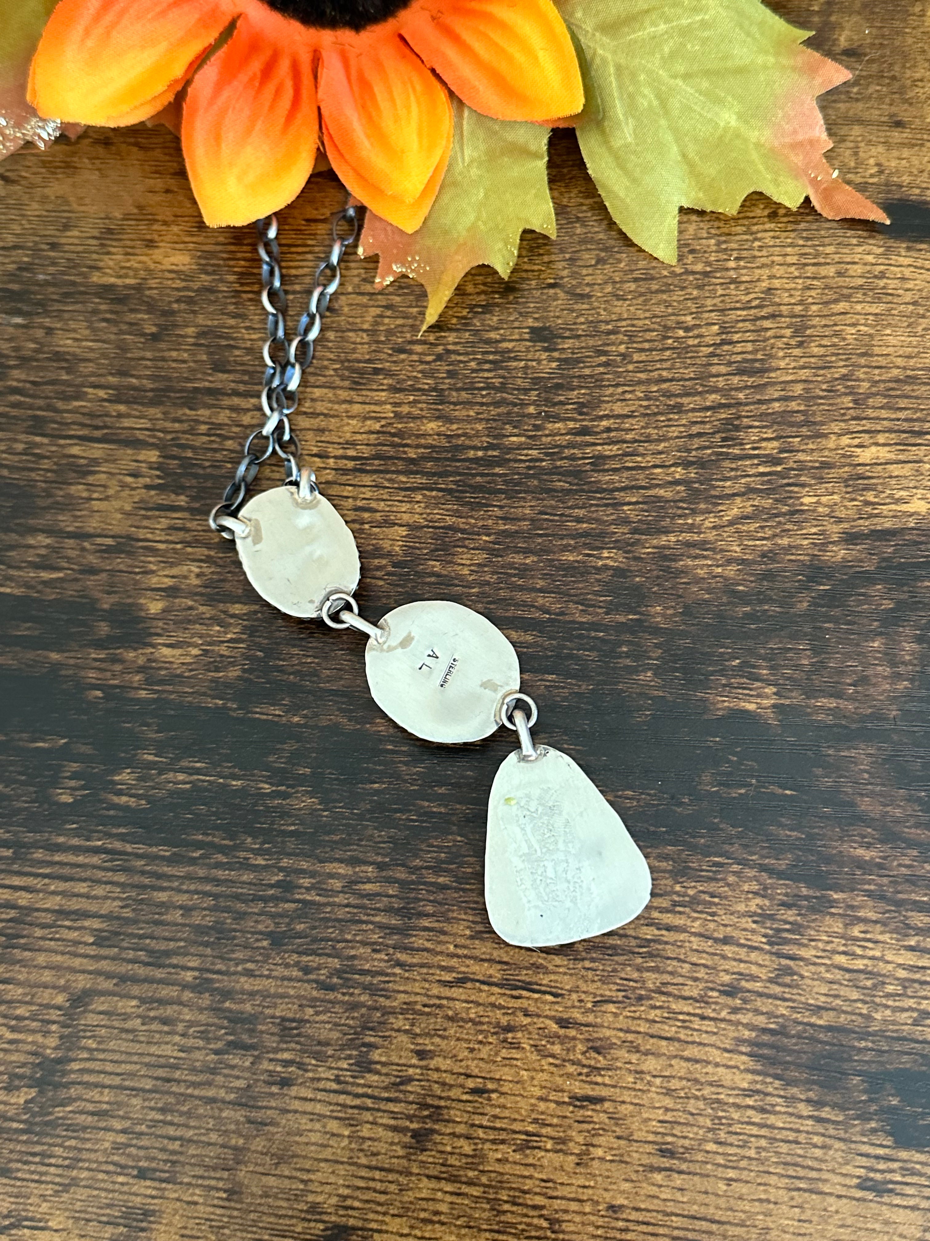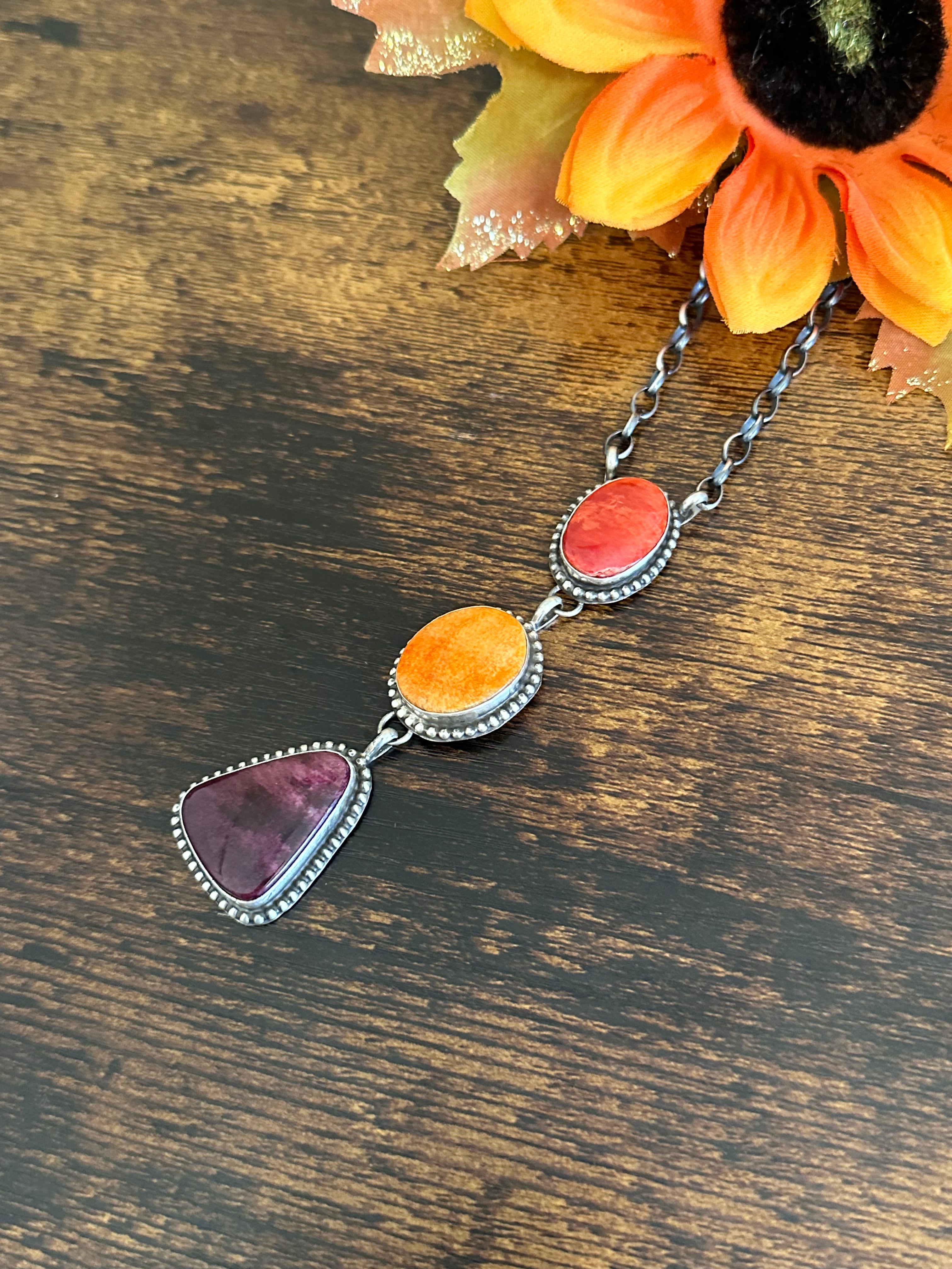 Beautiful necklace. Augustine Largo Multi Stone & Sterling Silver Drop Necklace. It measures 30 inches long with hang while the chain by itself measures 22 inches long. Signed by the artist and stamped sterling silver.