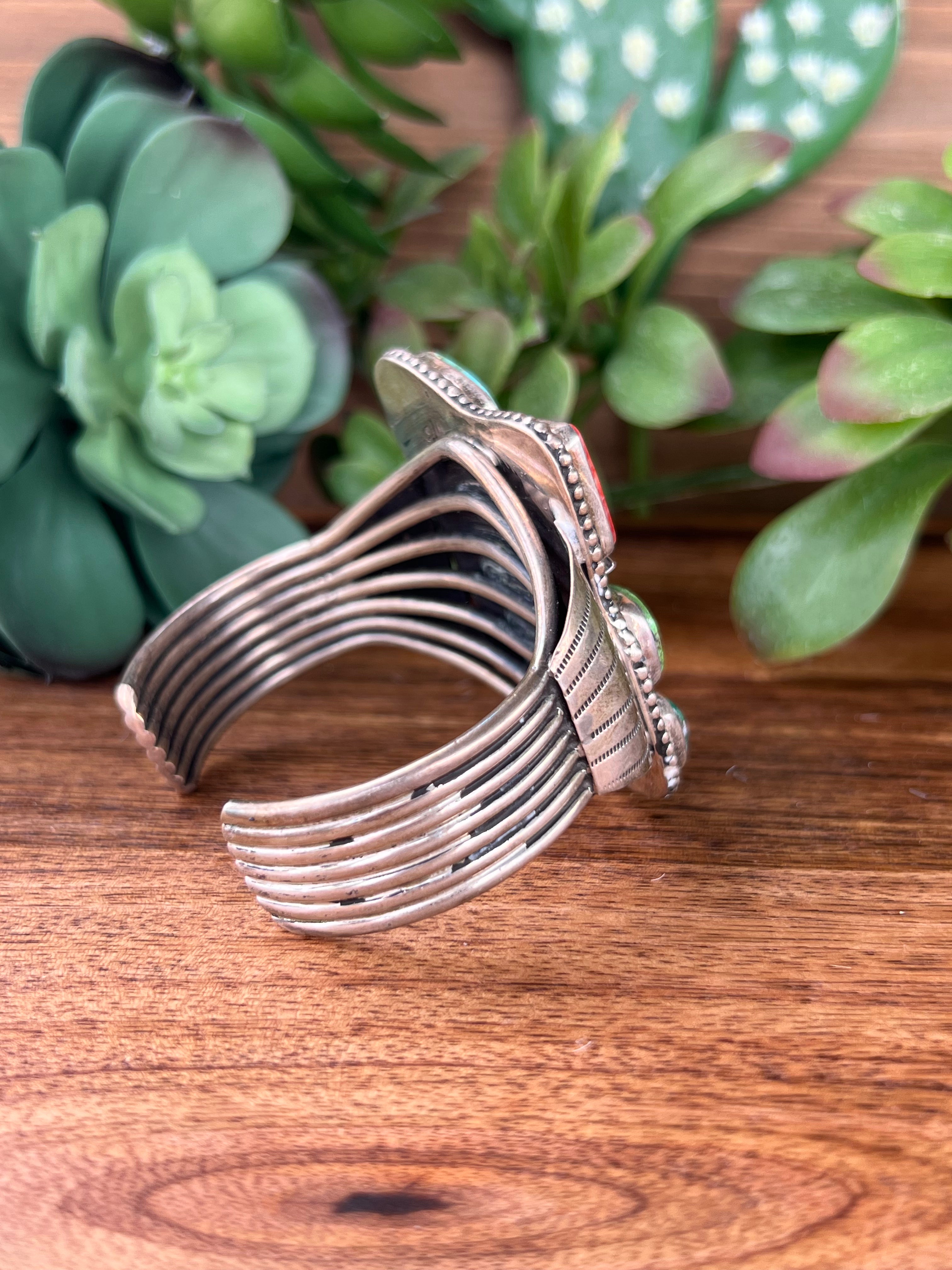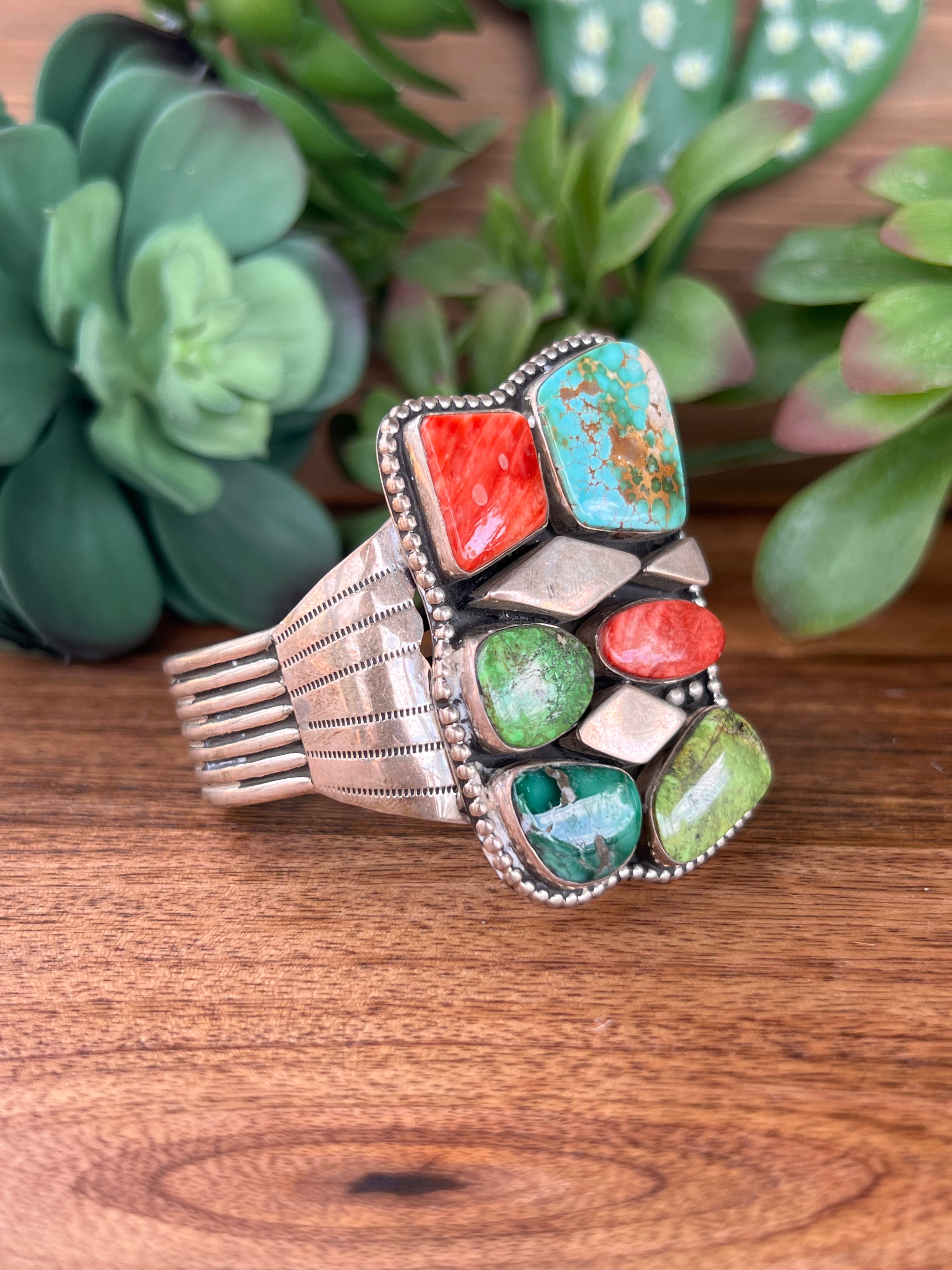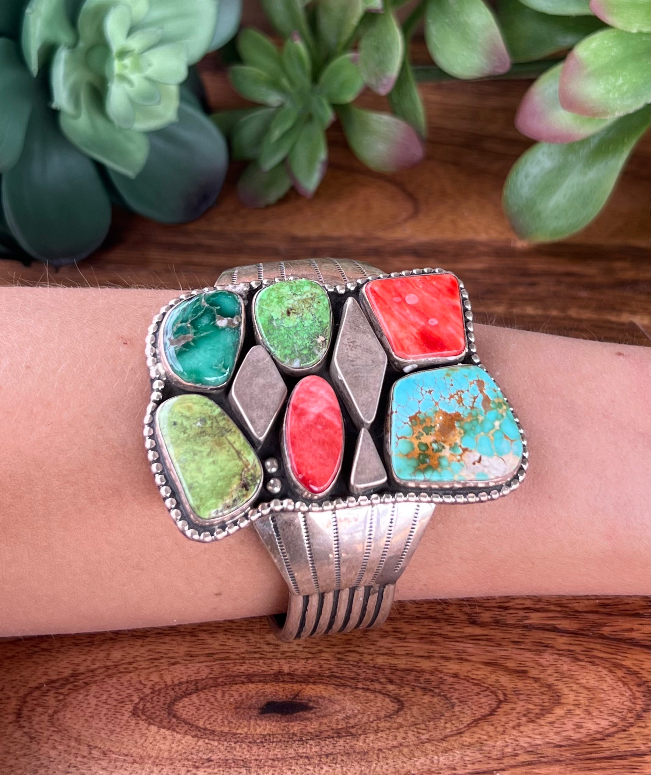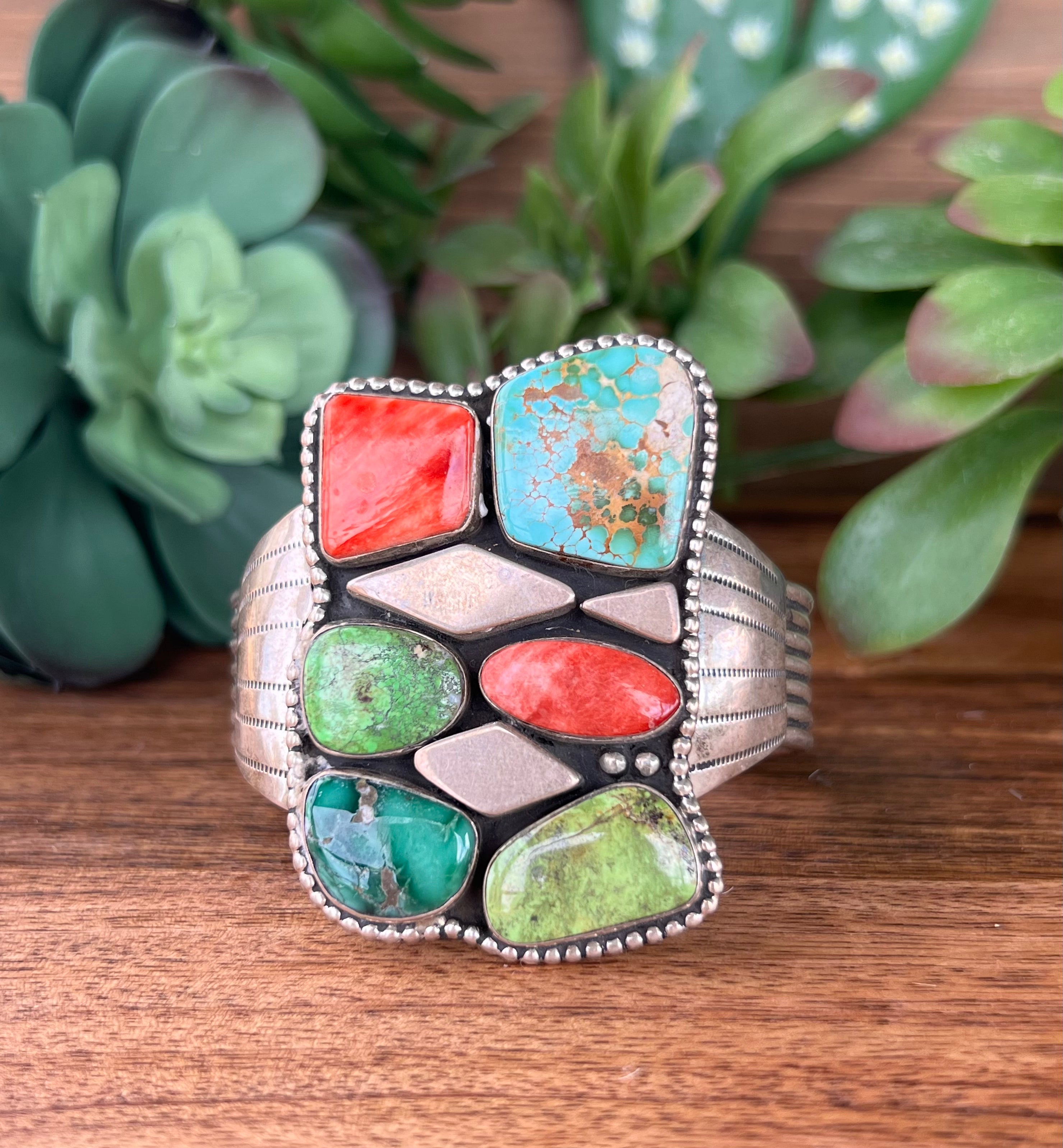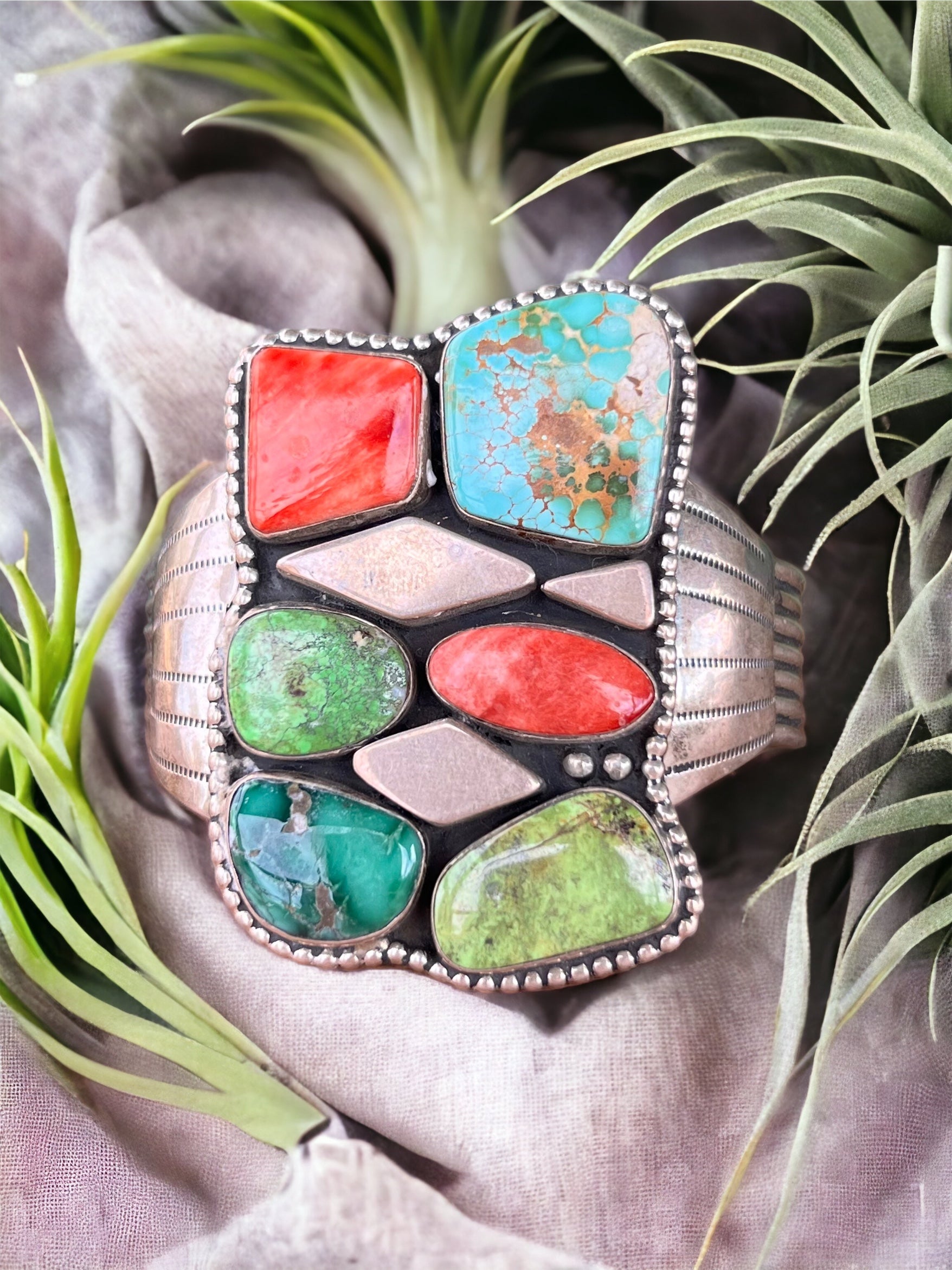 Vintage Navajo Multi Stone & Sterling Silver Cuff Bracelet