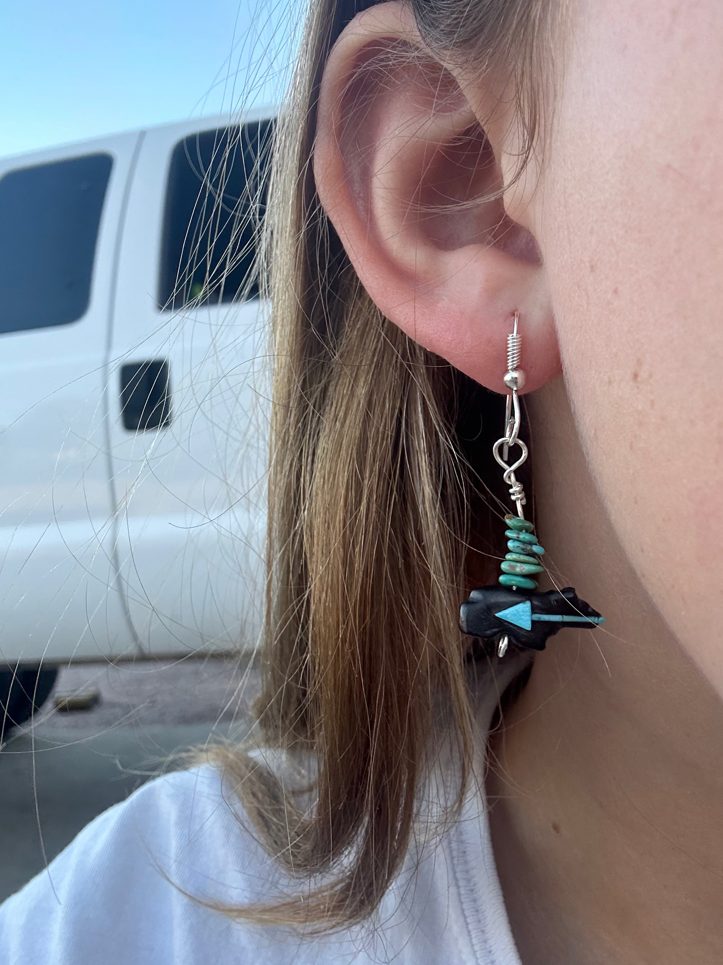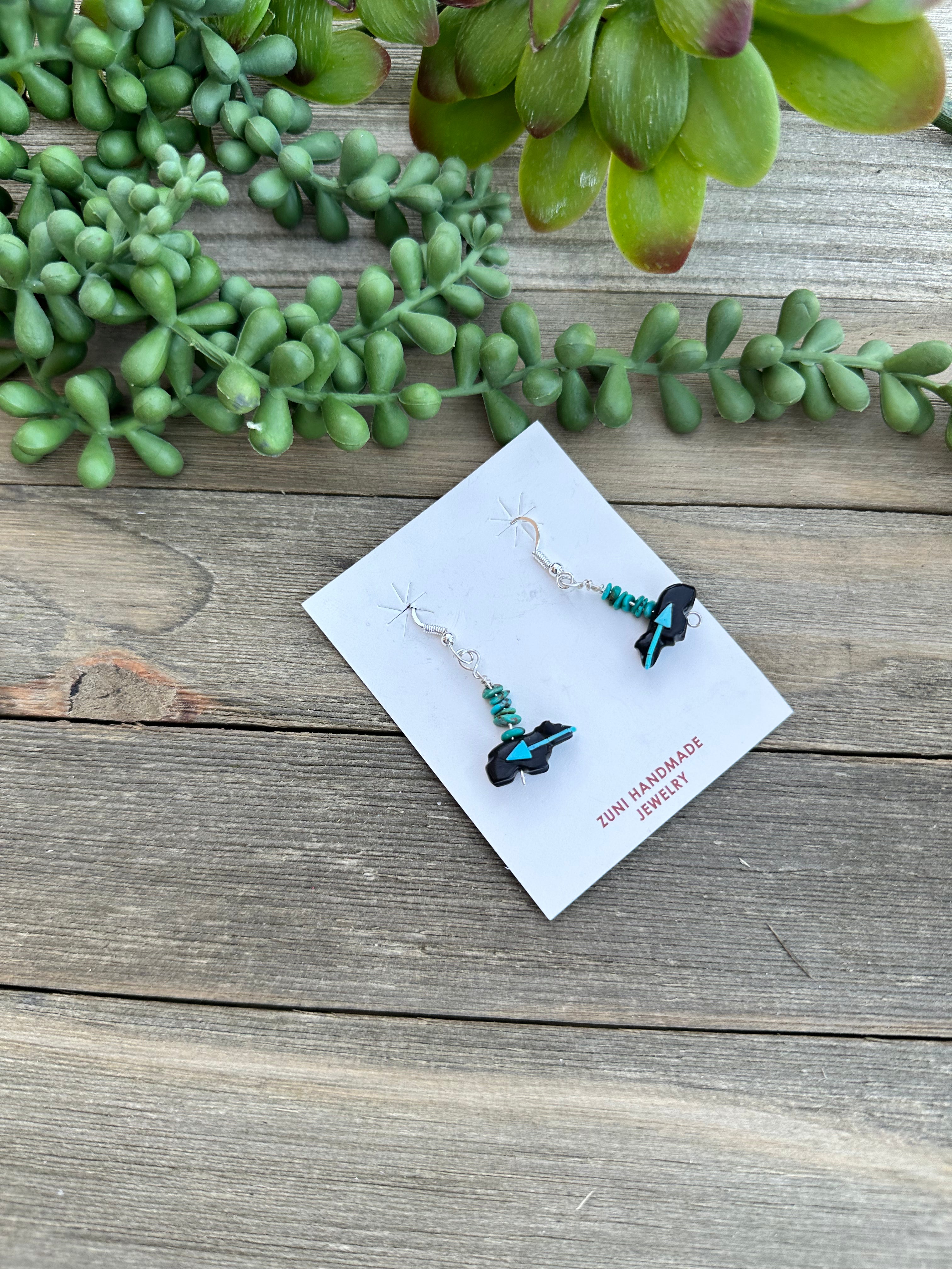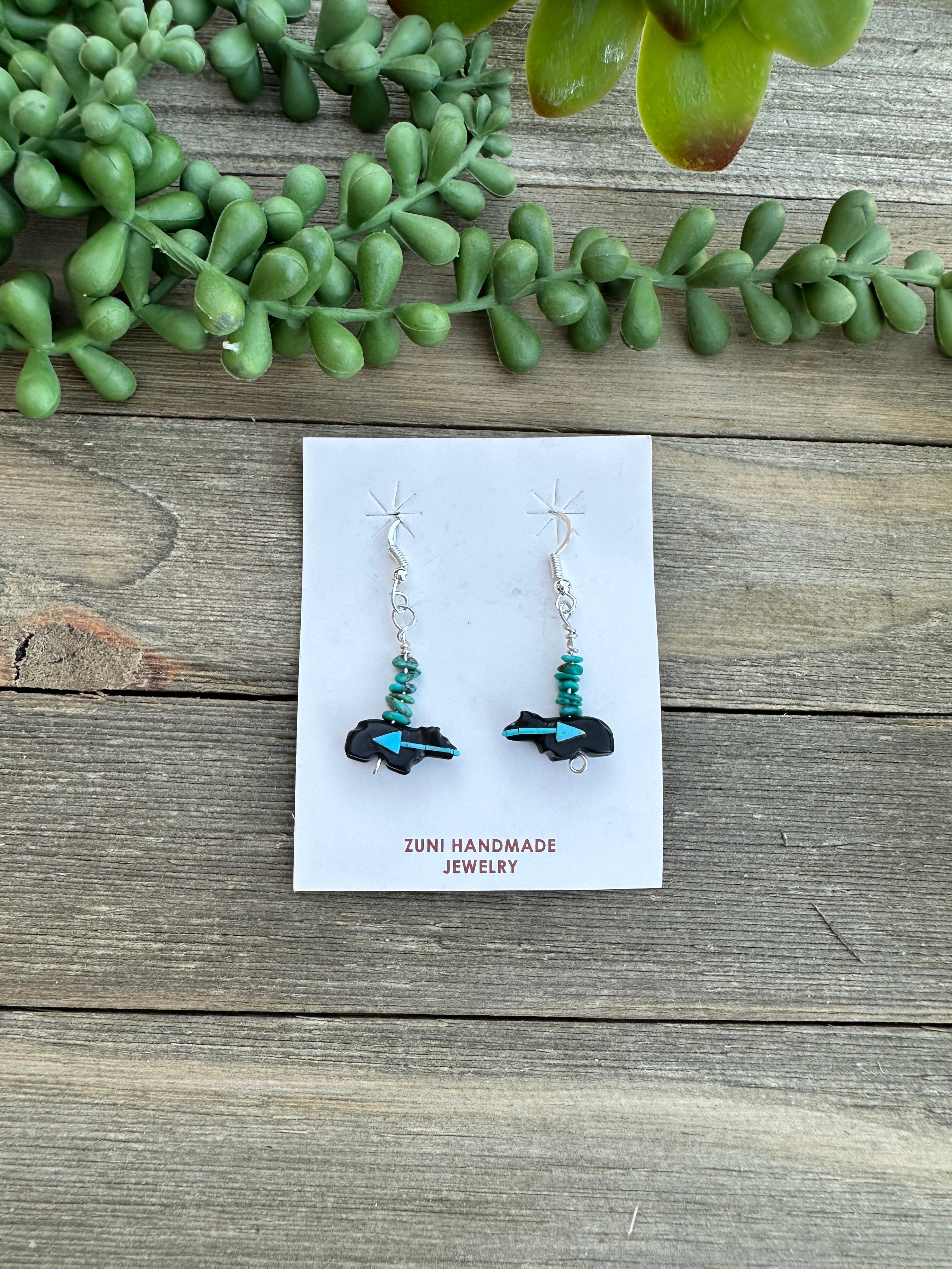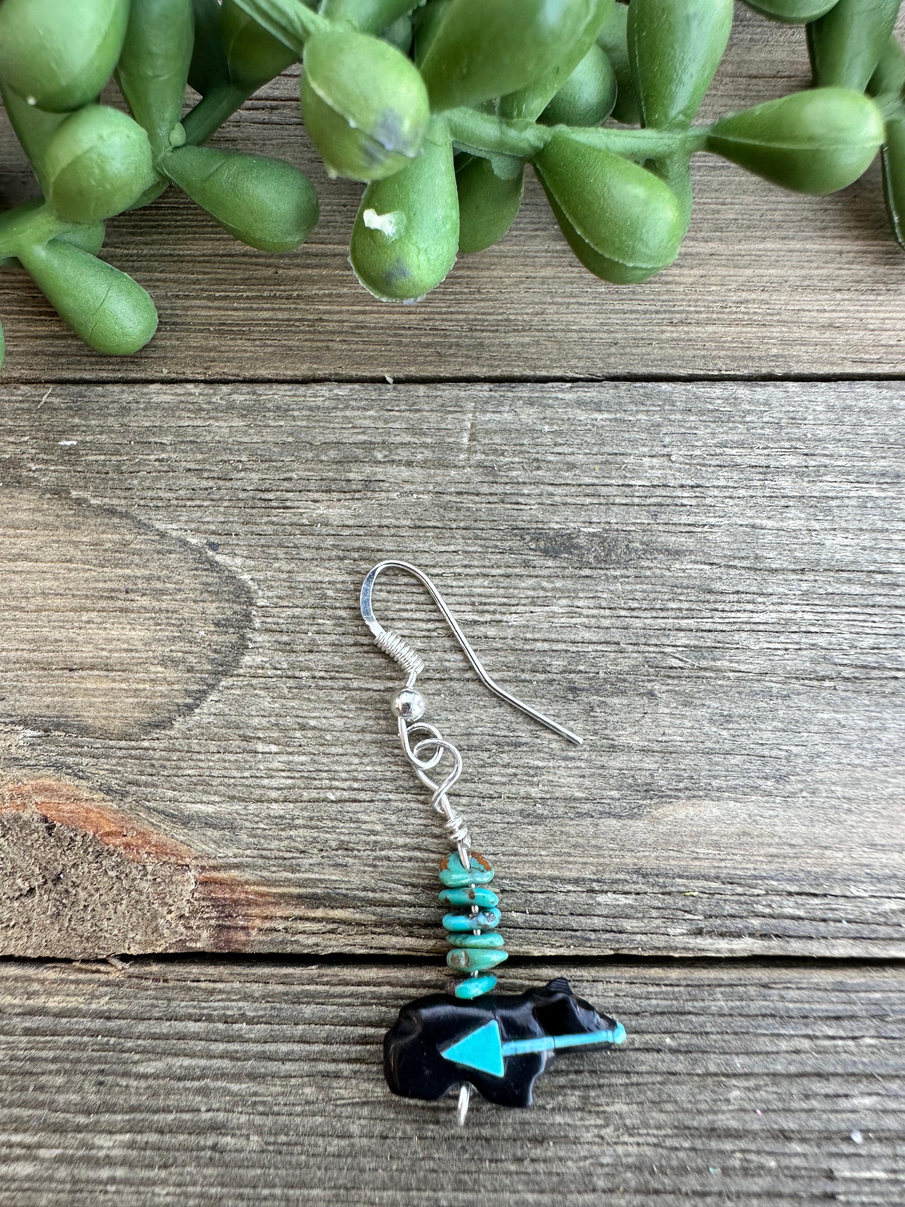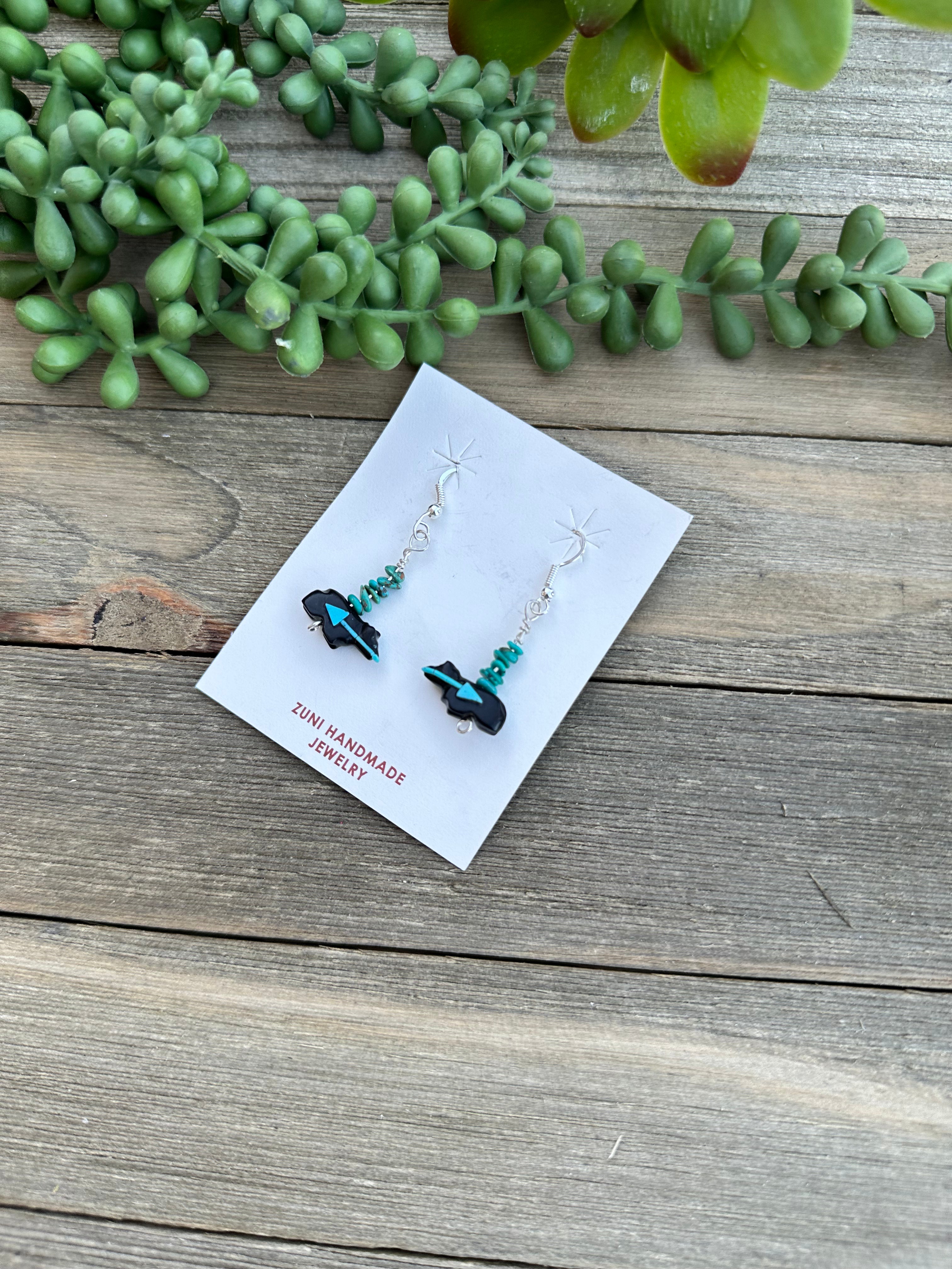 Zuni Fetish Multi Stone & Sterling Silver Dangle Earrings