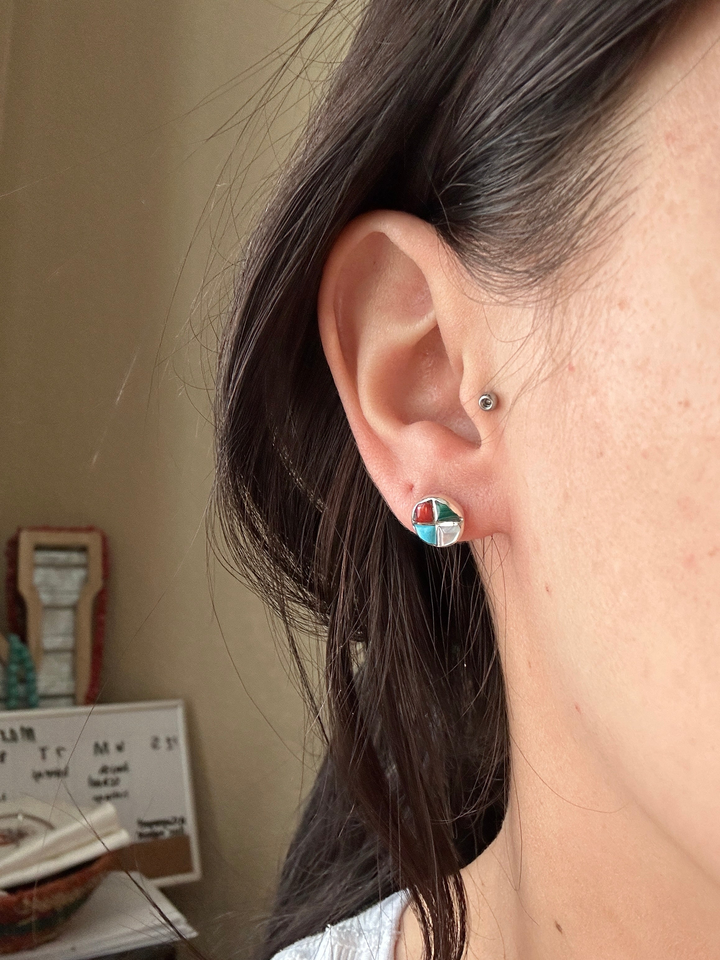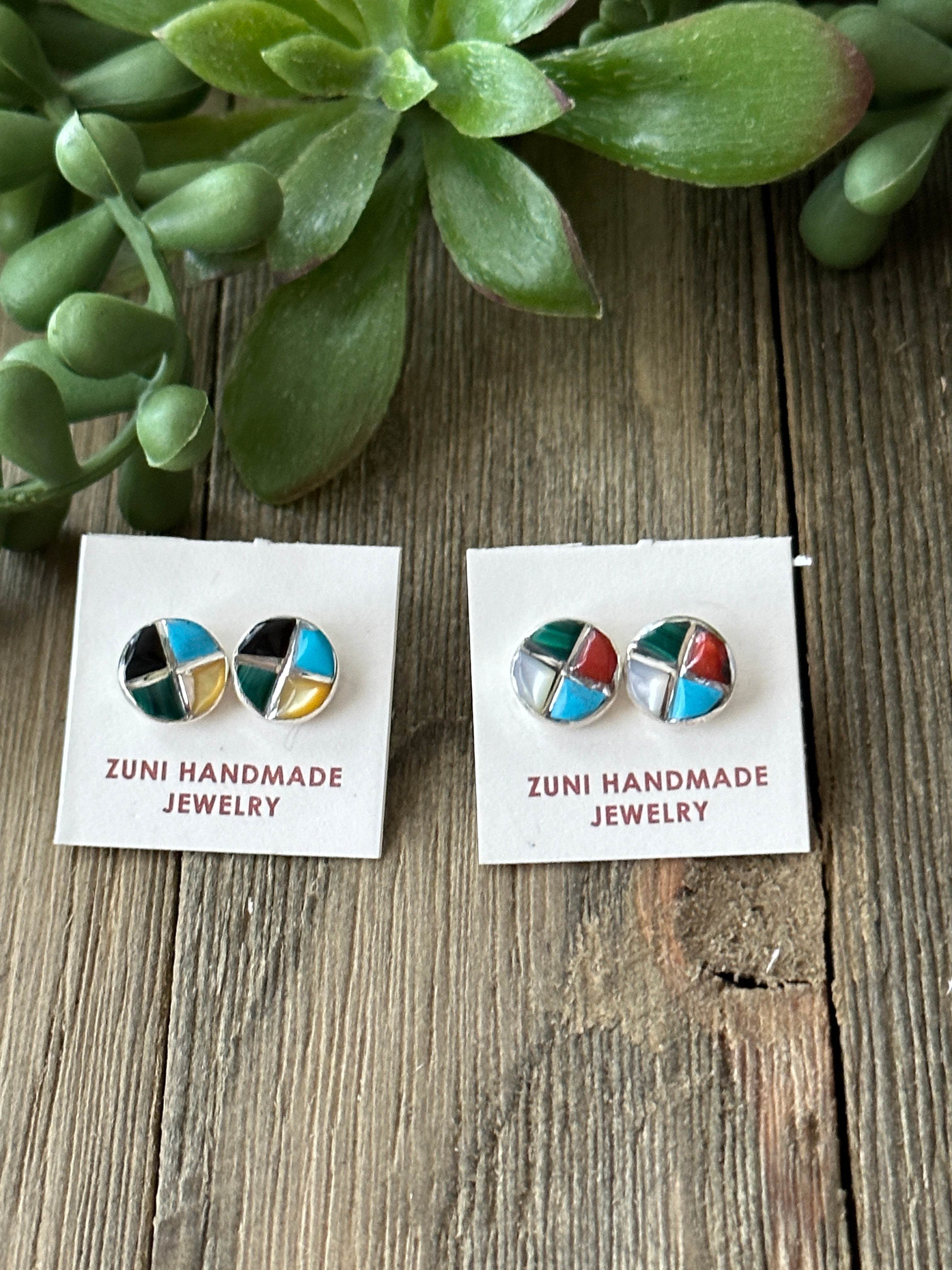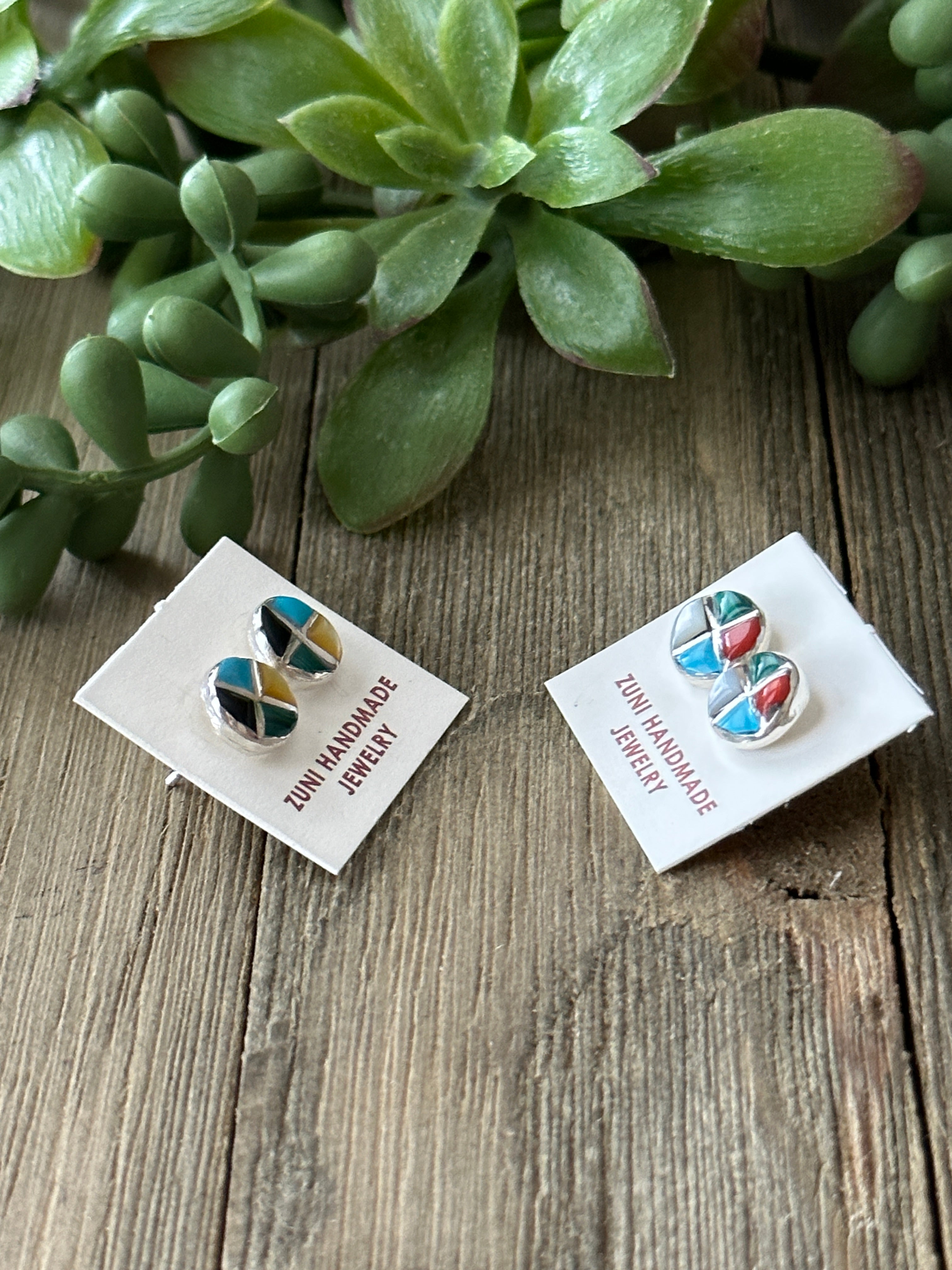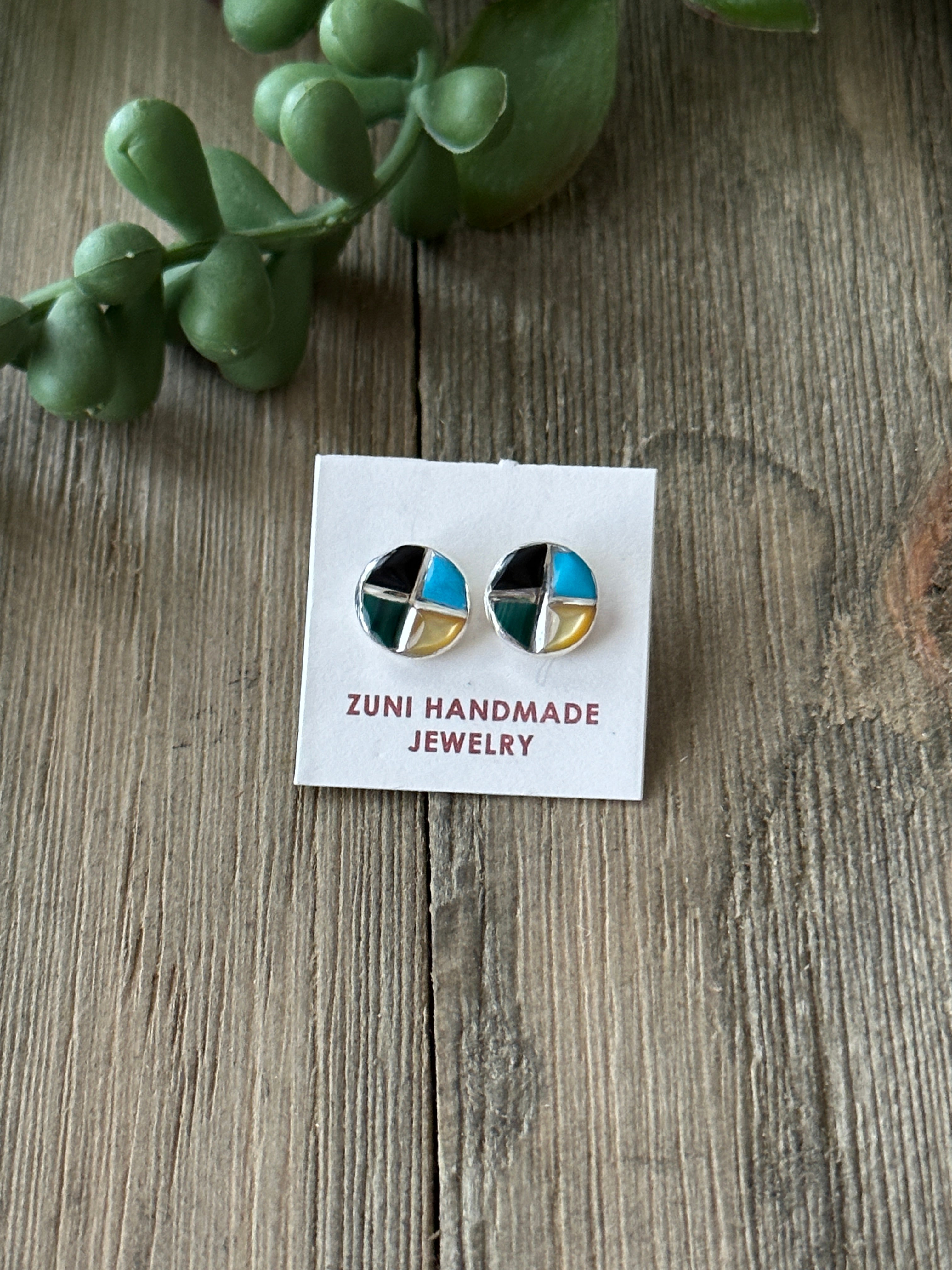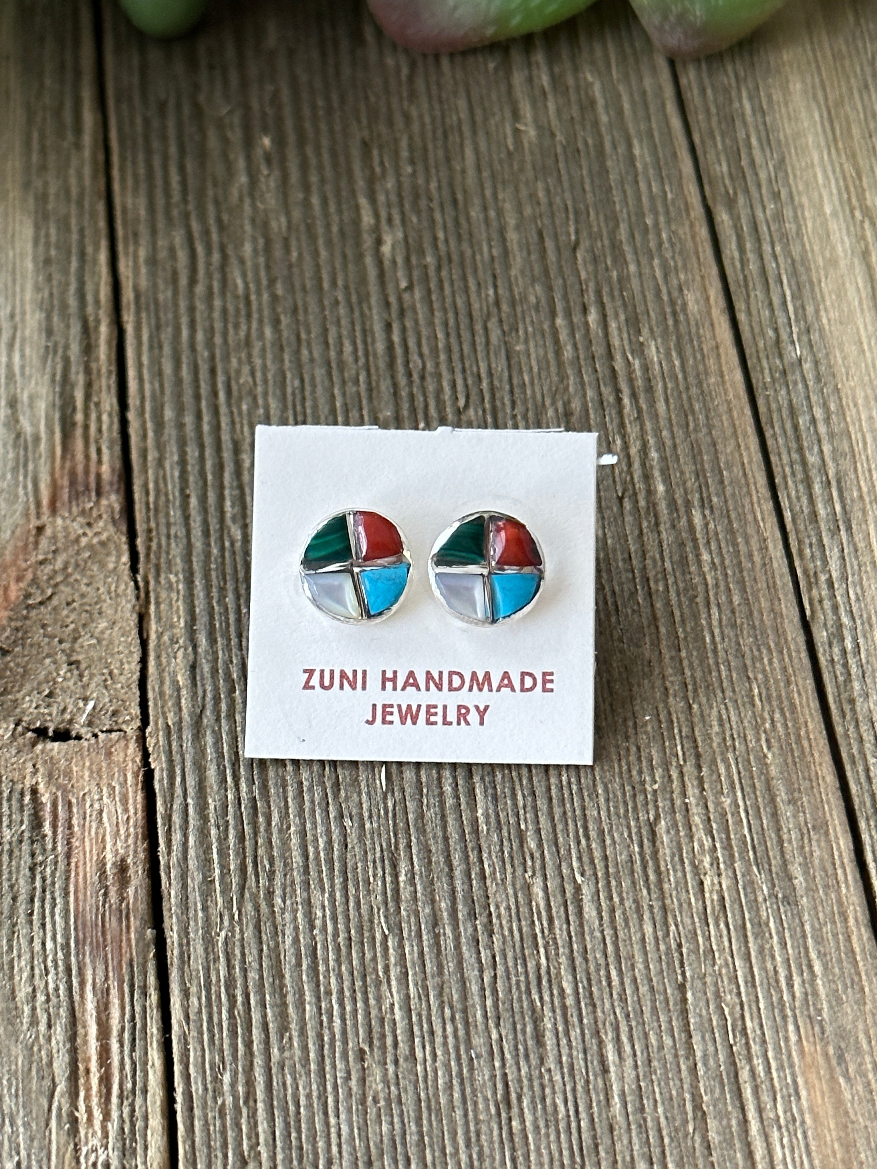 Zuni Made Multi Stone & Sterling Silver Inlay Post Earrings