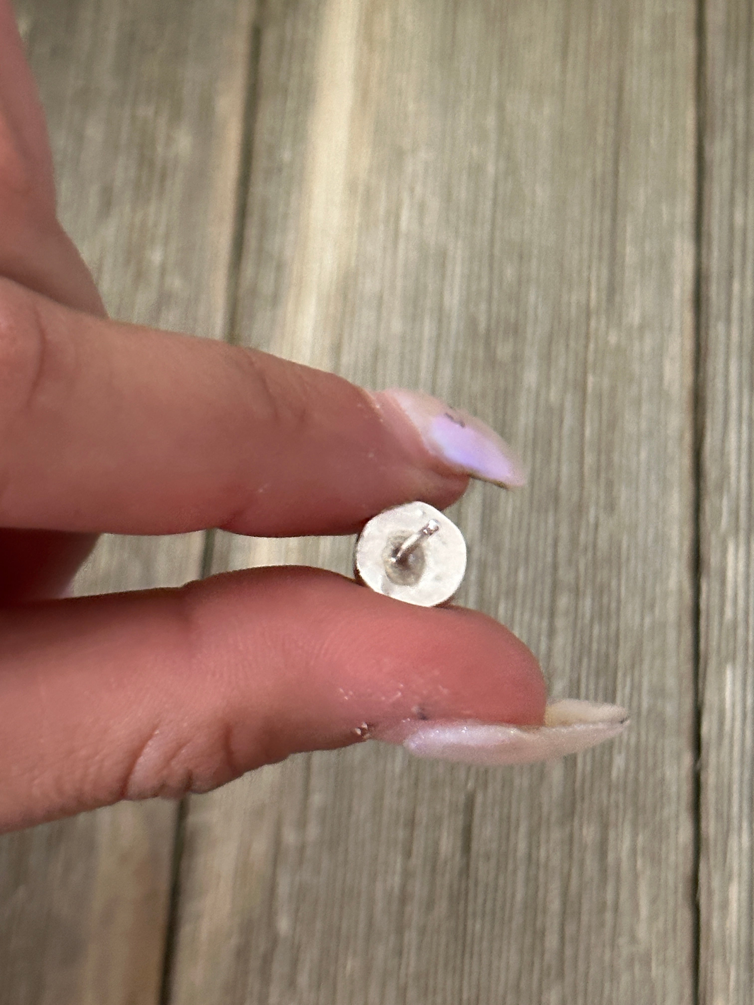 Zuni Made Multi Stone & Sterling Silver Inlay Post Earrings. It measures 3/8 of an inch long and 3/8 of an inch wide. Signed by artist and stamped sterling silver.