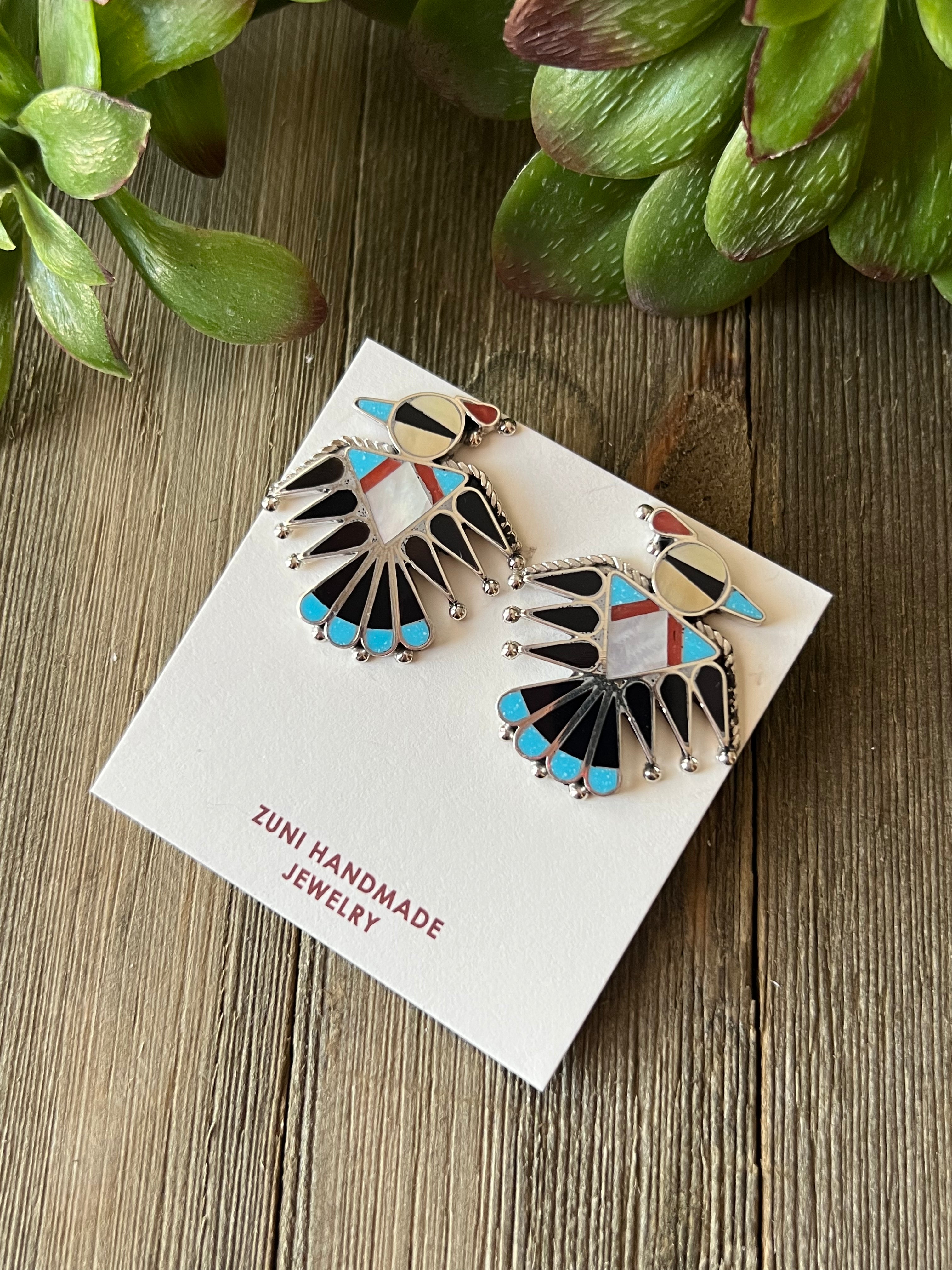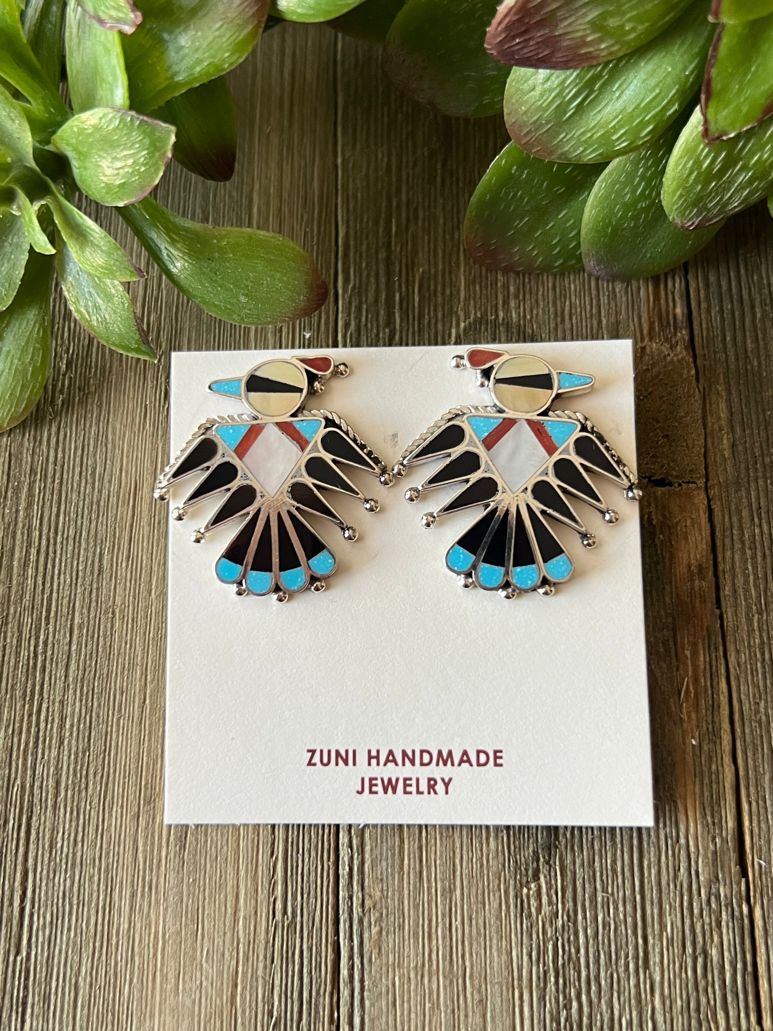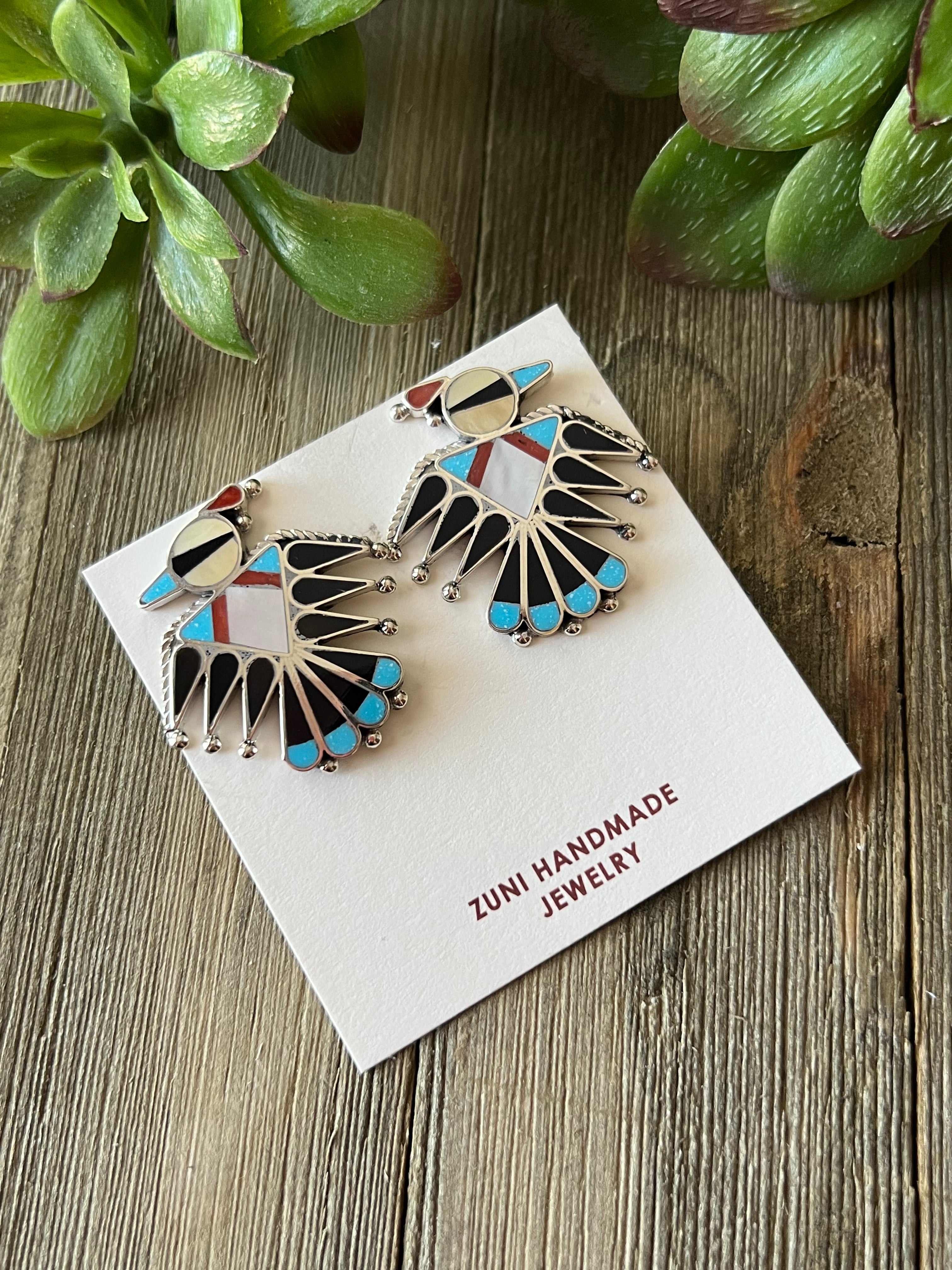 Zuni Made Multi Stone & Sterling Silver Inlay Thunderbird Post Earrings