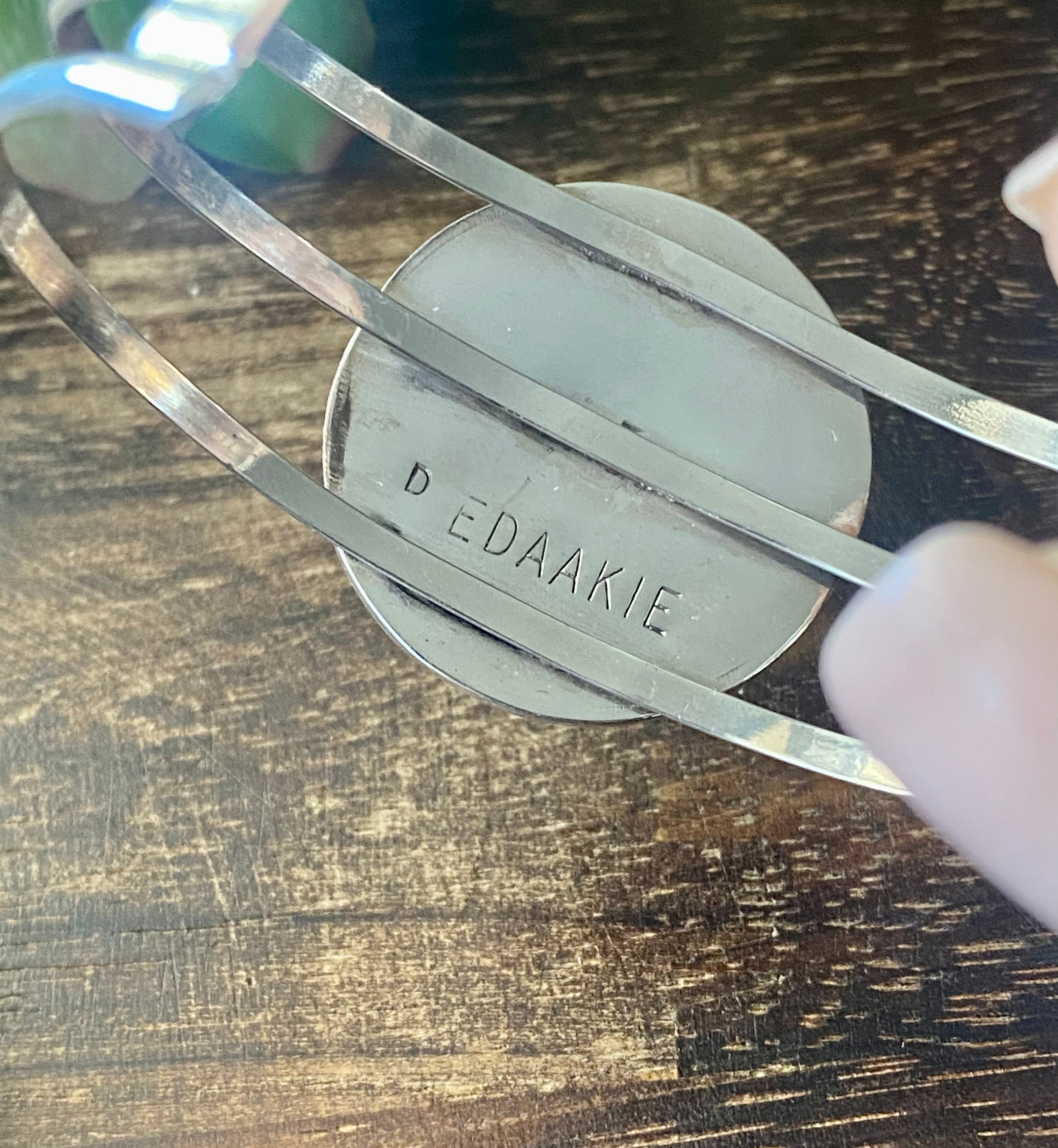 Zuni Made Multi Stone & Sterling Silver Micro-Inlay Cuff Bracelet. It measures 1 1/4 inches wide with an inside circumference of 5 3/8 inches and a gap of 1 1/4 inches. Signed by the artist.