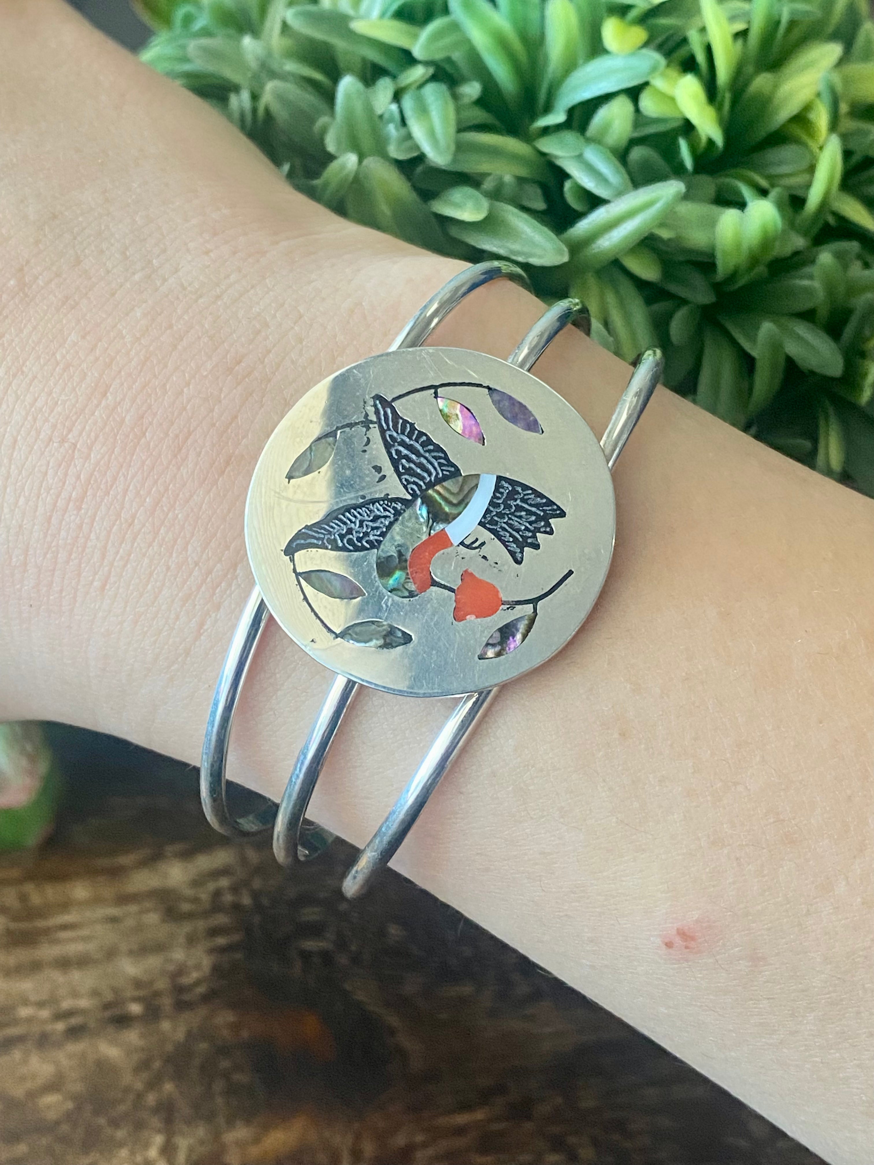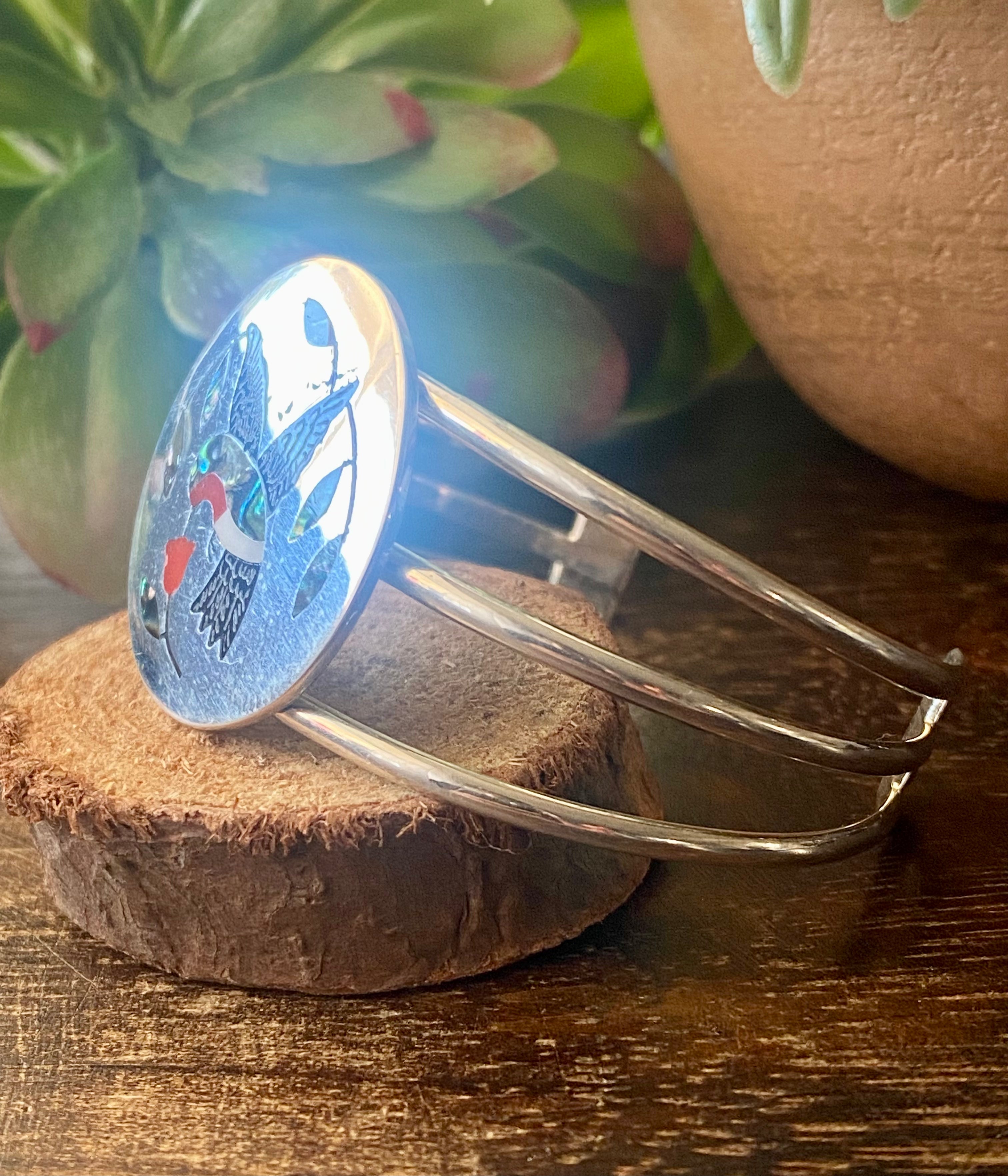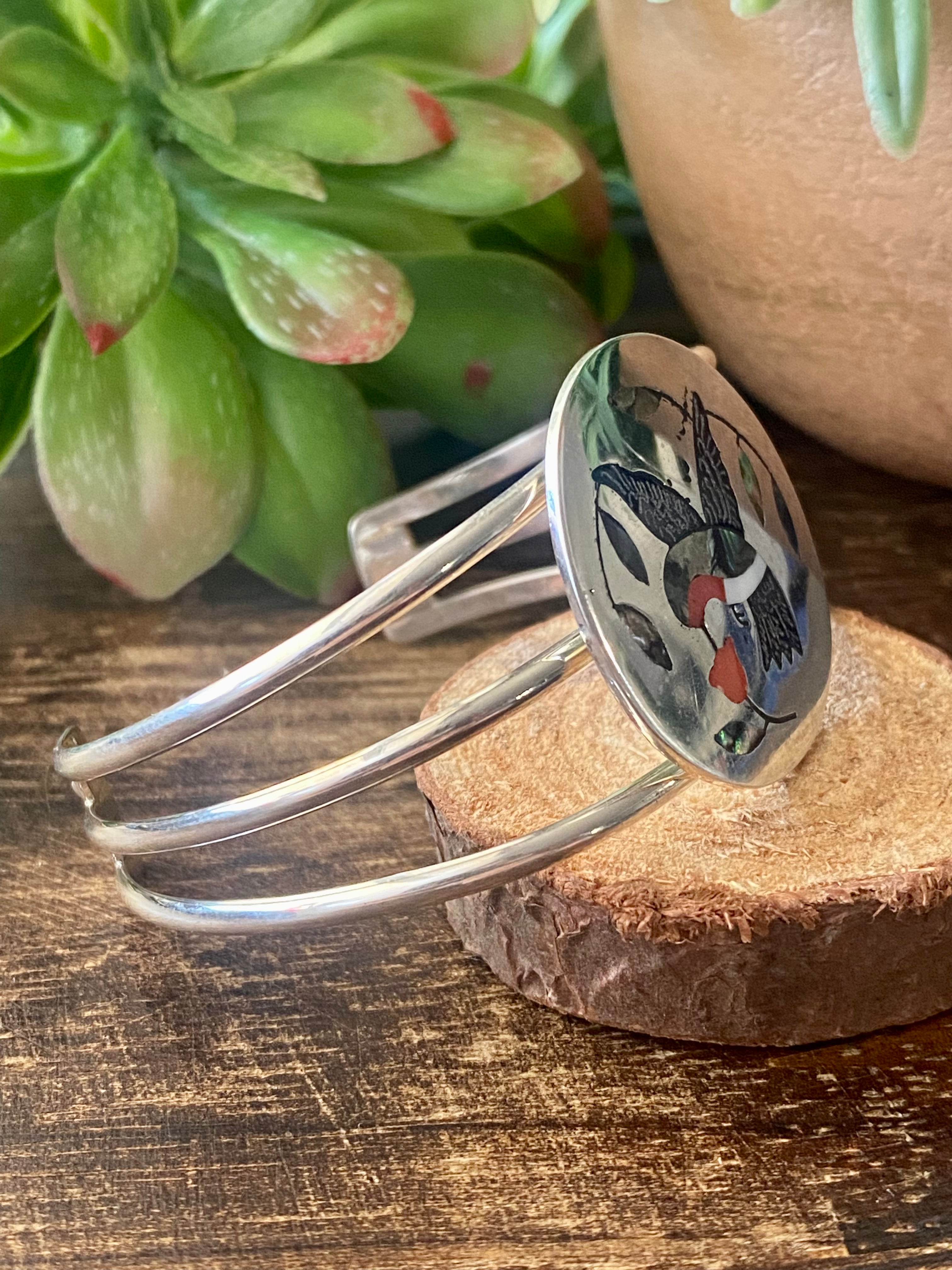 Zuni Made Multi Stone & Sterling Silver Micro-Inlay Cuff Bracelet